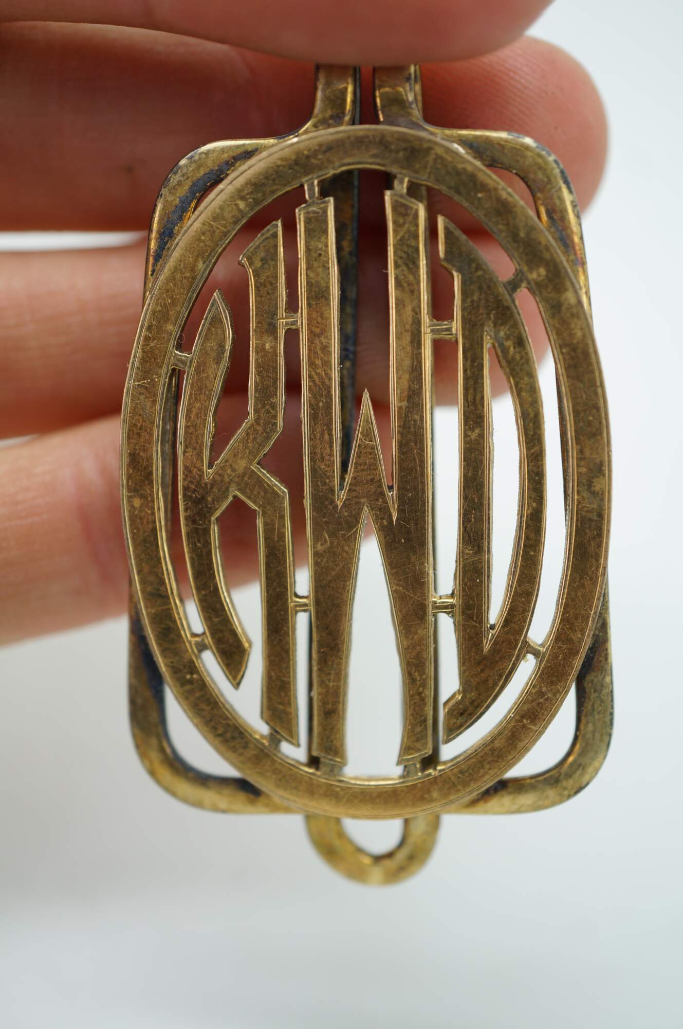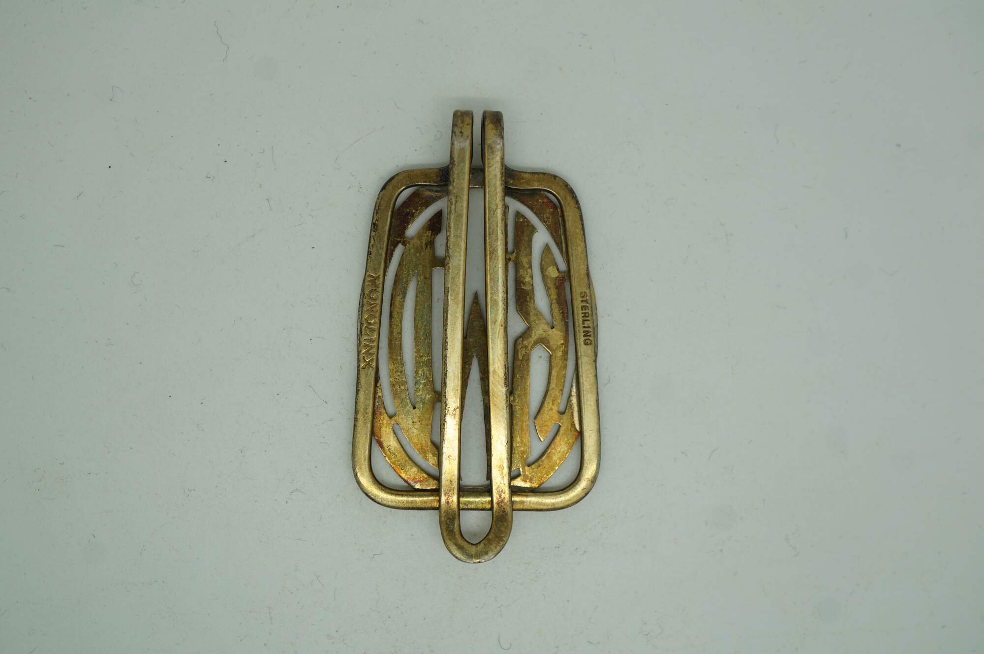 Antique Art Deco Monolinx Sterling Silver Monogrammed Gold Money Clip. Monogrammed KWD.