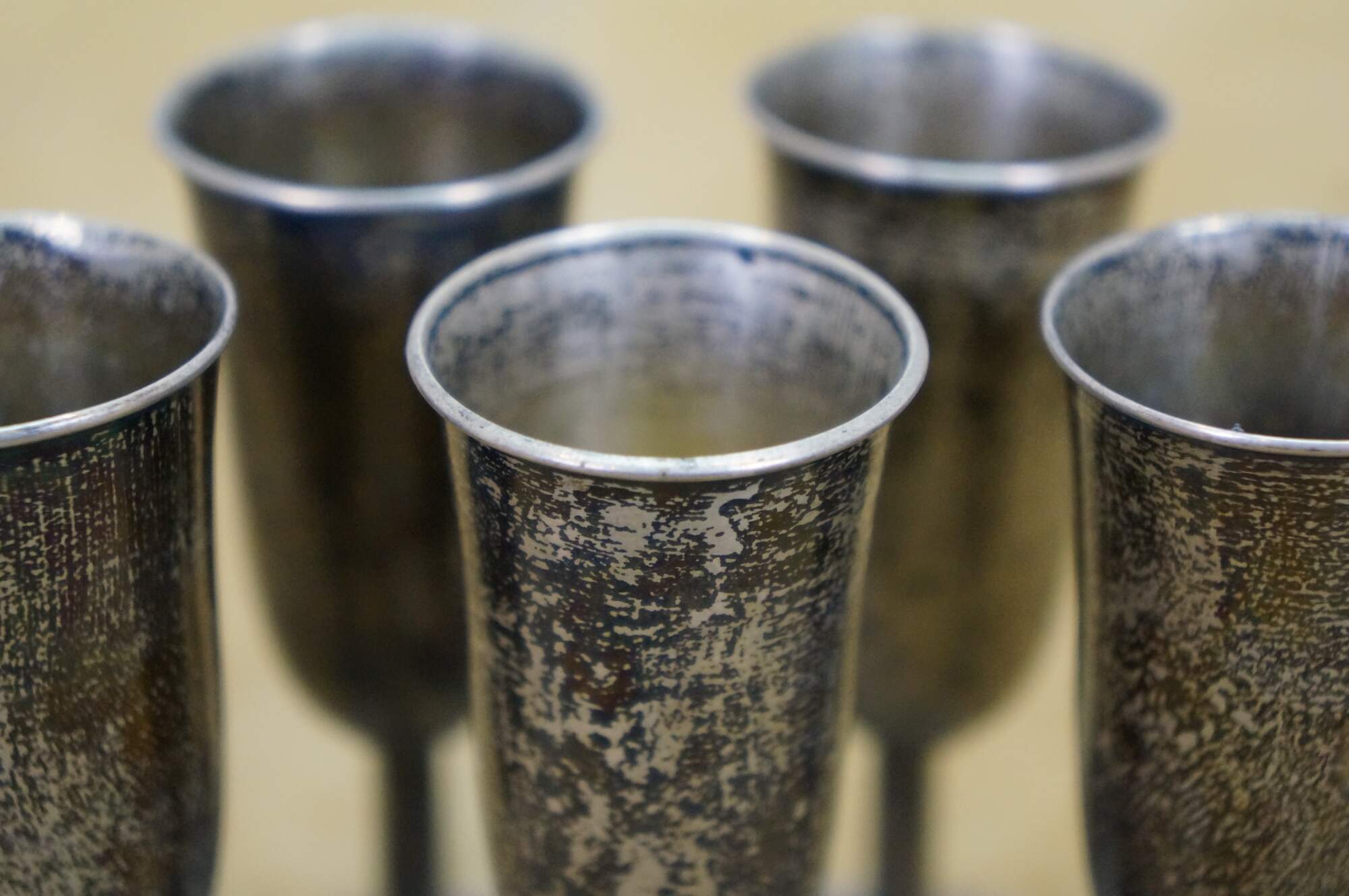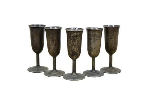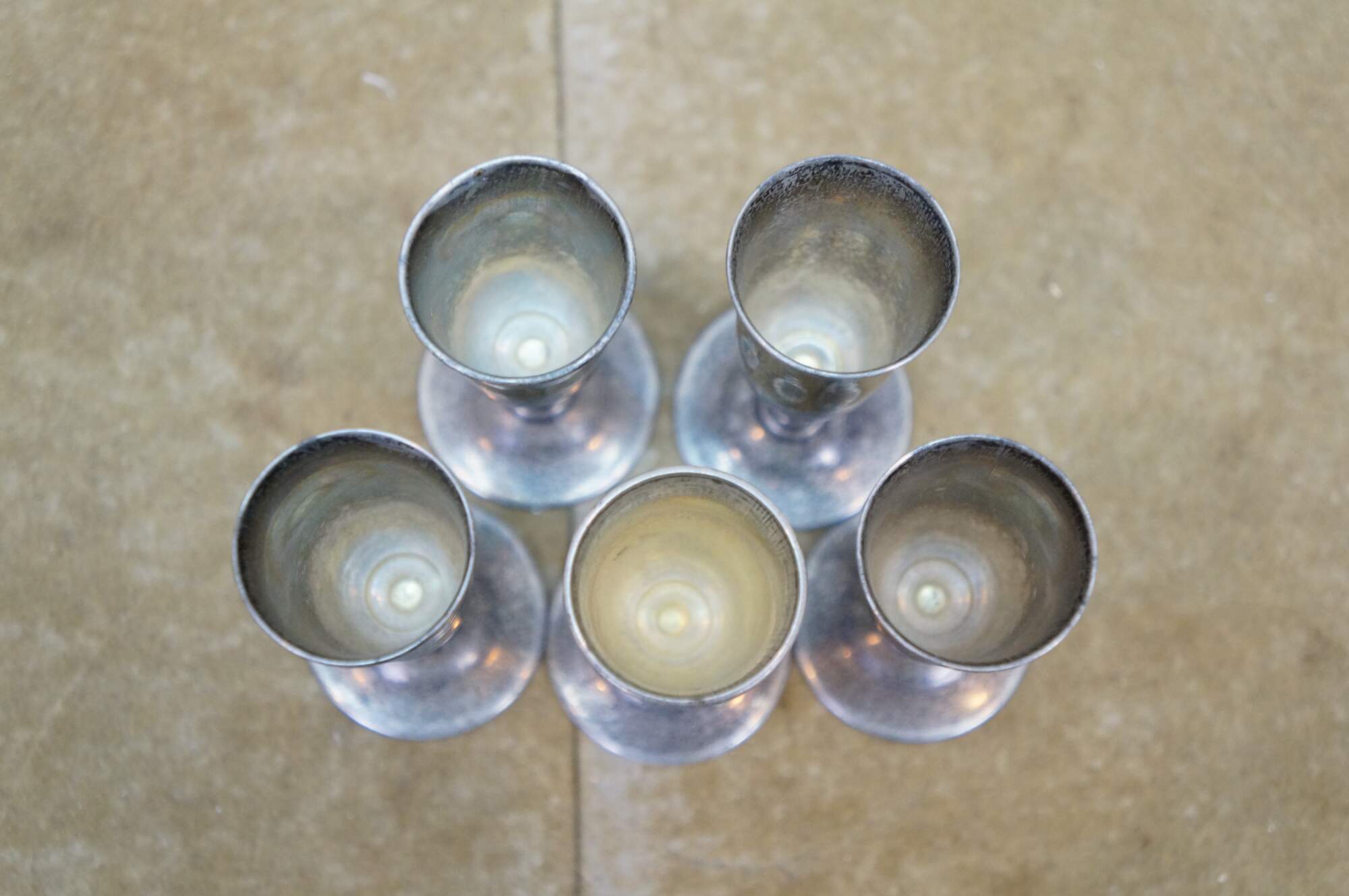 Five antique Webster & Co sterling silver 925 cordial shot glasses.