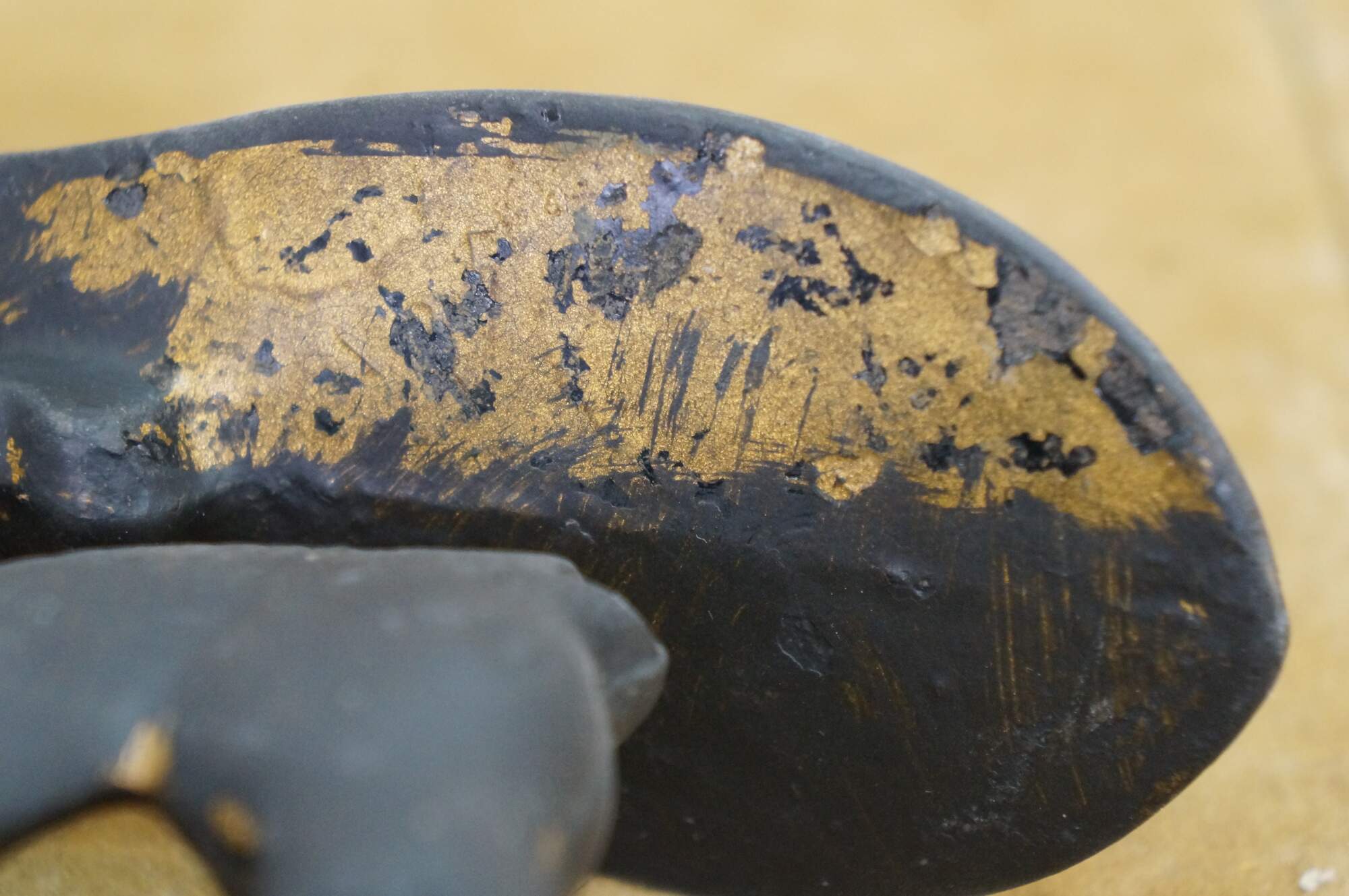Gentle wear; painted gold at some point