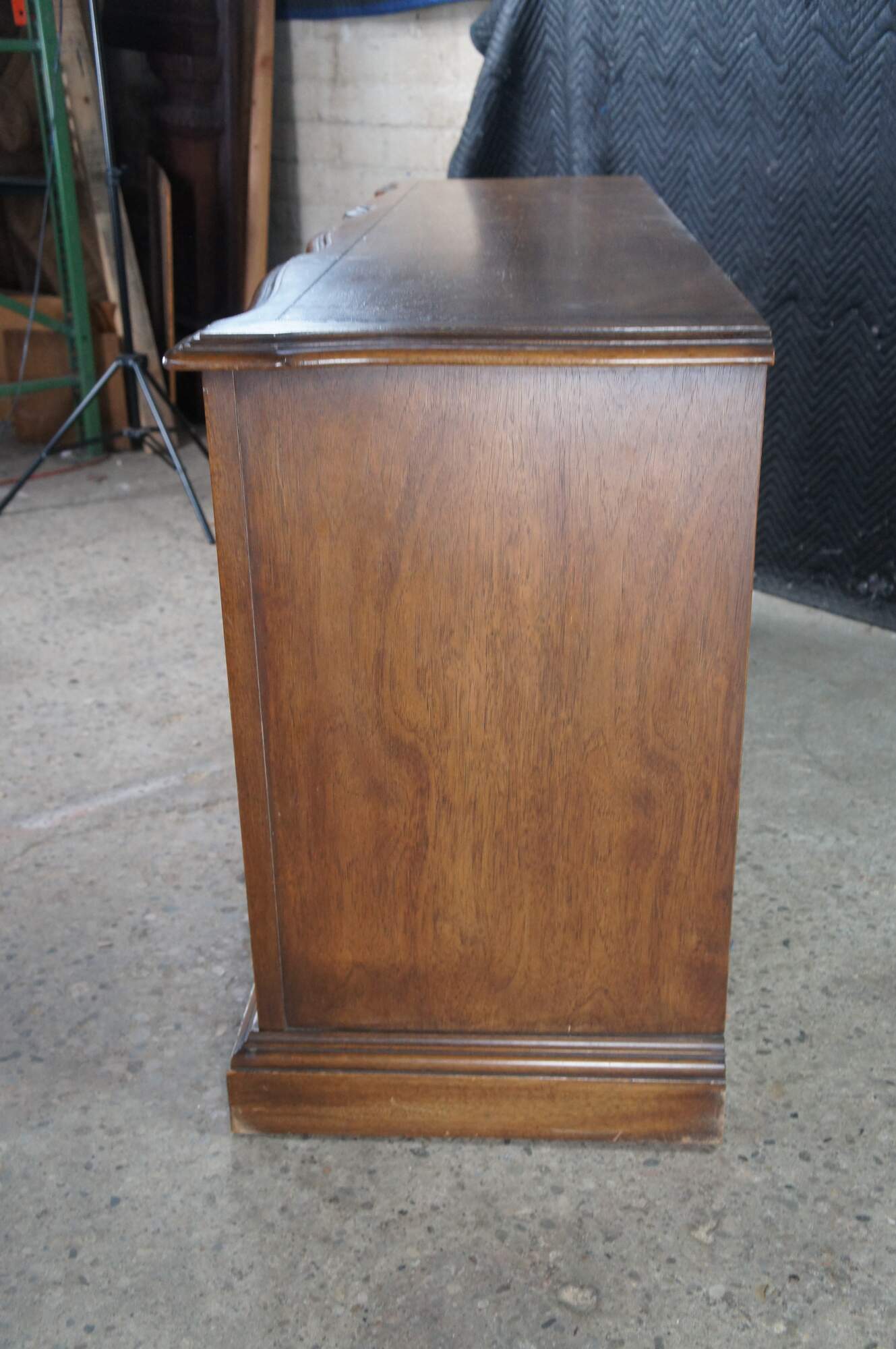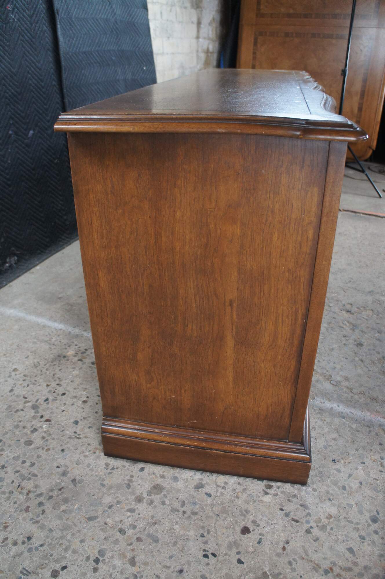 Late 20th Century French Country Triple Dresser by Century Furniture. Features a rectangular made from oak with serpentine top over nine drawers with brass hardware. Drawer fronts have a molded center and edge. The dresser is supported by a plinth base with molded feet.