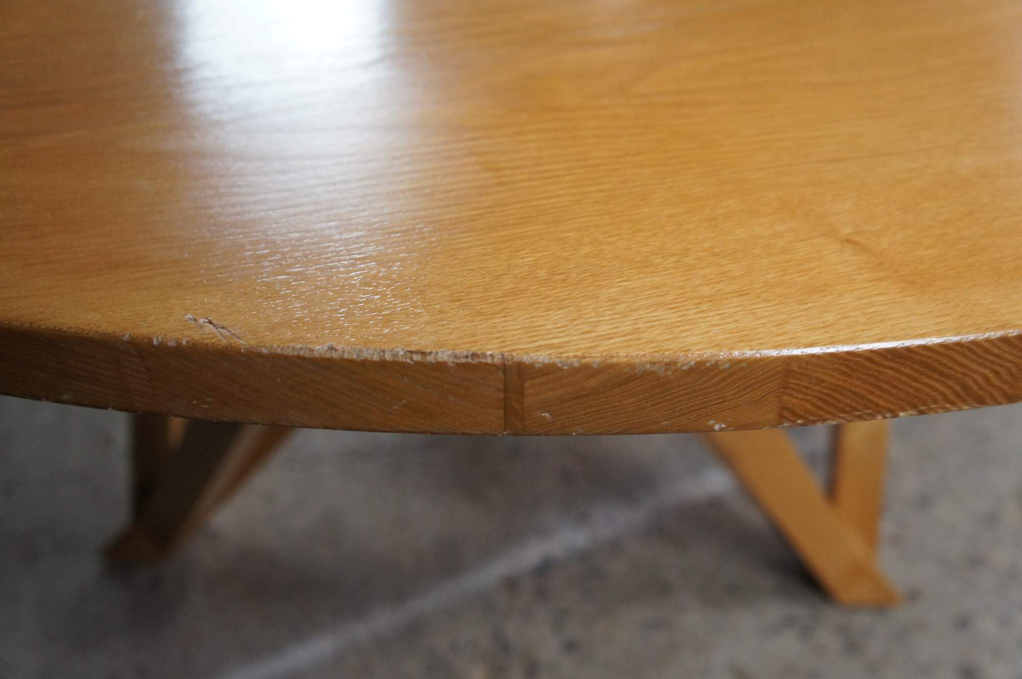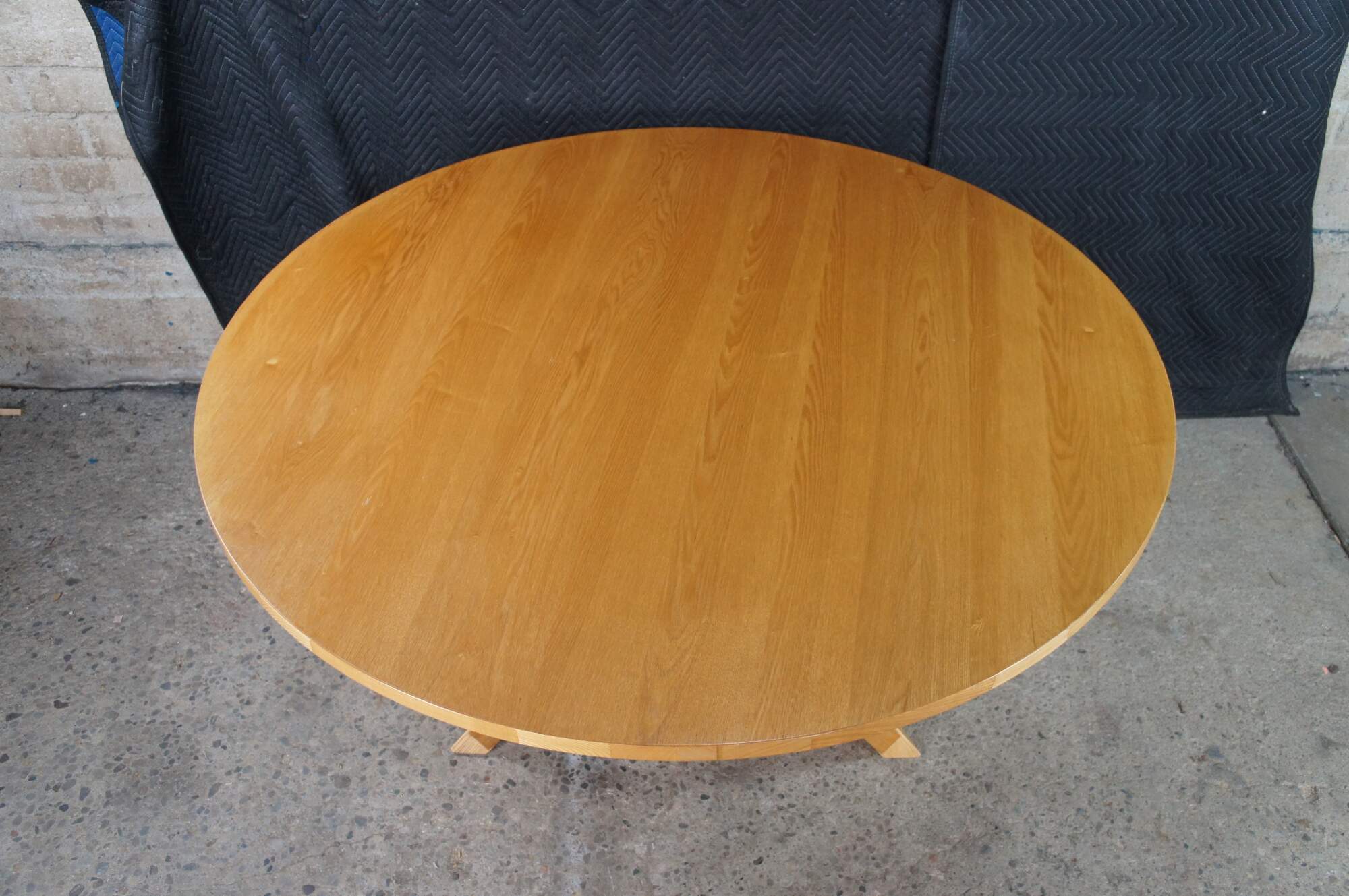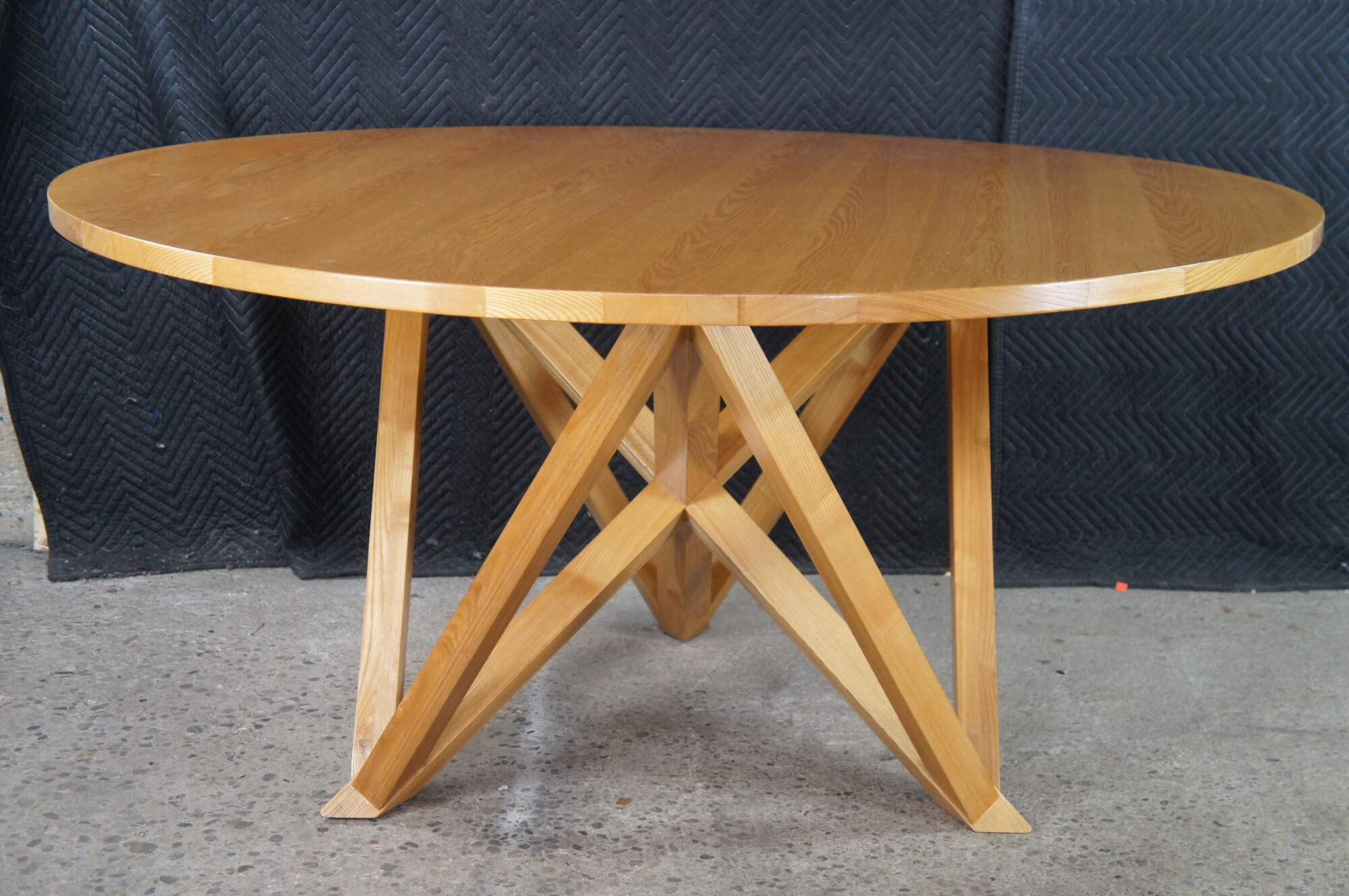 Features a round ash top over a geometric modernist base. Great for use in a game room or dining / breakfast nook. Includes Glass top.