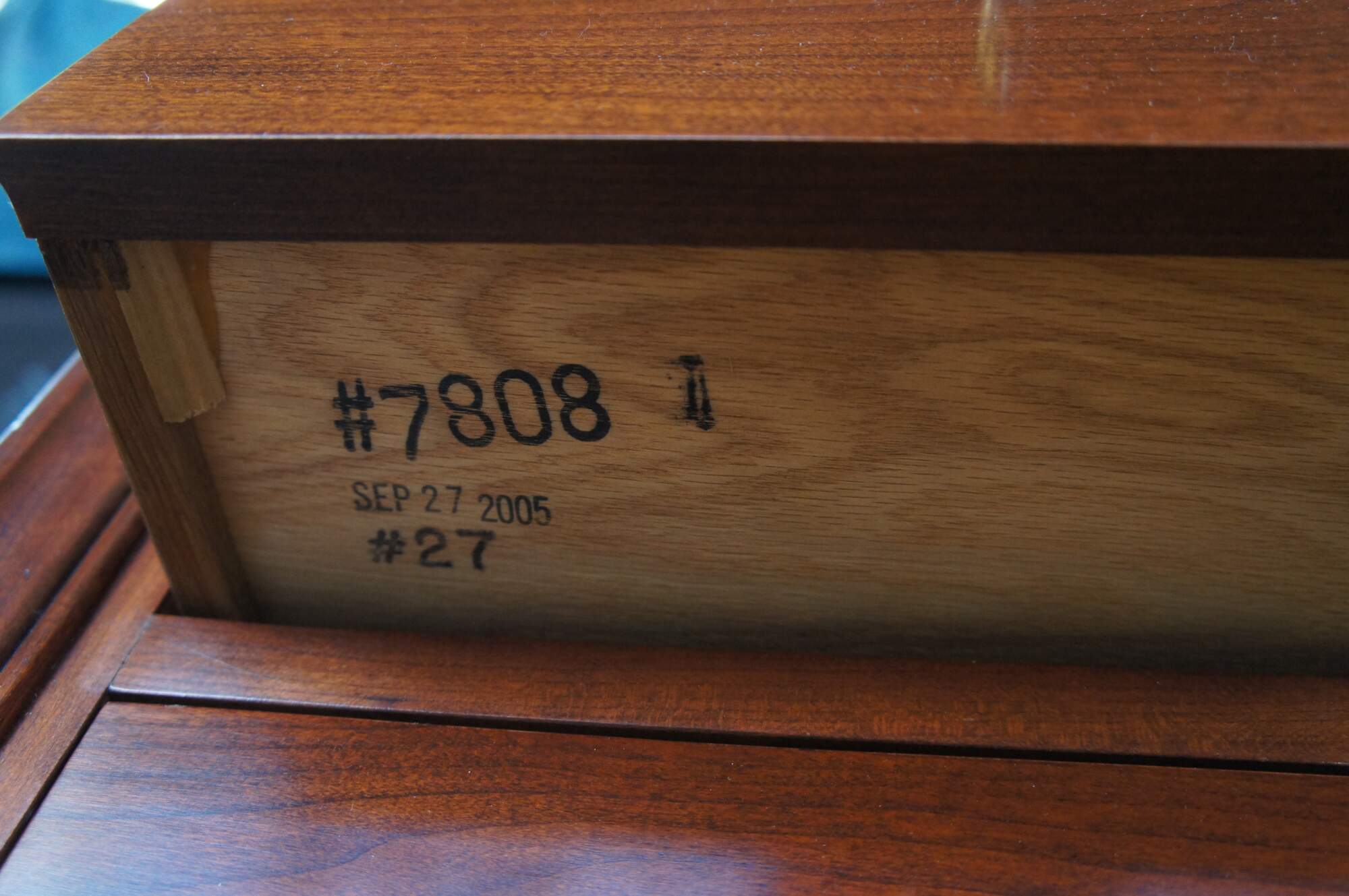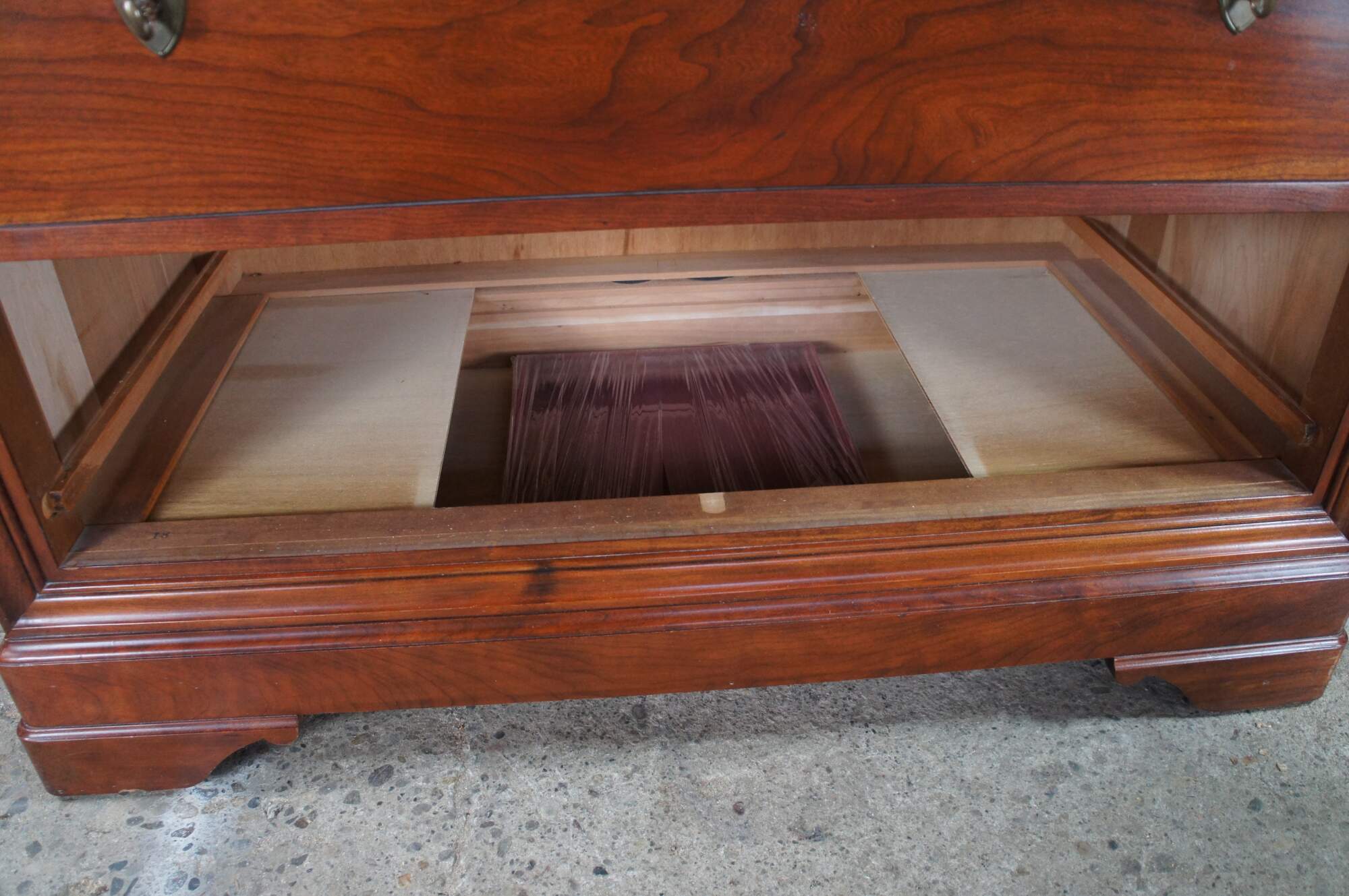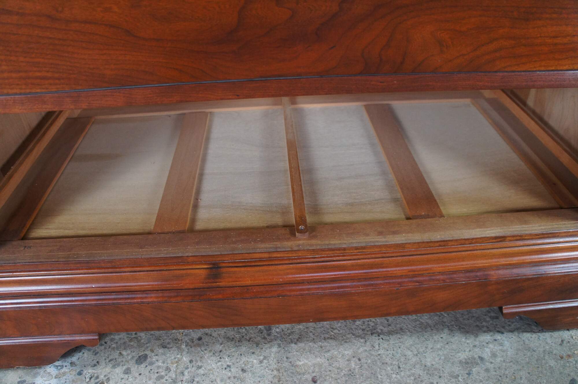 Stickley French Louis Philippe Style Armoire, #7808, circa 2005. Made from solid cherry with two doors opening to a divided interior over three lower dovetailed drawers with brass hardware. Drawer pulls have shield plates. The dresser is supported by a plinth base with bracket feet.
