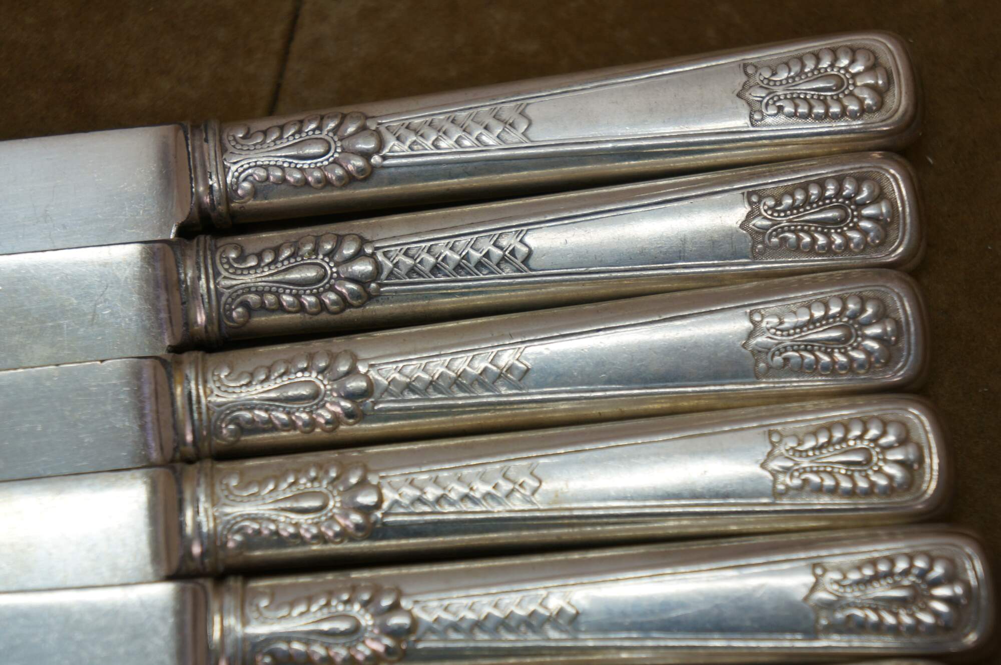 Eight antique Towle Silver plated dinner knives in the Norwood pattern. Discontinued circa 1884. TWSNOR.