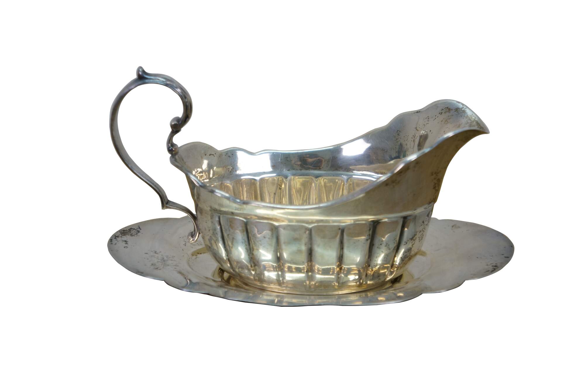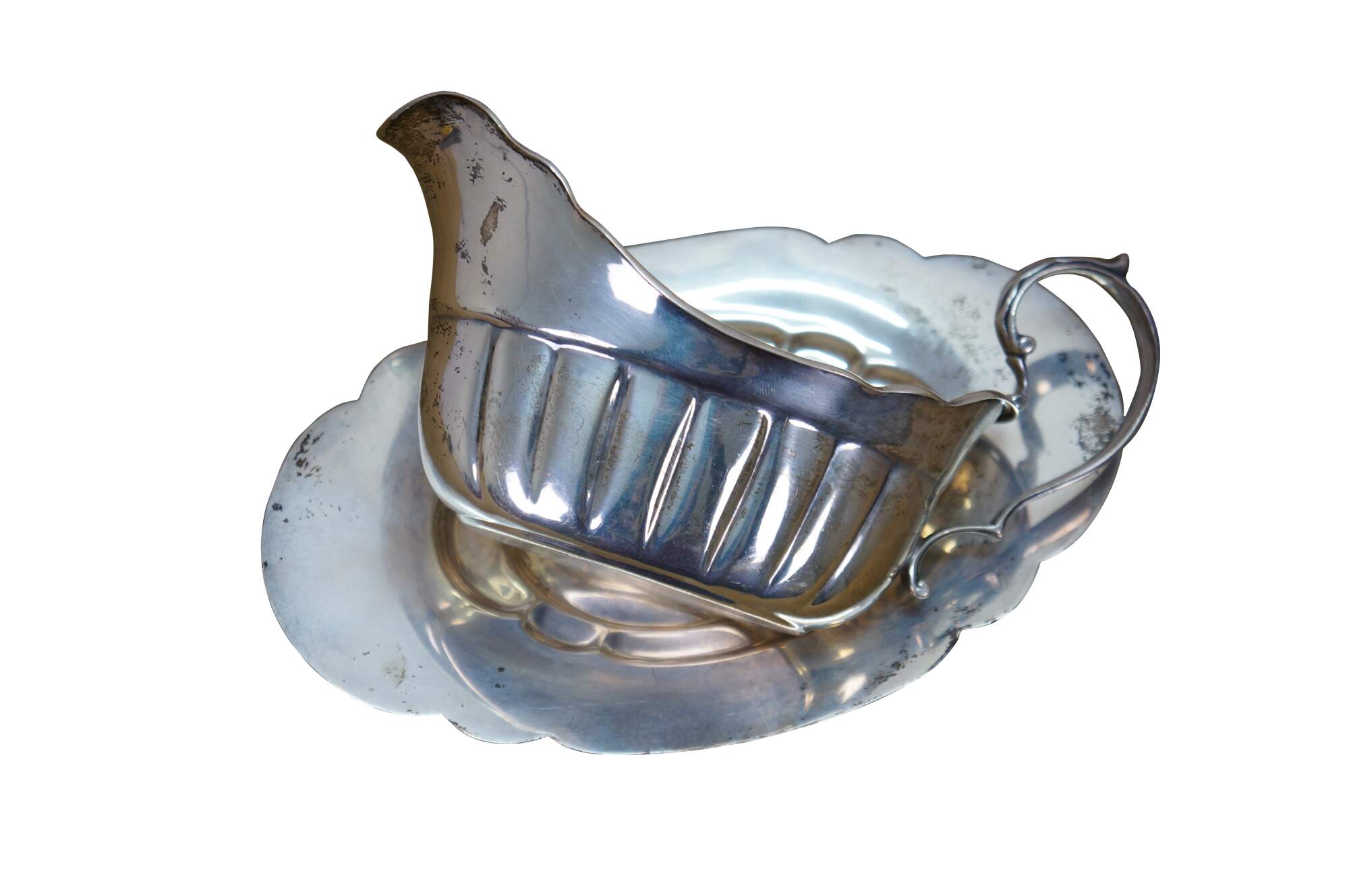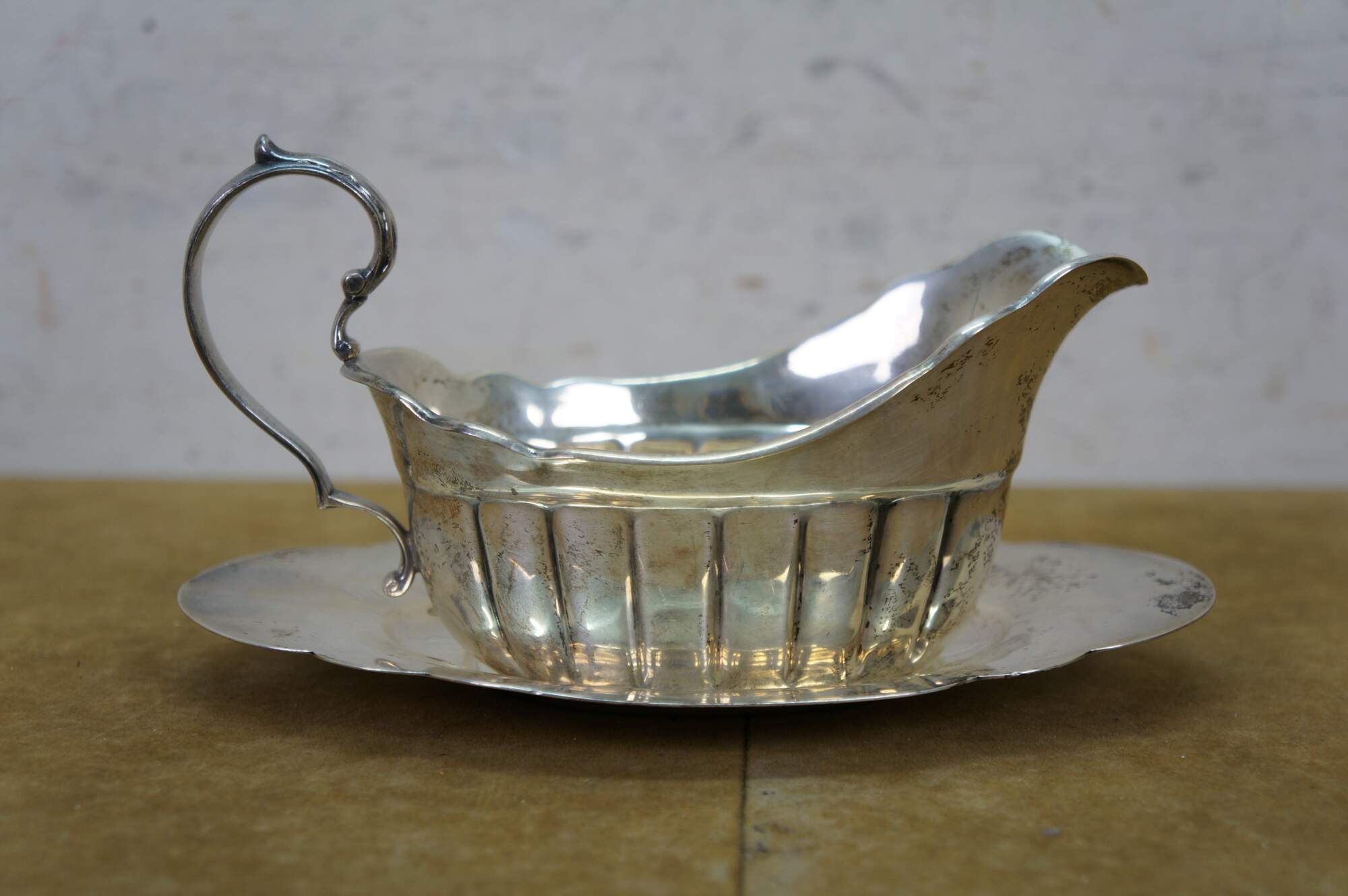 Antique Fisher Silversmiths Sterling Silver Gravy Boat & Underplate 342g 7.5"