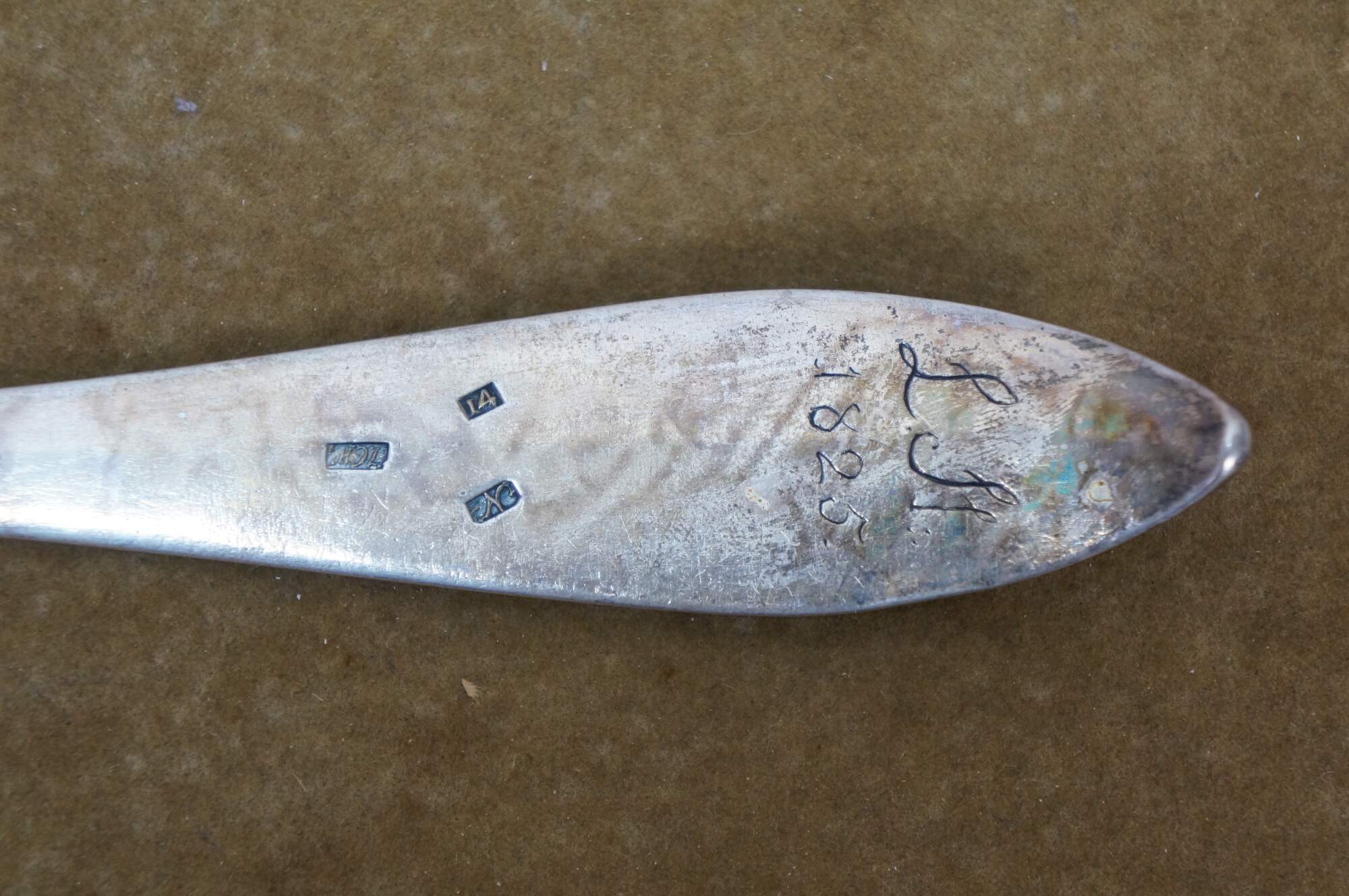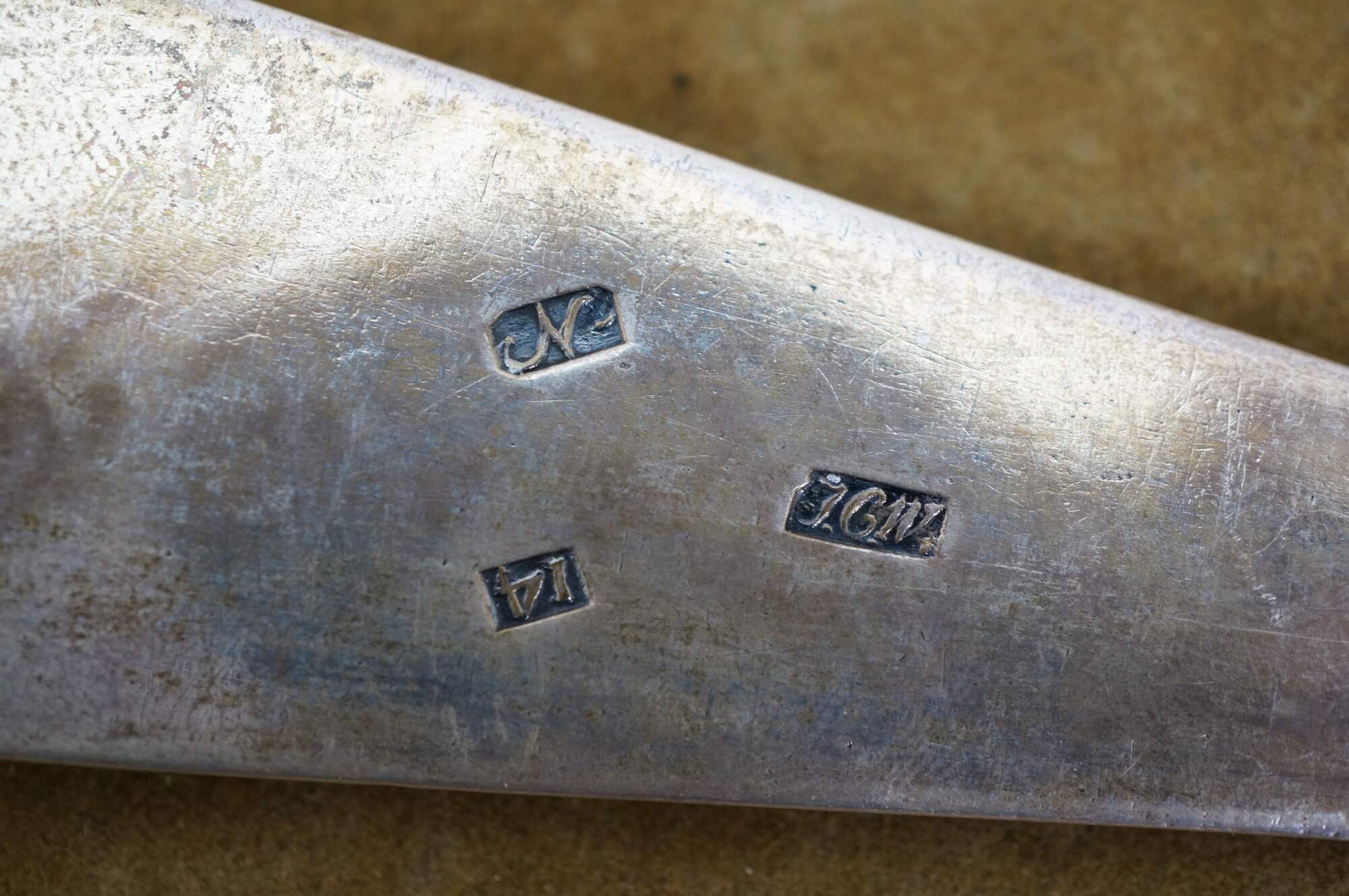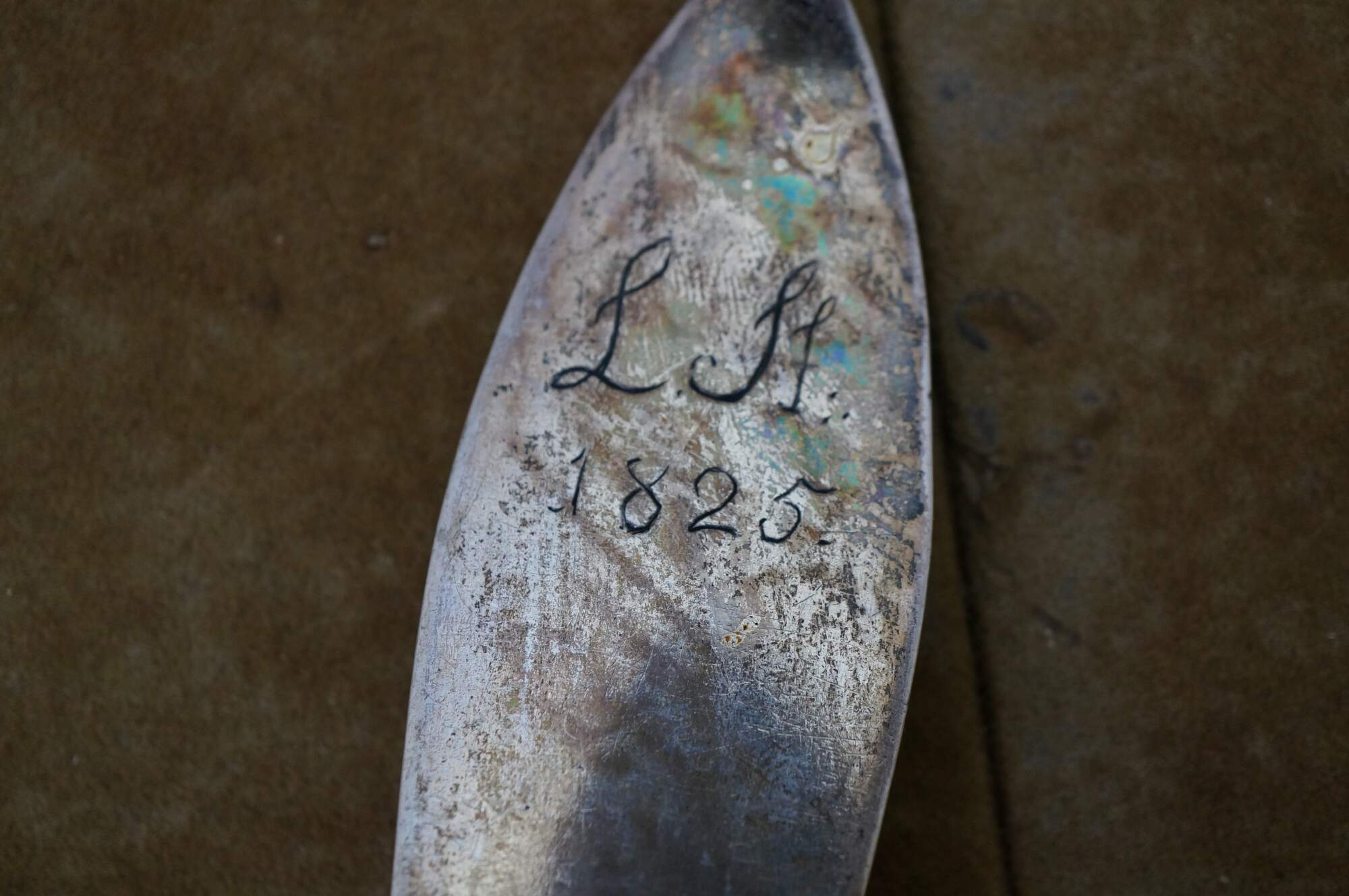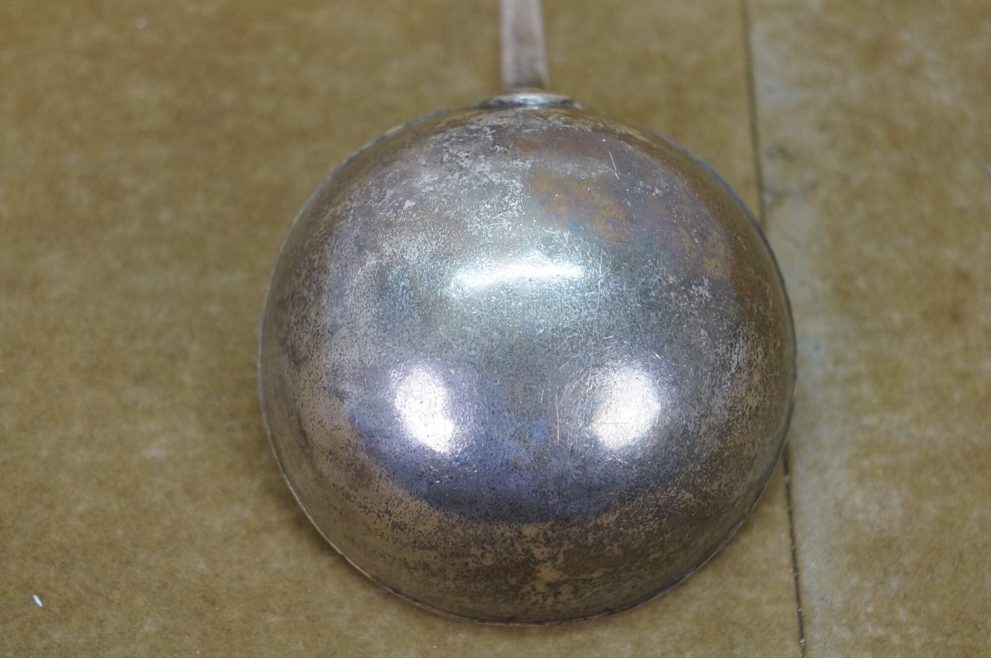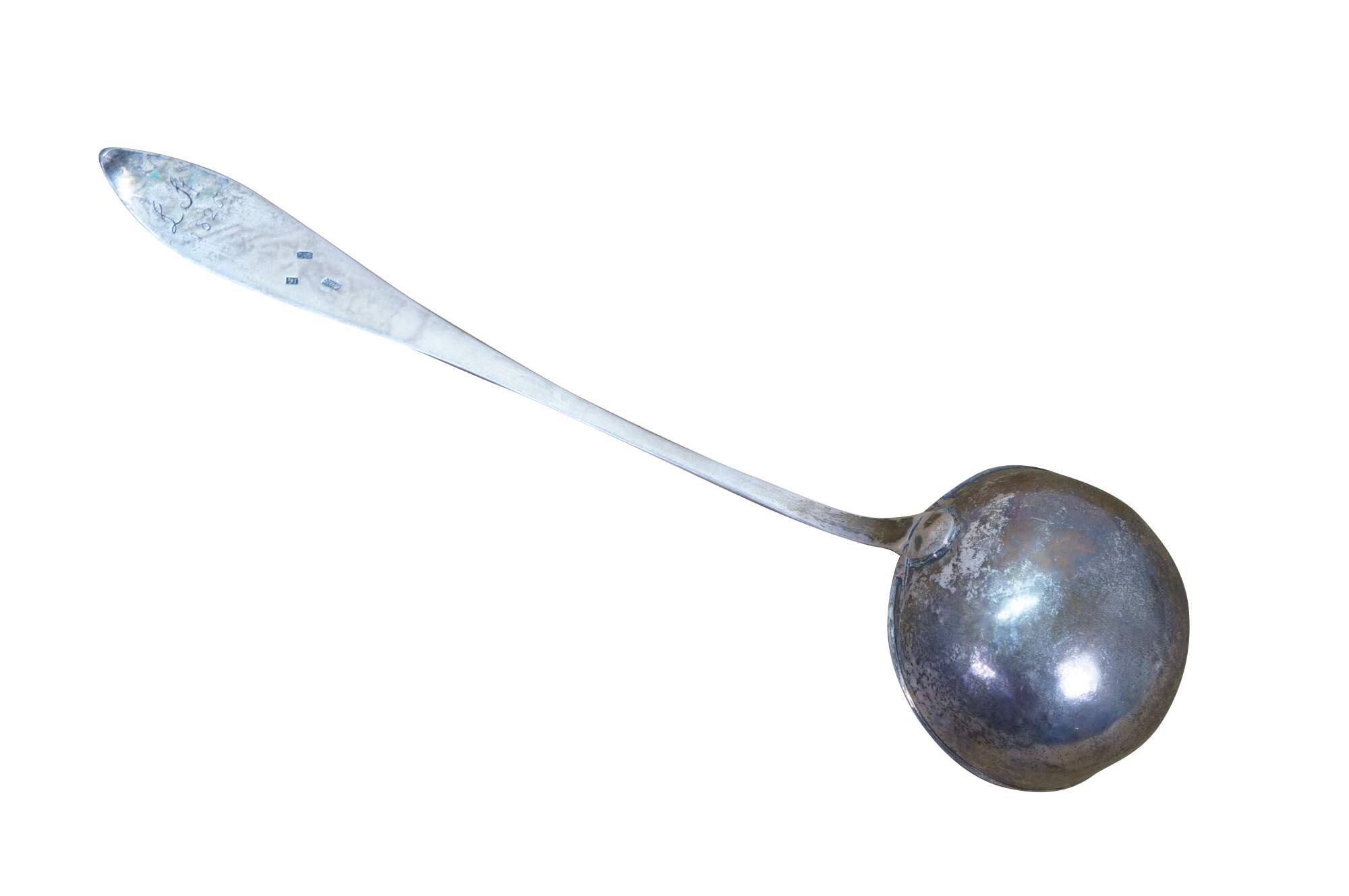 Antique 1825 English Georgian / Regency era .800 silver soup / gravy / sauce serving ladle. Marked J.G.W. with an N and 14. 205 grams.