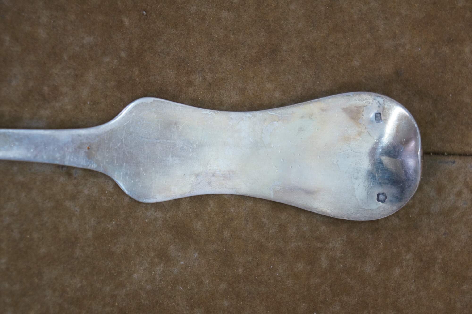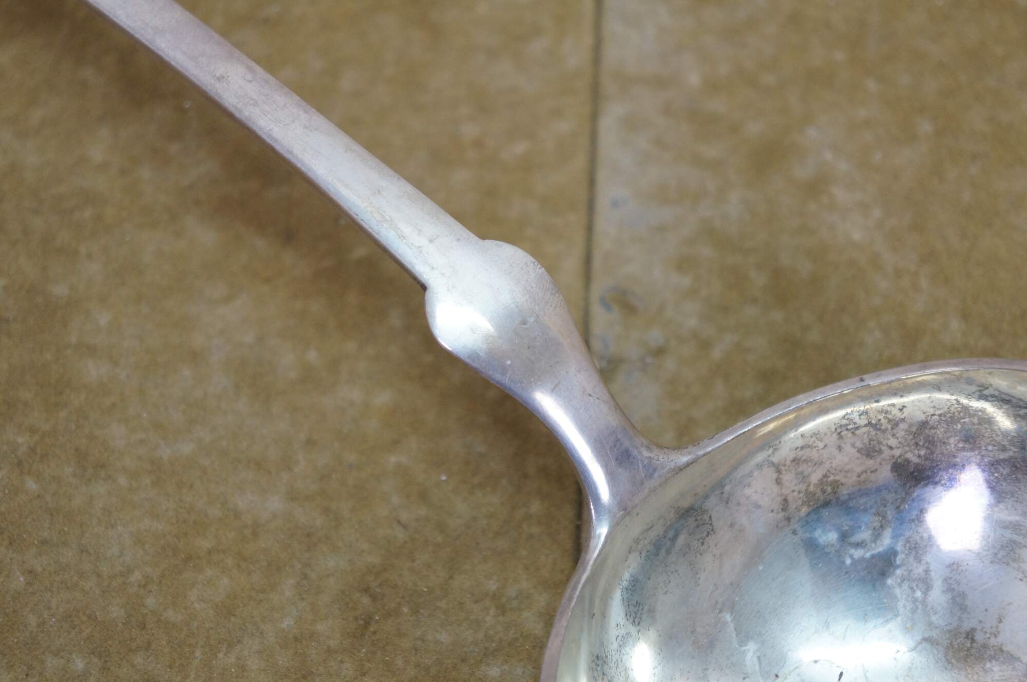 Rare antique Josef Zemen Austria / Hungary .800 silver soup / gravy / sauce serving ladle with fiddle shaped handle. Circa 1903 to 1922.