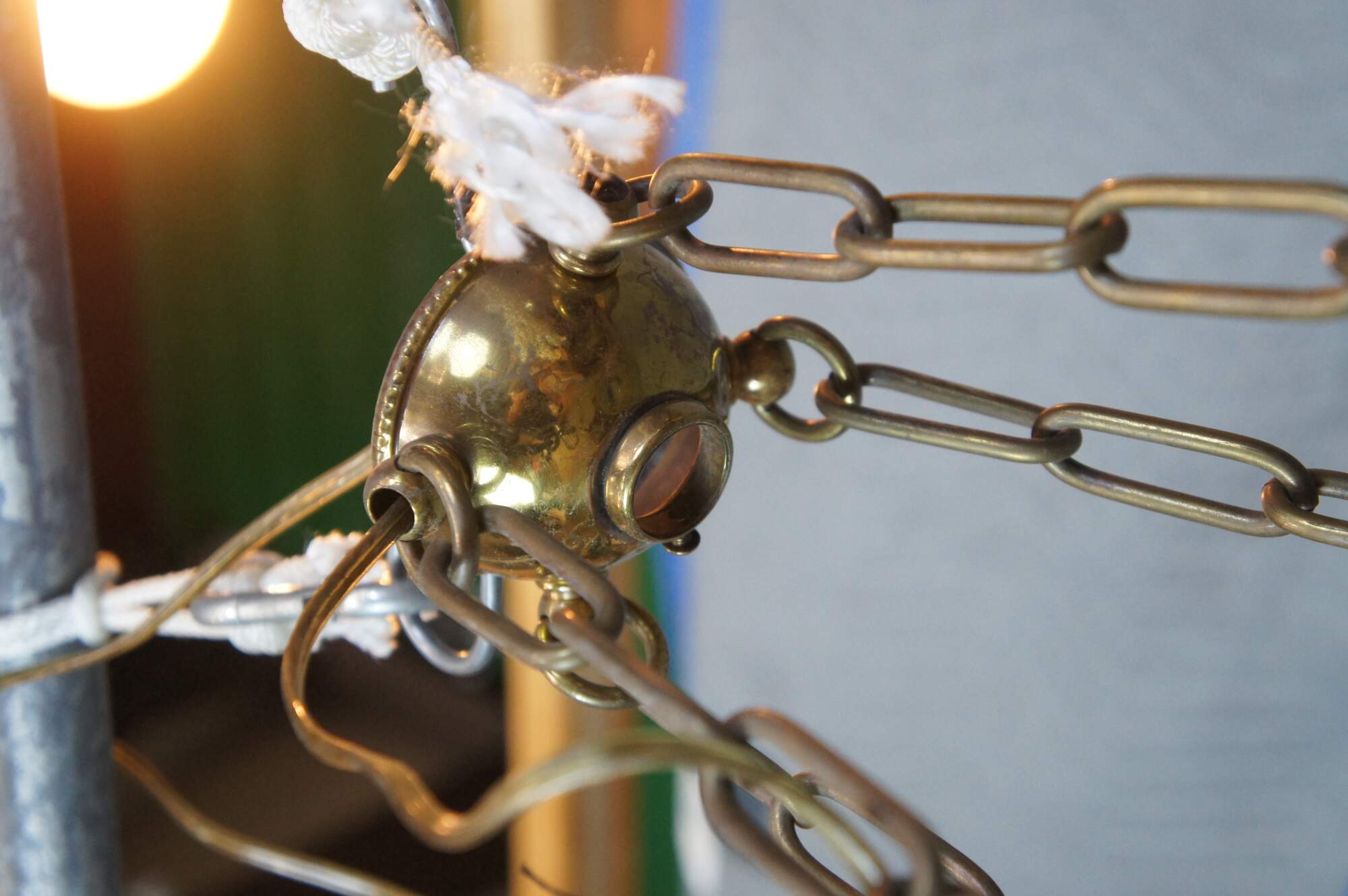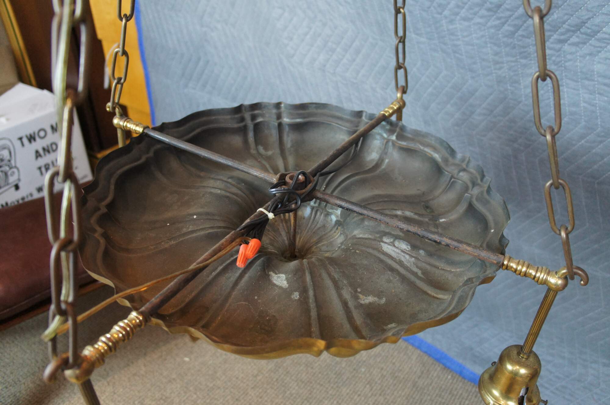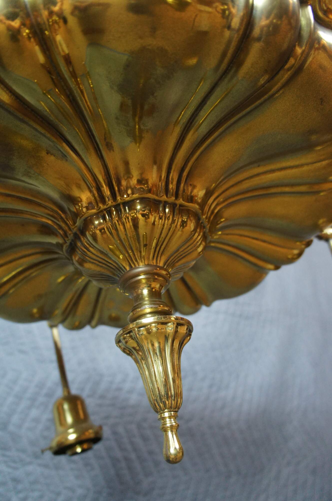 Antique Victorian drop light pendant chandelier. Made of brass featuring Hollywood Regency styling with four lights.