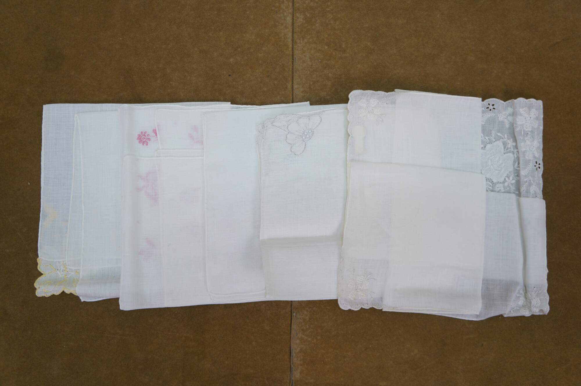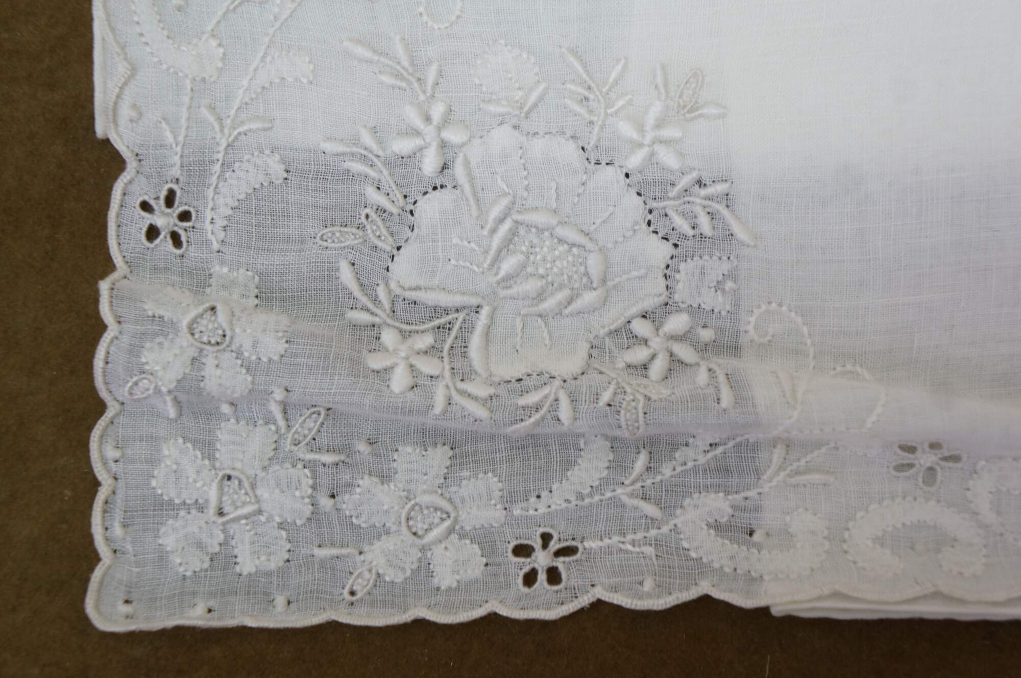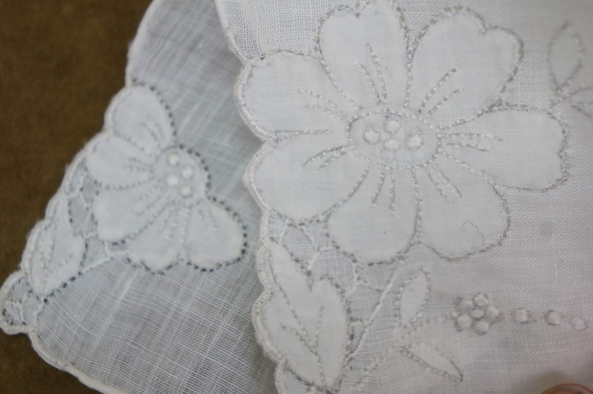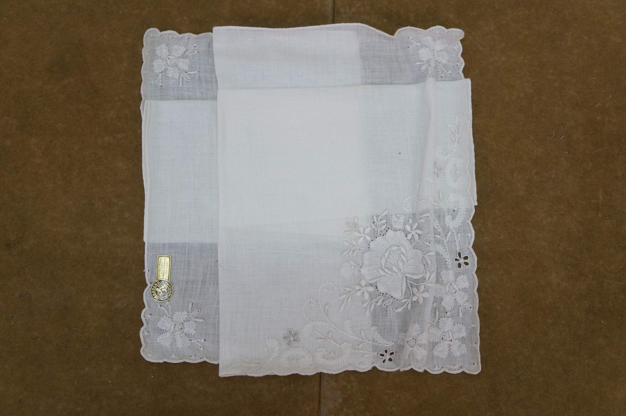 Set of vintage Portuguese Madeira Imperial embroidered linen handkerchiefs textile cloths. Gerbrend. Tork Street. Decorations all cotton.