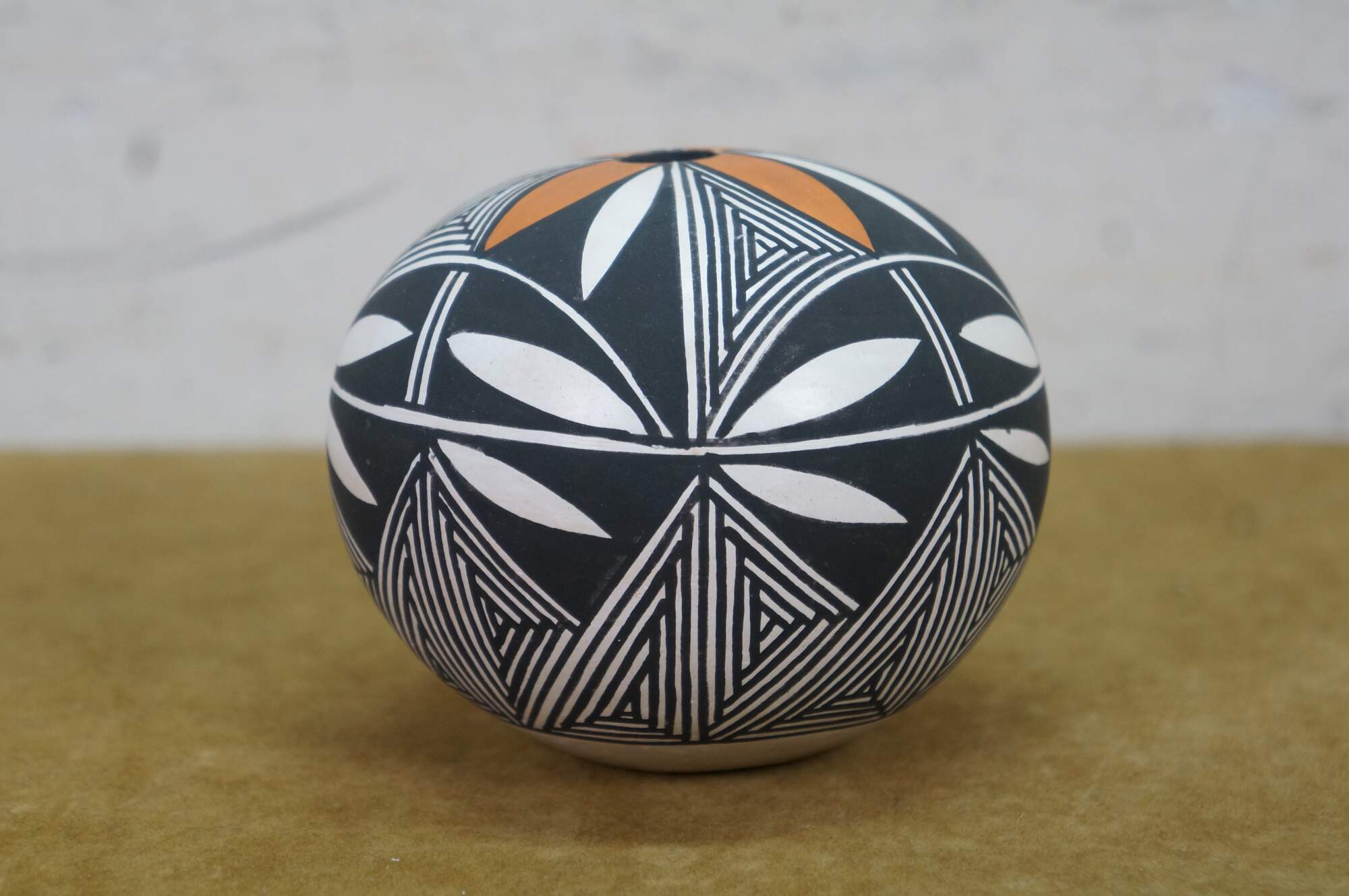 Two vintage D. Patricio signed Acoma New Mexico / Southwestern / Native American / Pueblo polychrome seed pots / pottery bud vases.