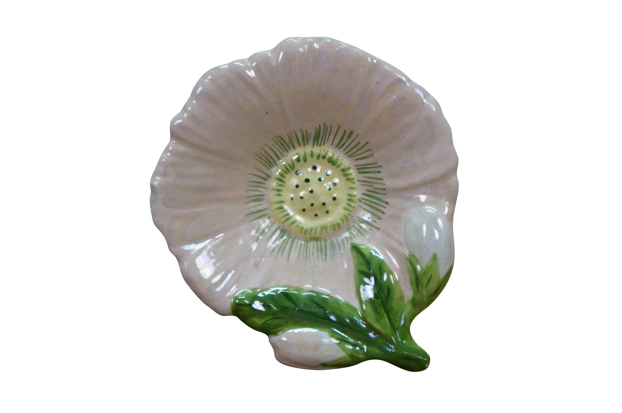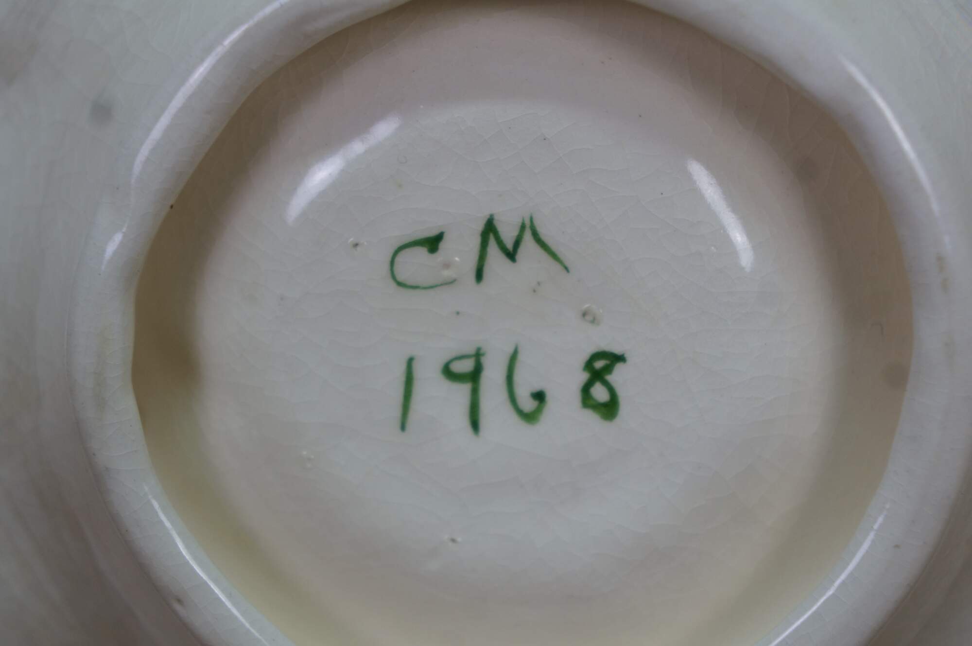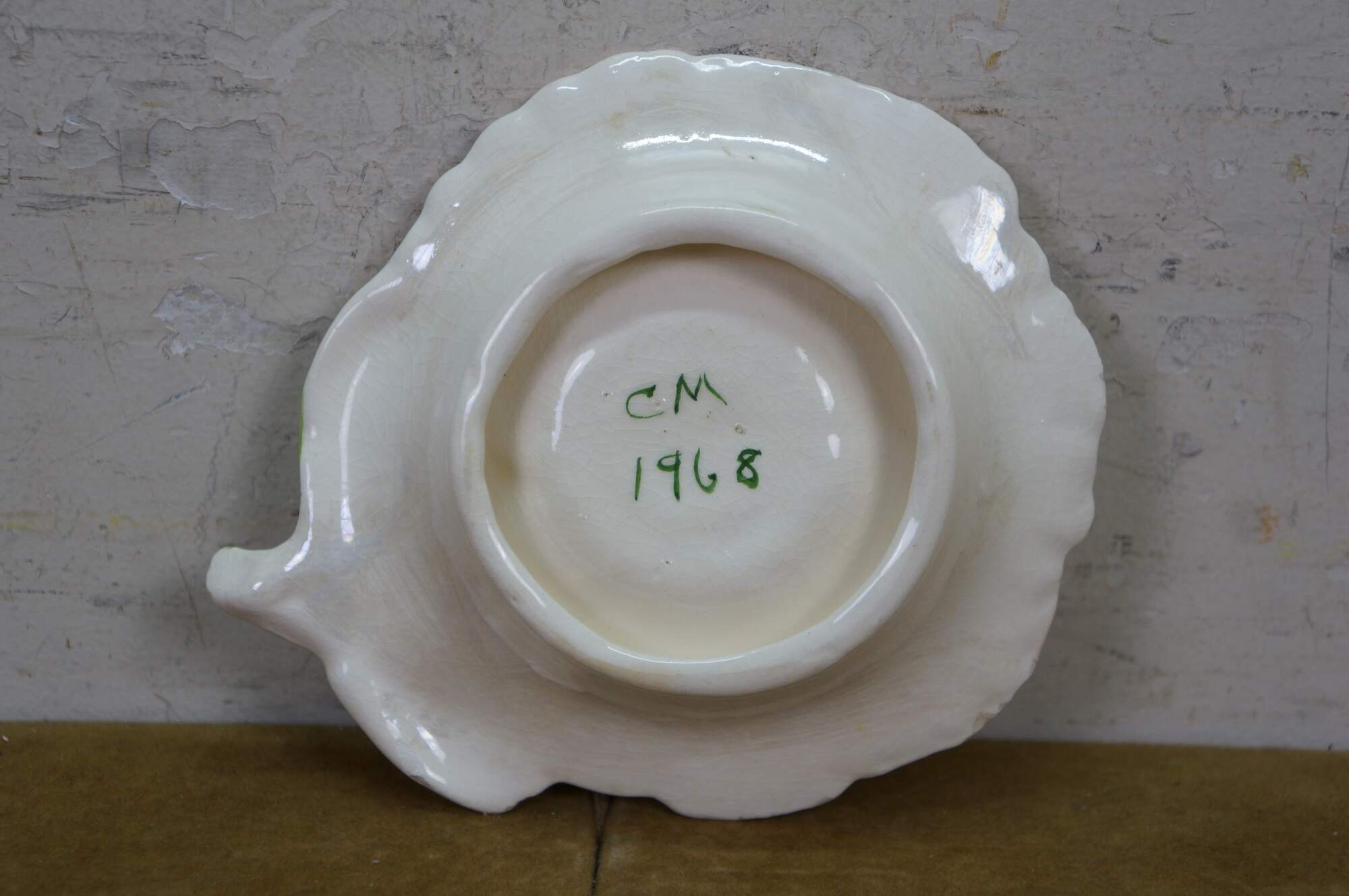 Mid Century Floral Flower Compote Change Dish. Signed on base CM 1968.