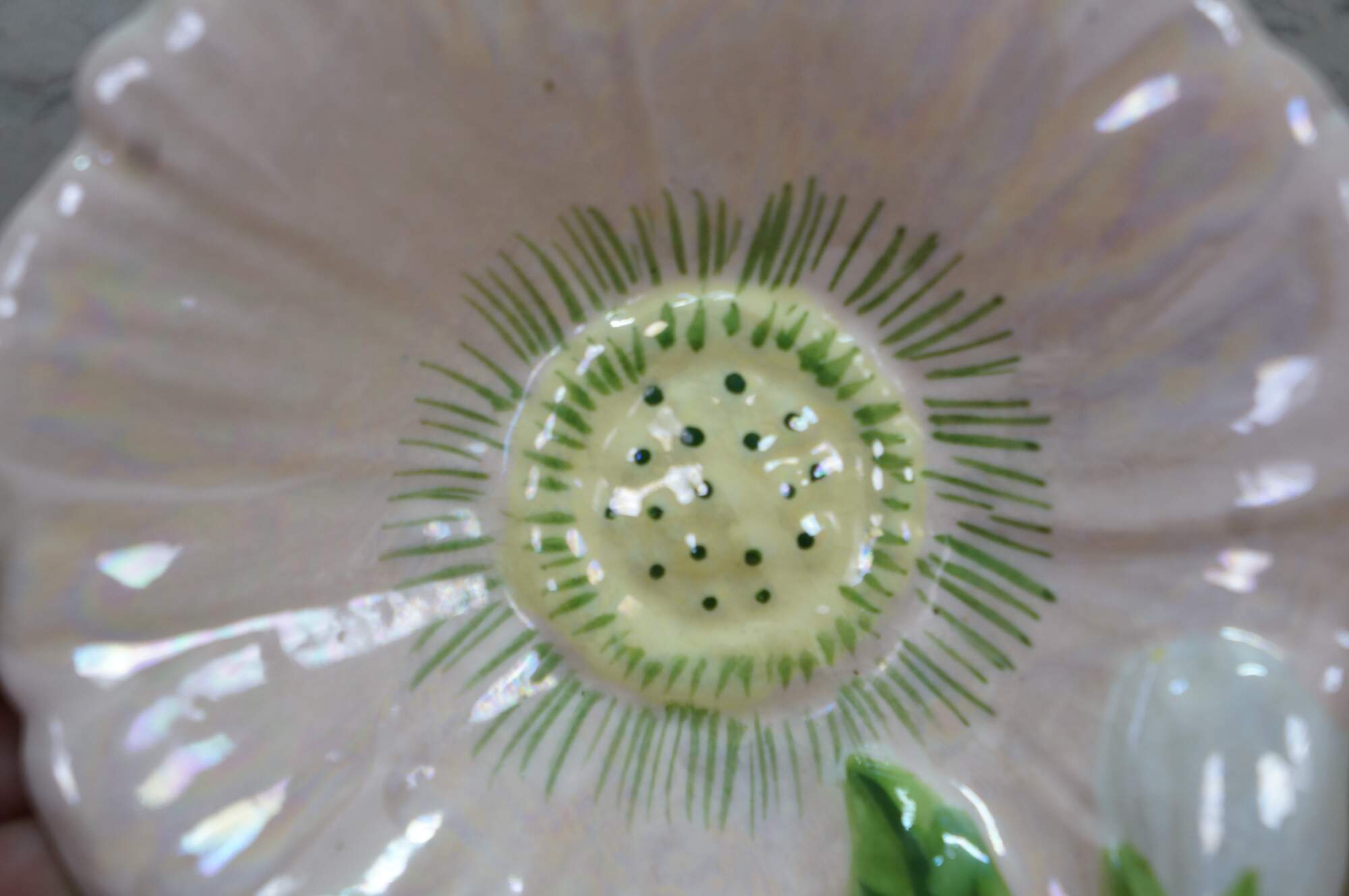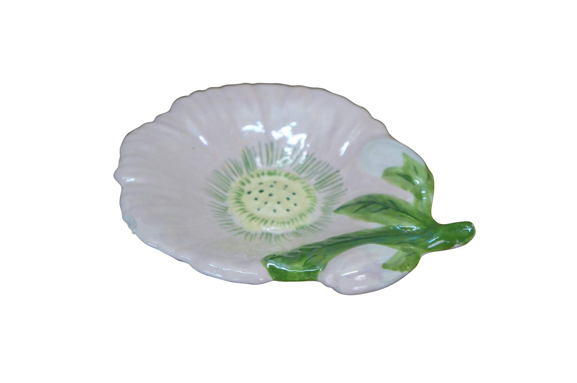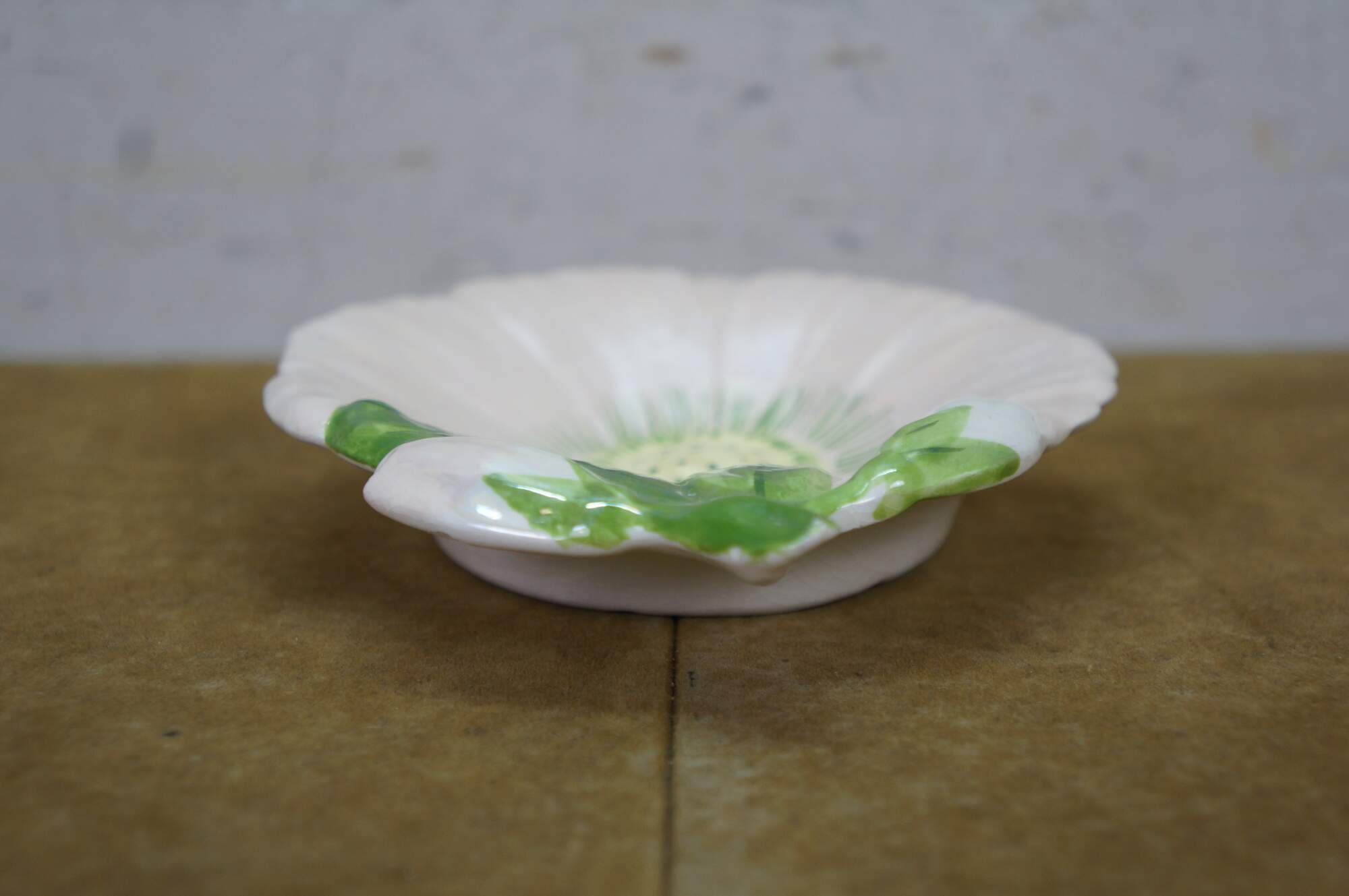 Mid Century Floral Flower Compote Change Dish. Signed on base CM 1968.