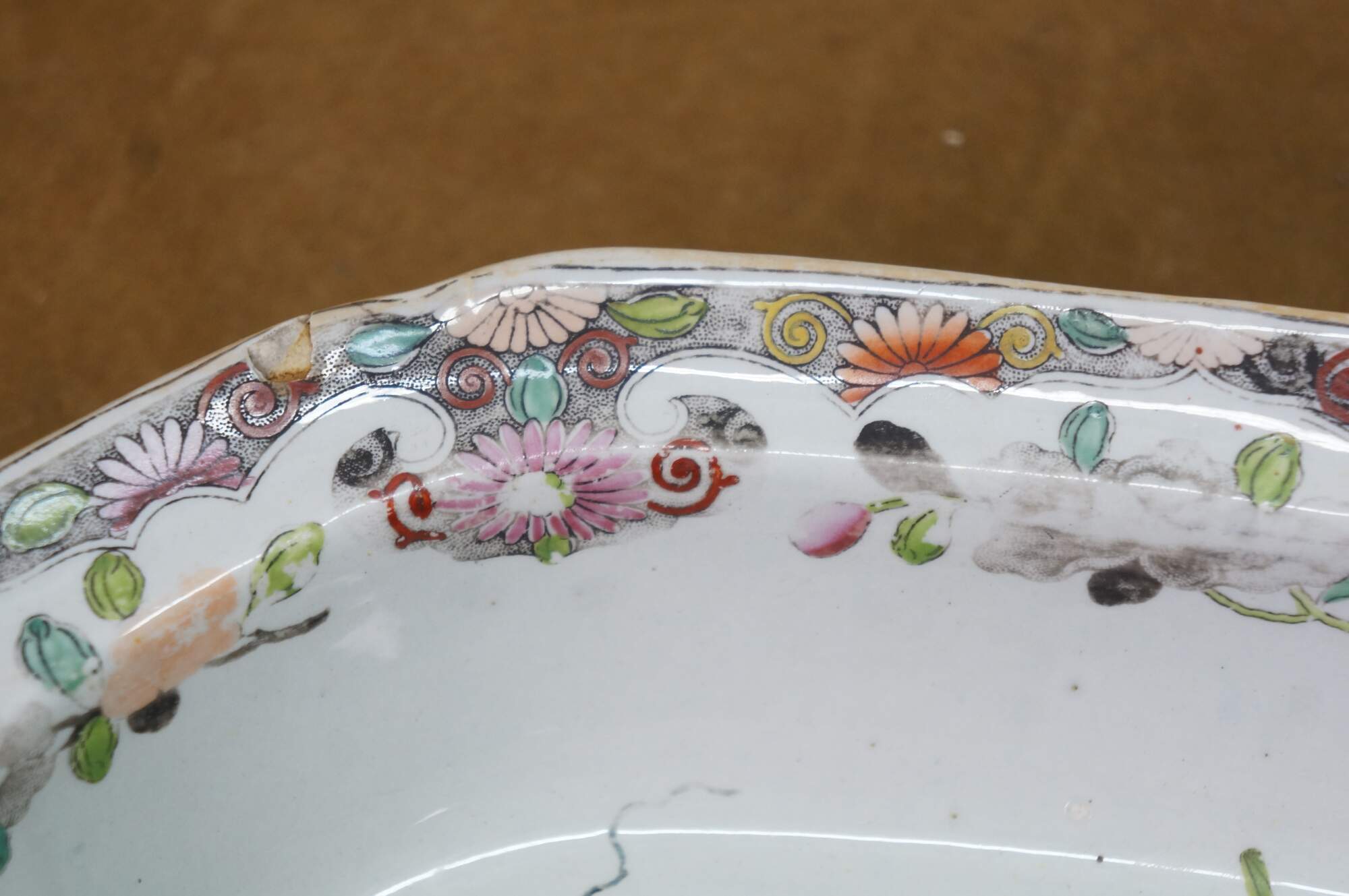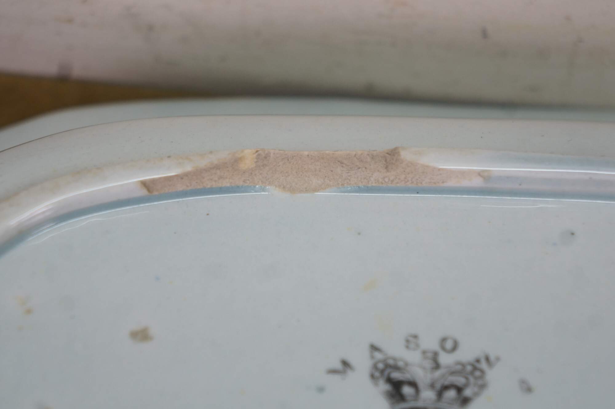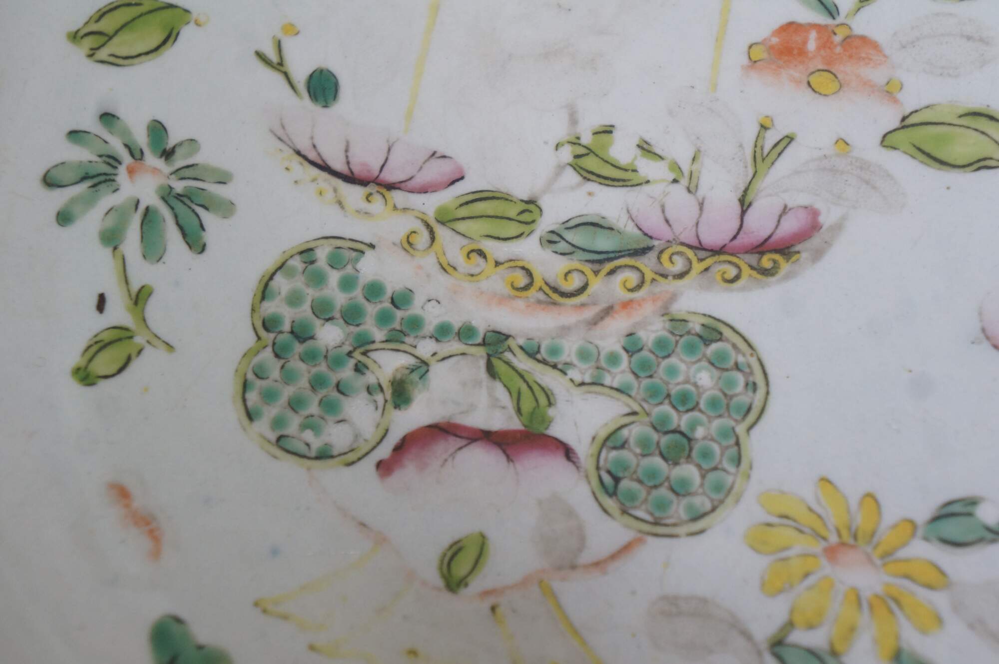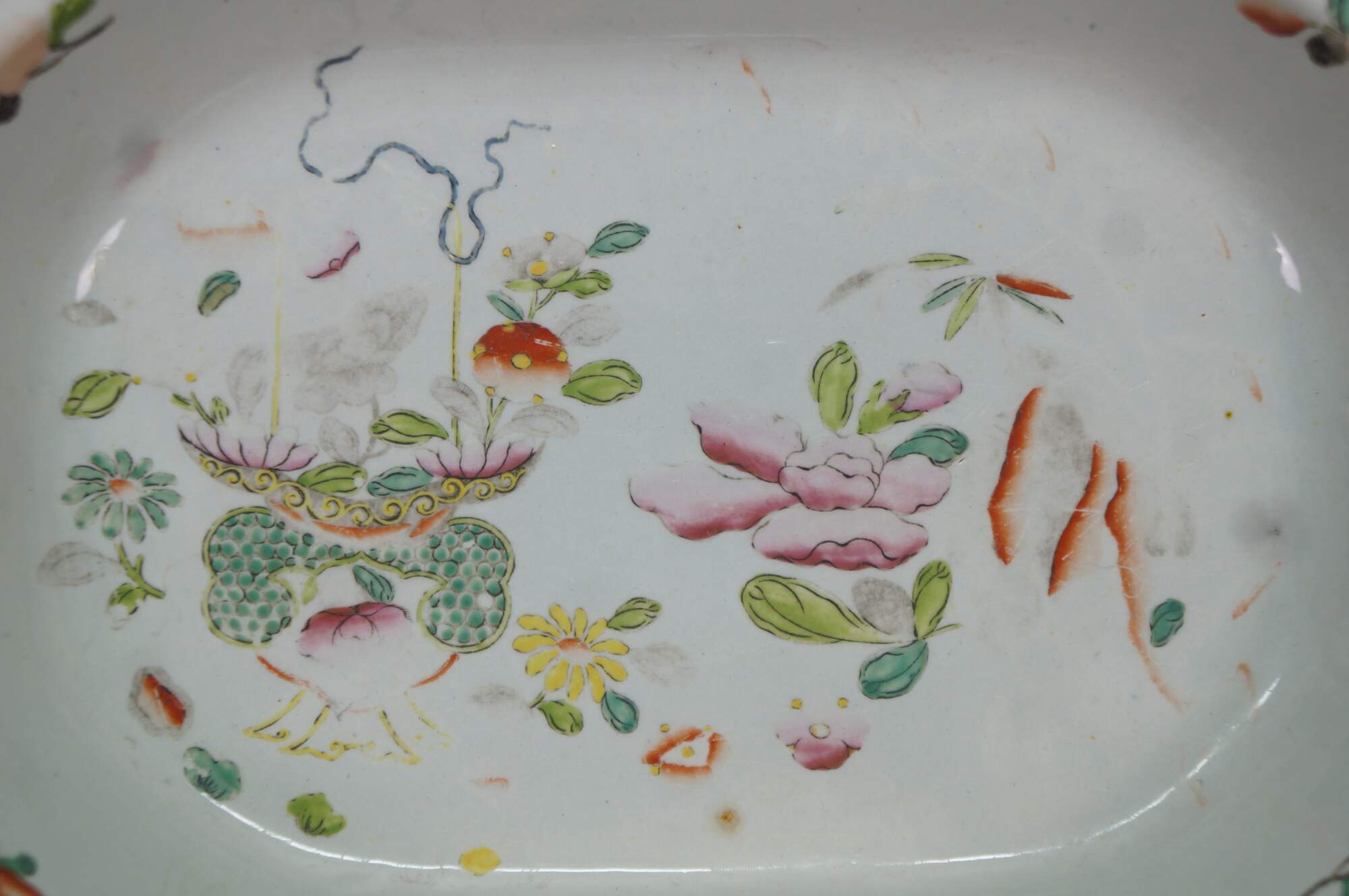 Good Overall; Discoloration and fading. Wear to decorations; a few chips to underside