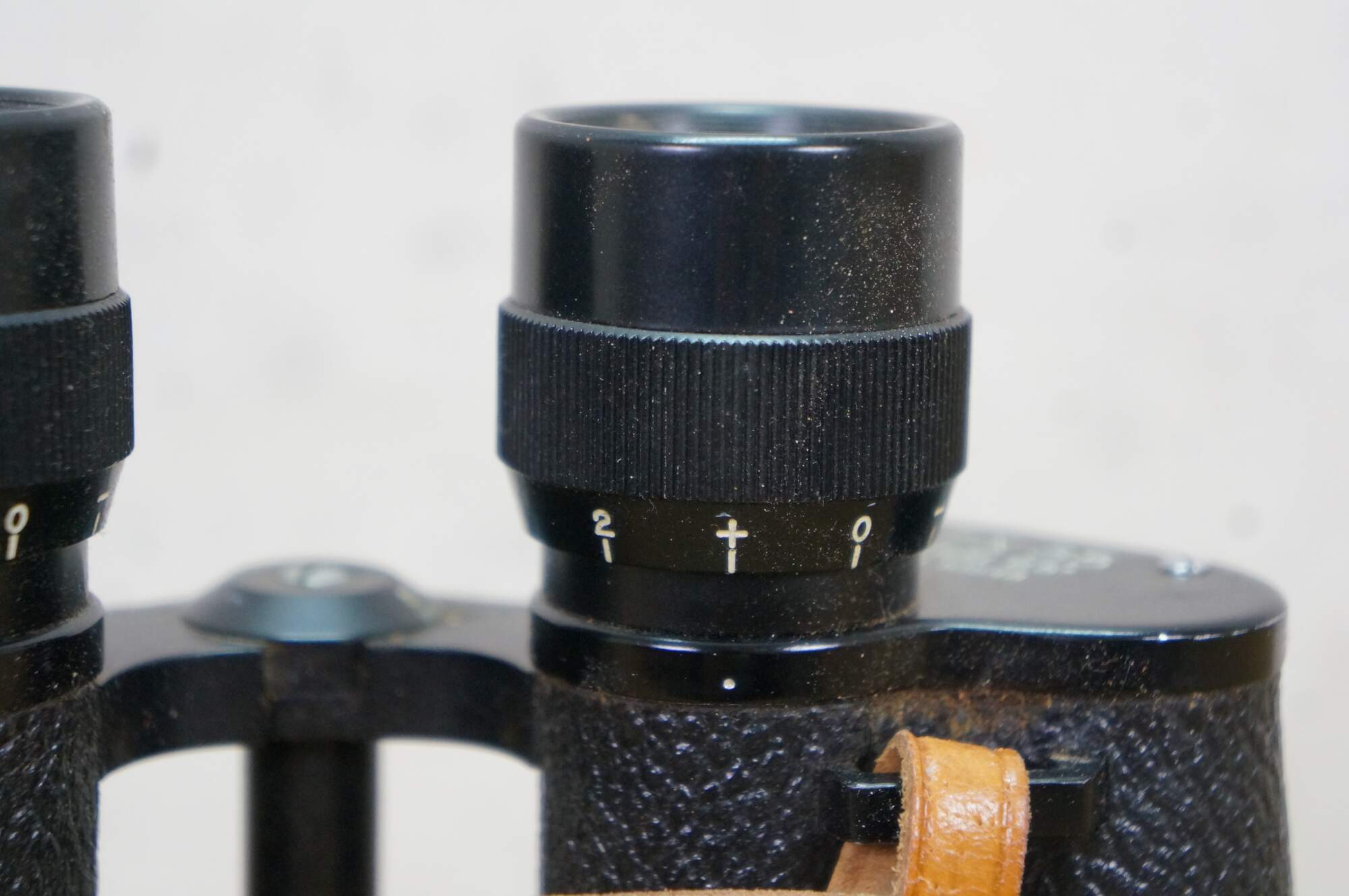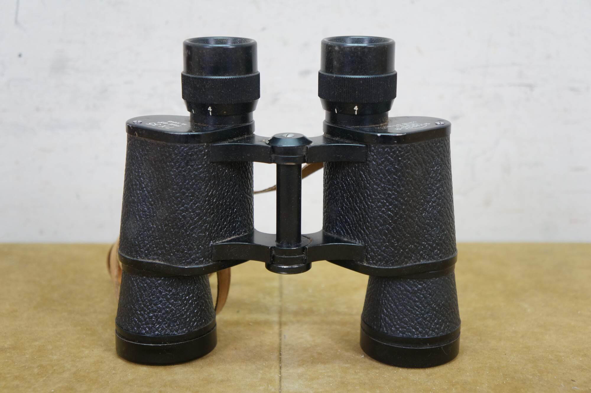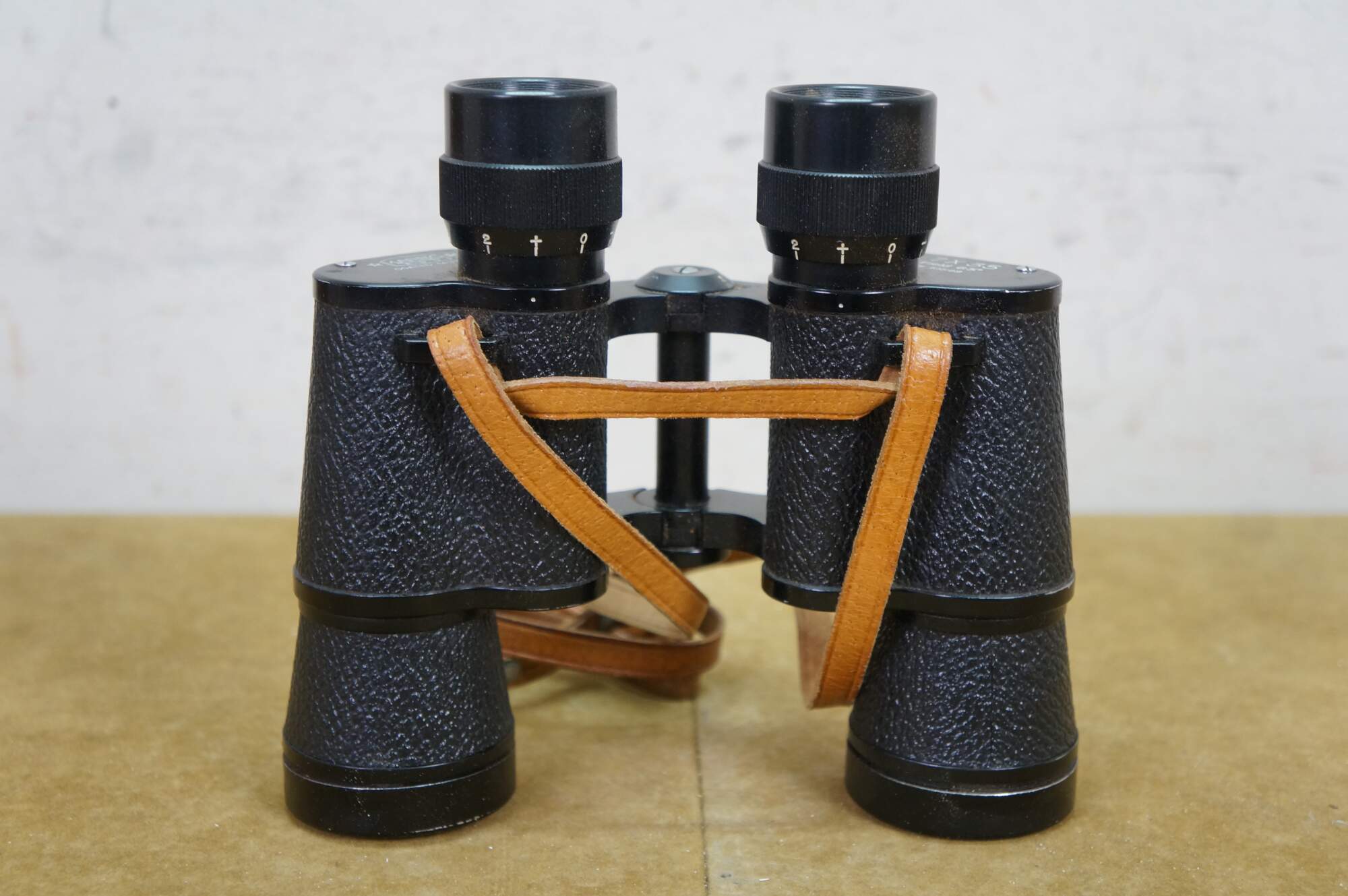 Vintage pair of wide-angle binoculars made in Japan, featuring coated optics and sturdy construction with Hoya glass components. Includes leather case.