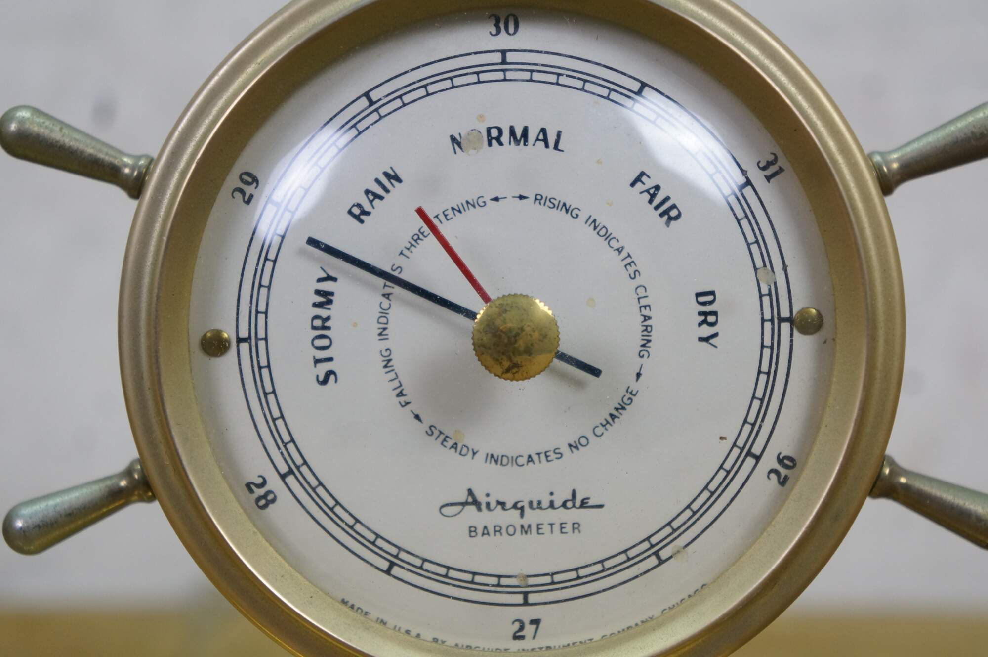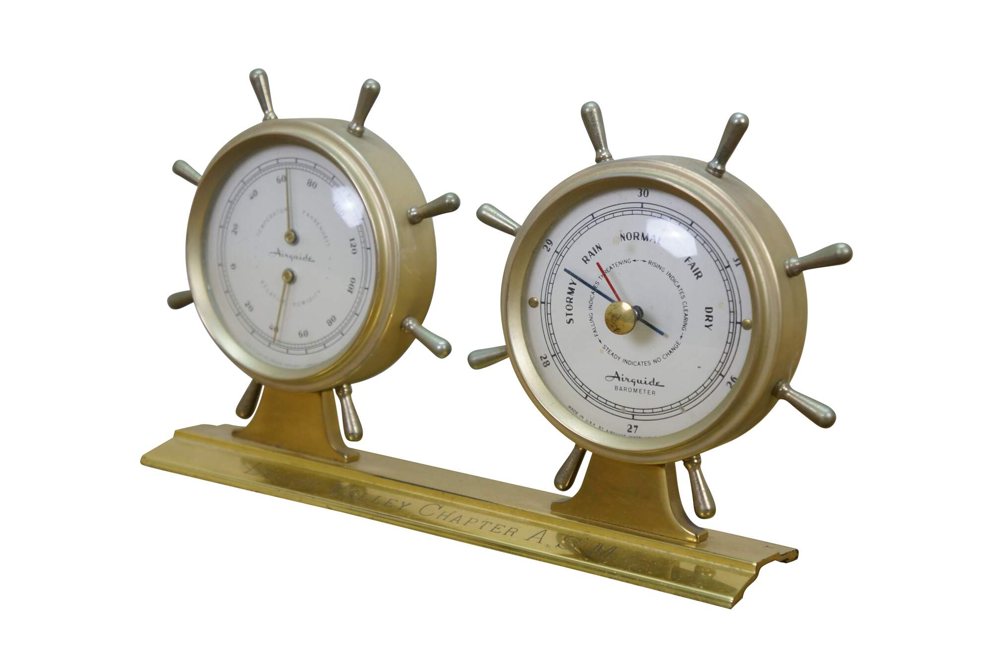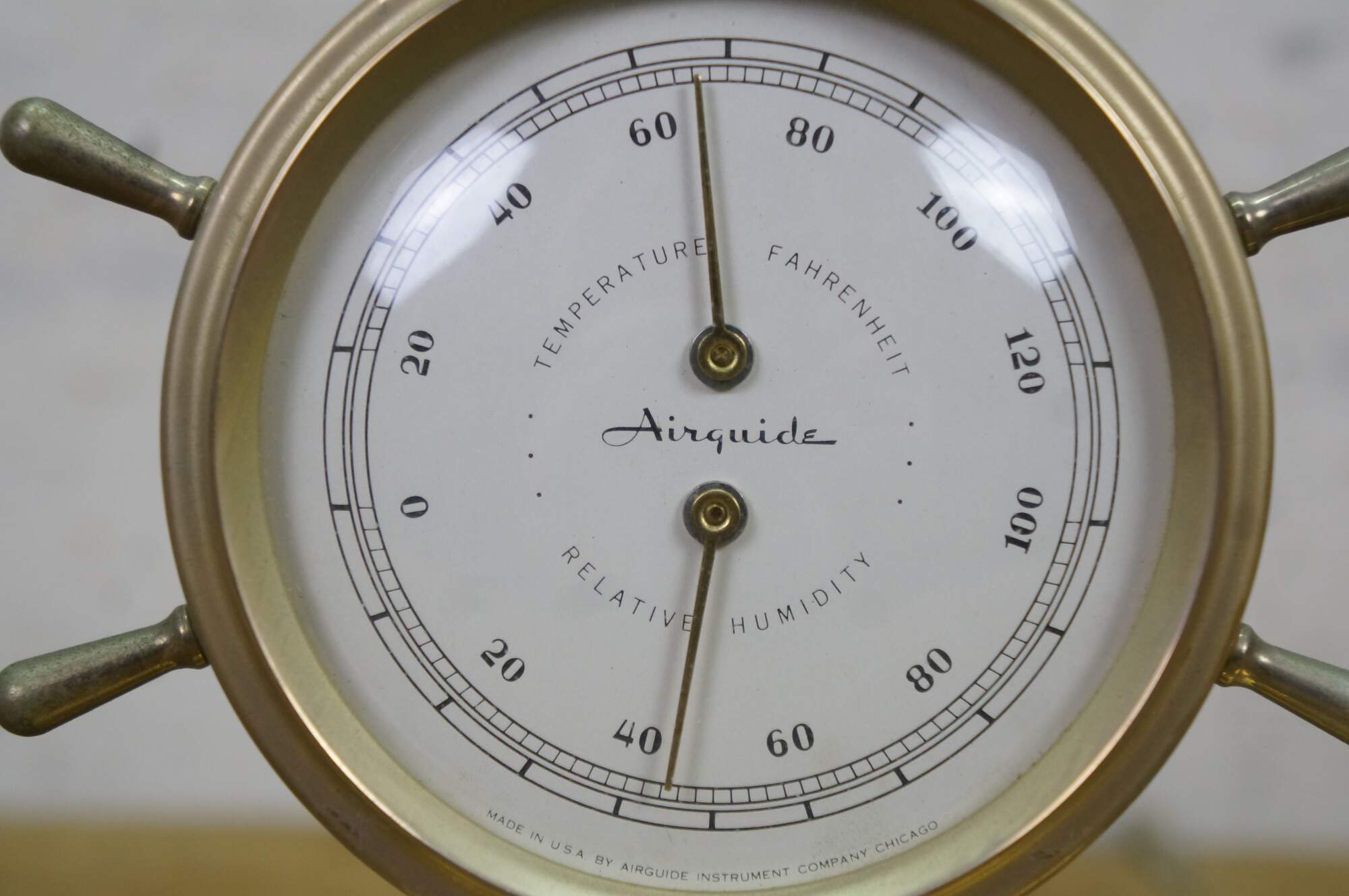 Vintage Airguide desktop weather station designed to look like a double ship's wheel.