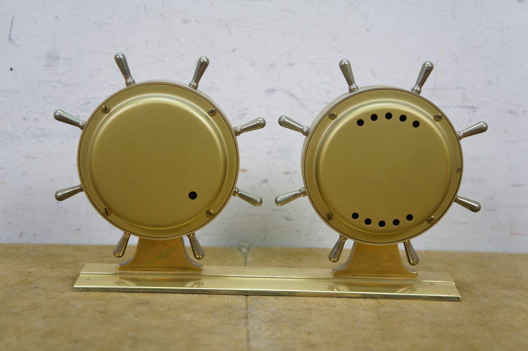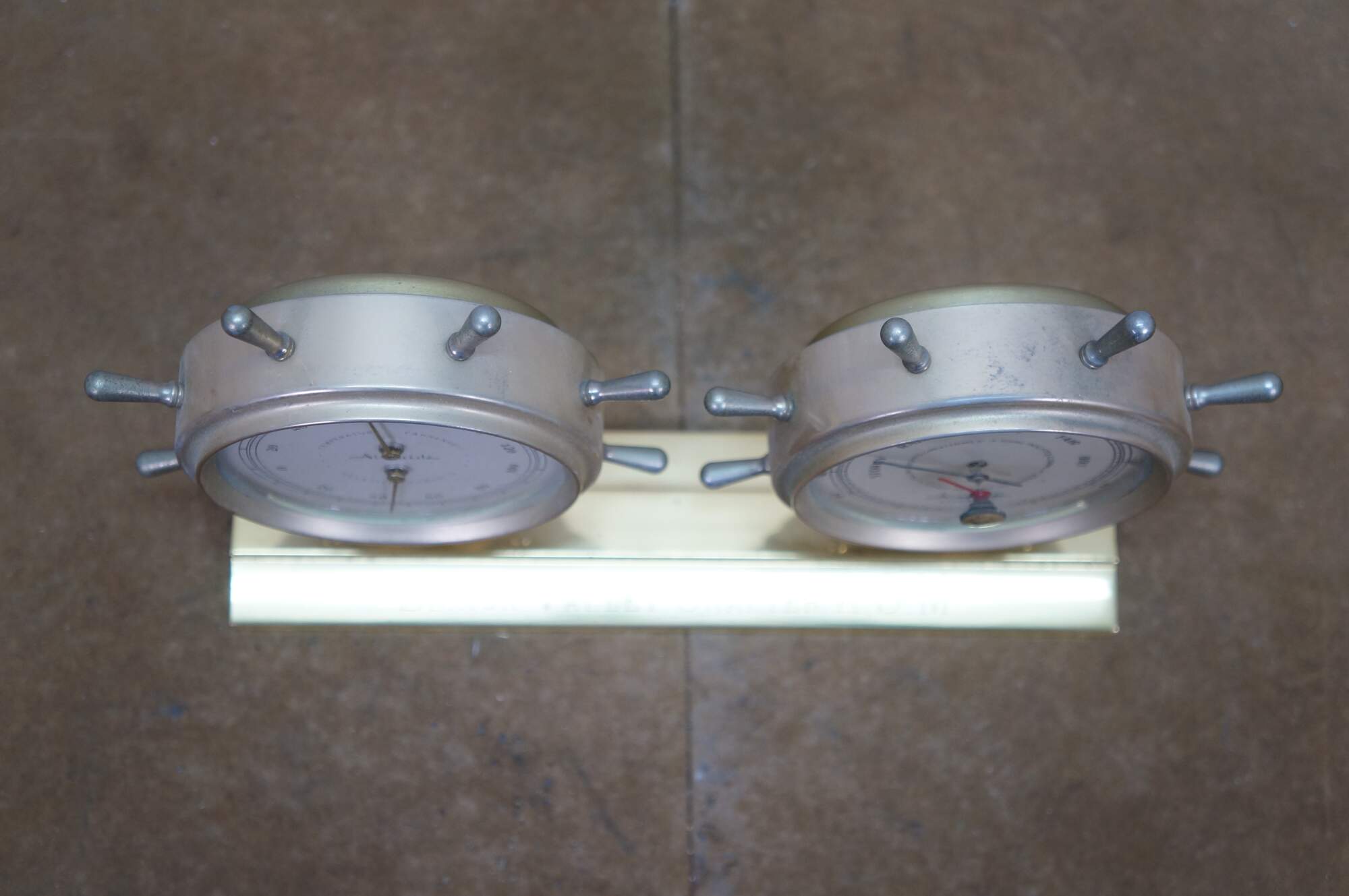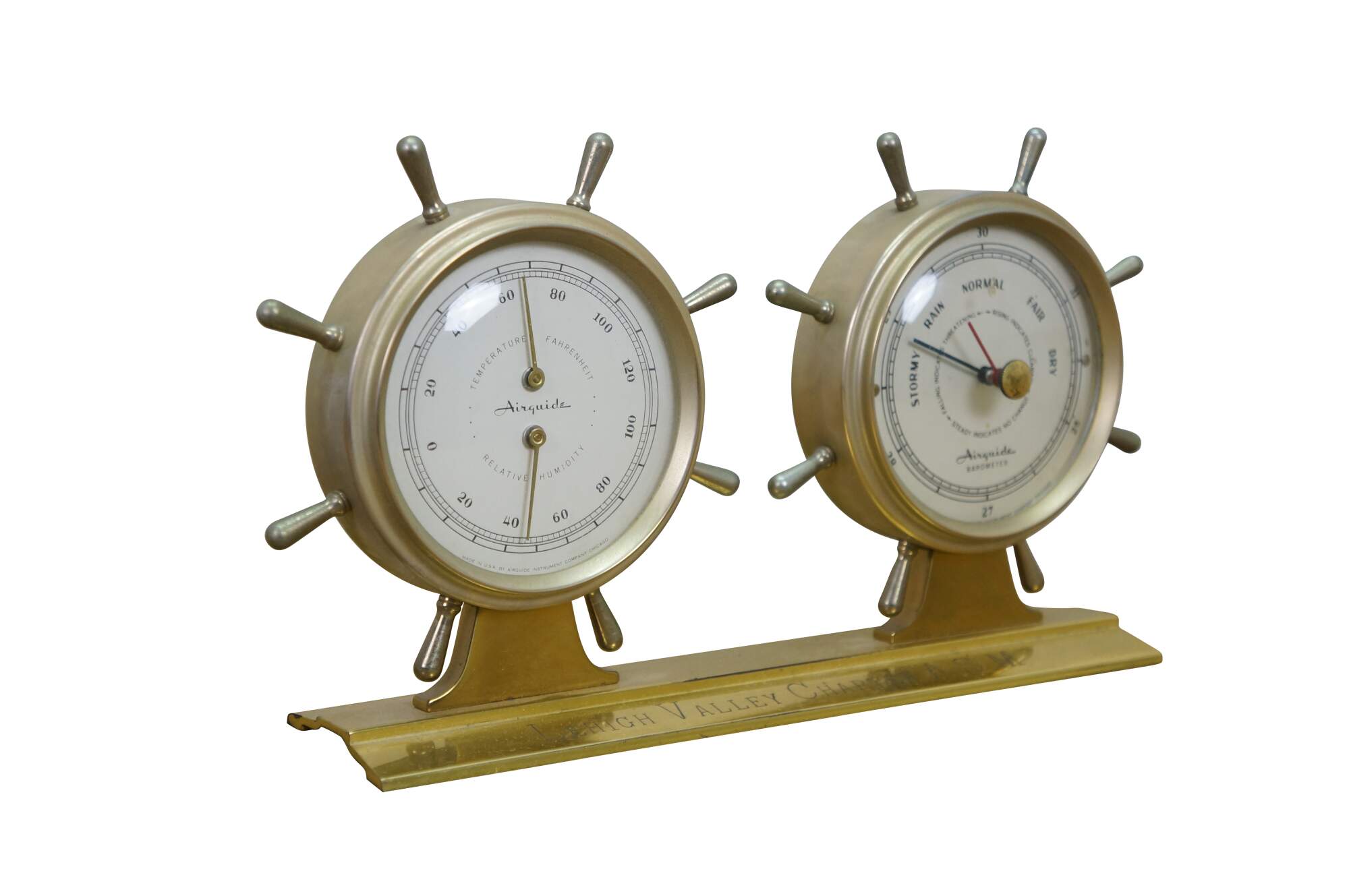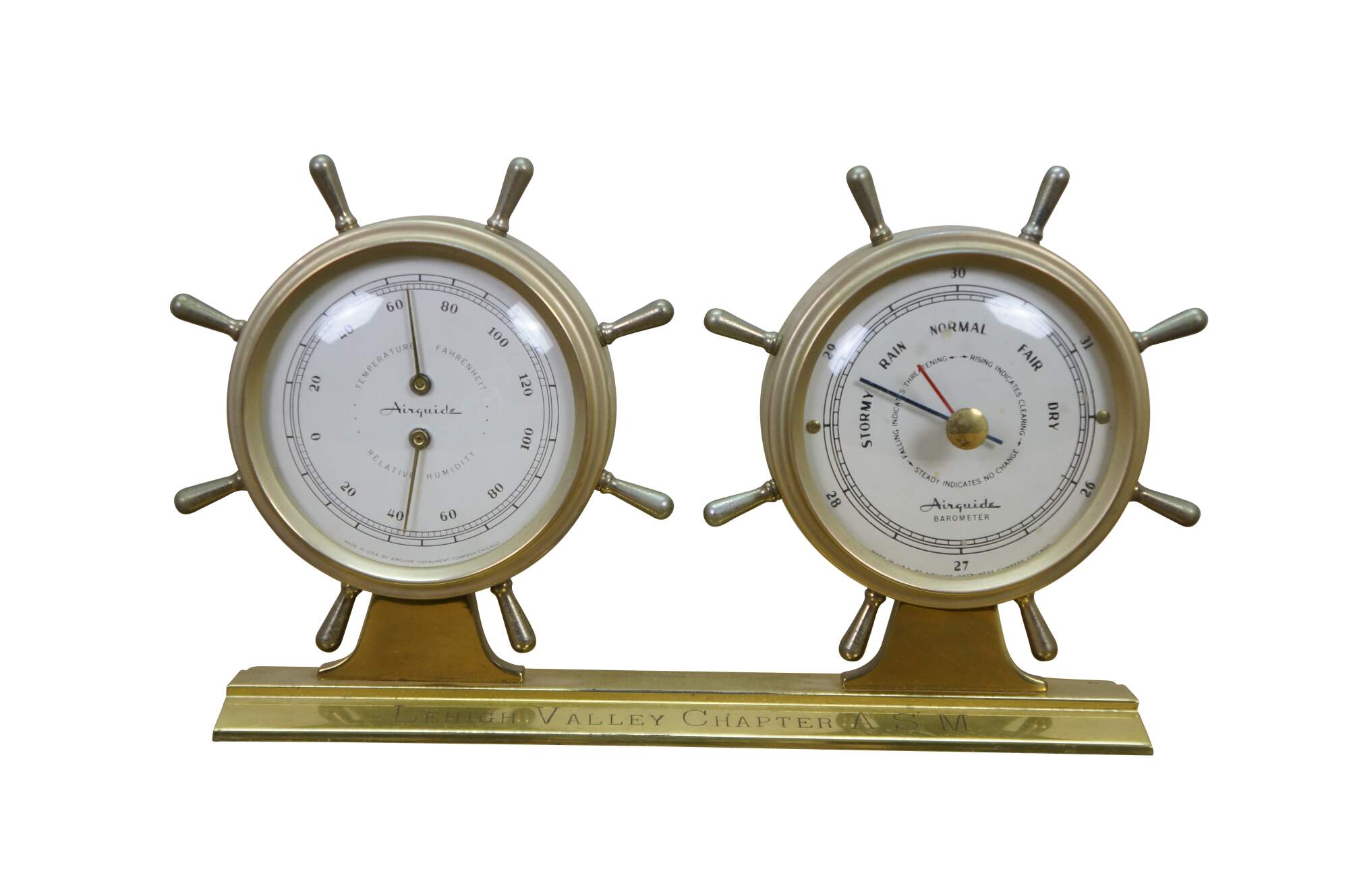 Vintage Airguide desktop weather station designed to look like a double ship's wheel.
