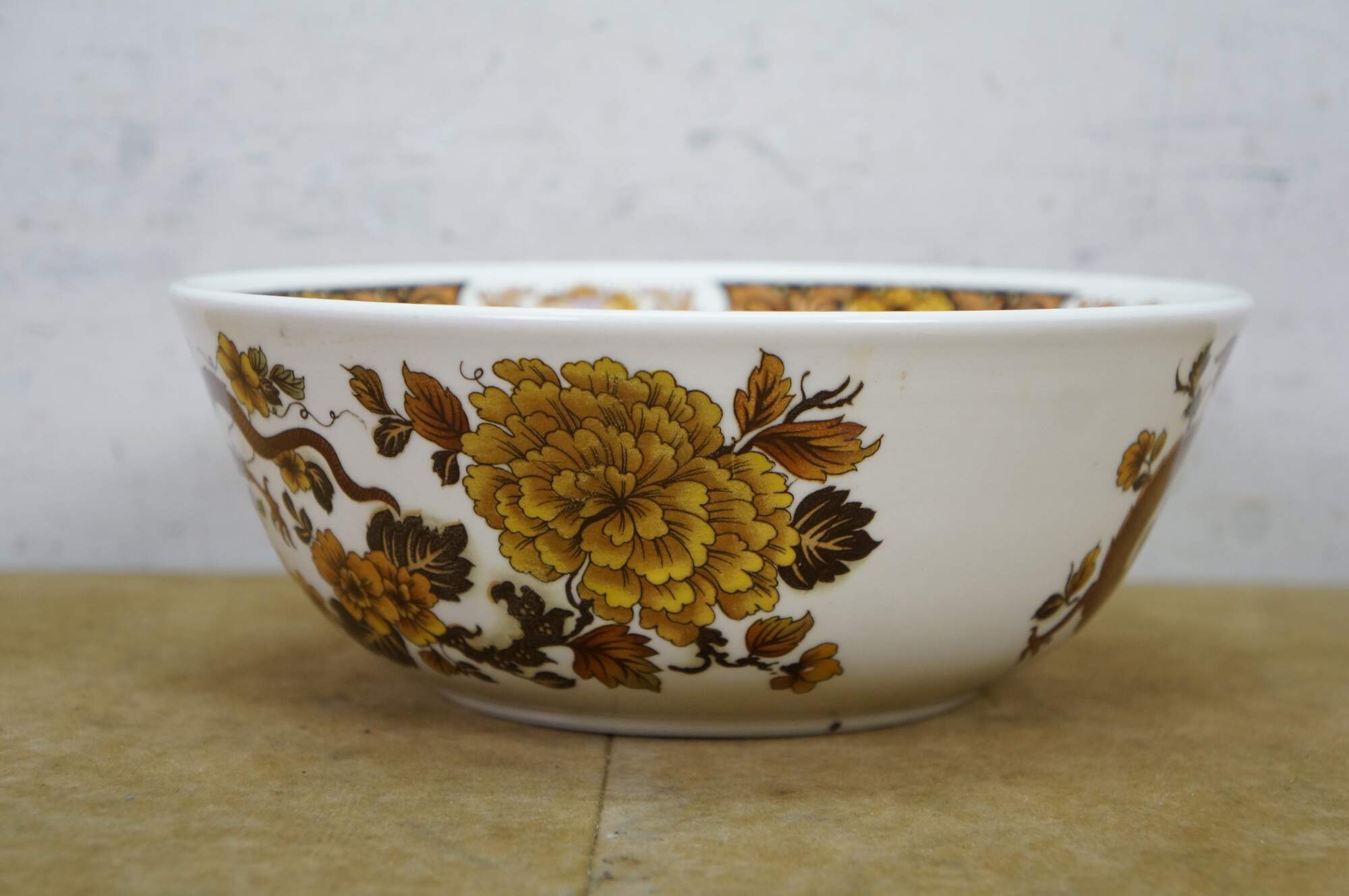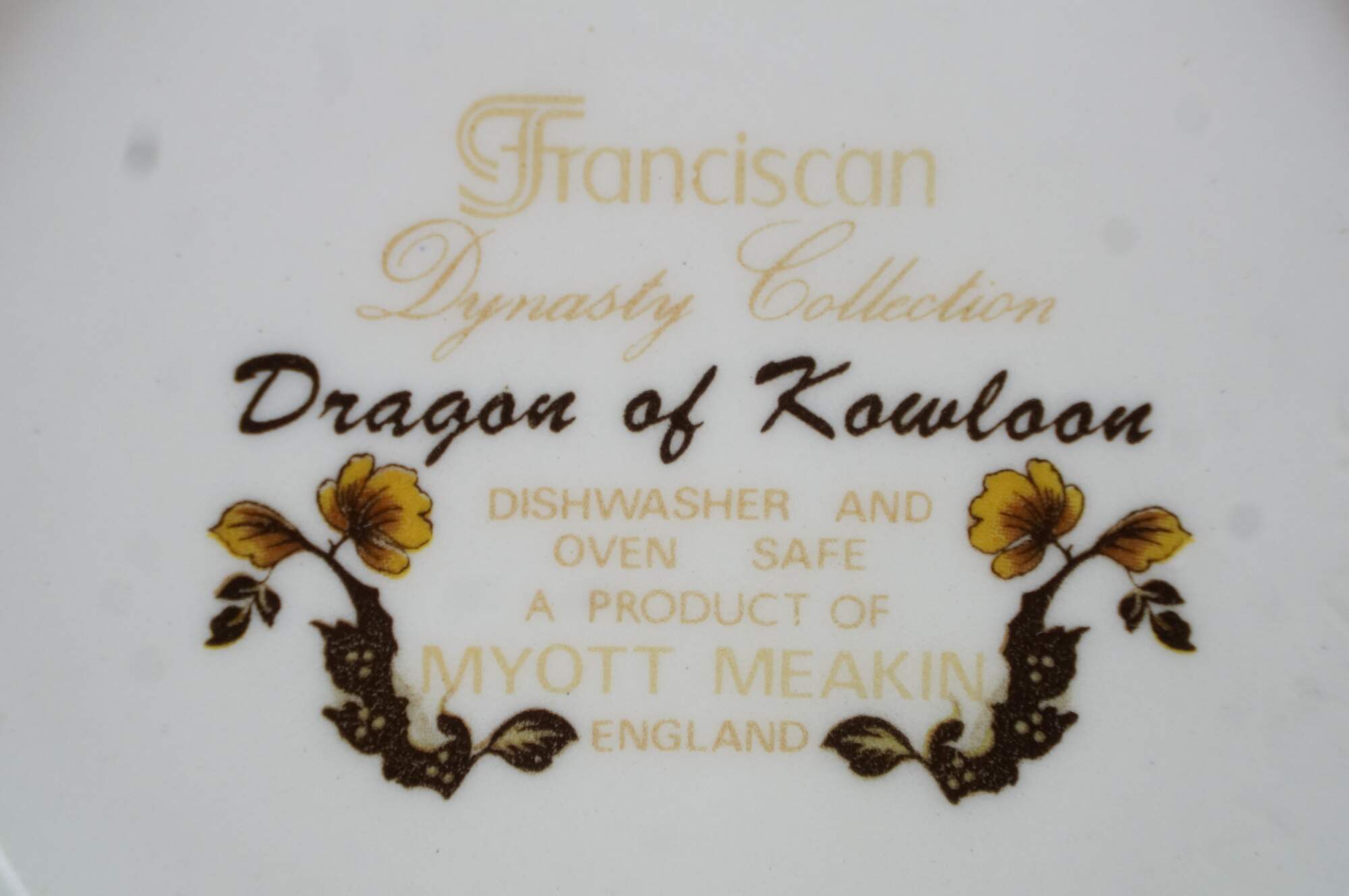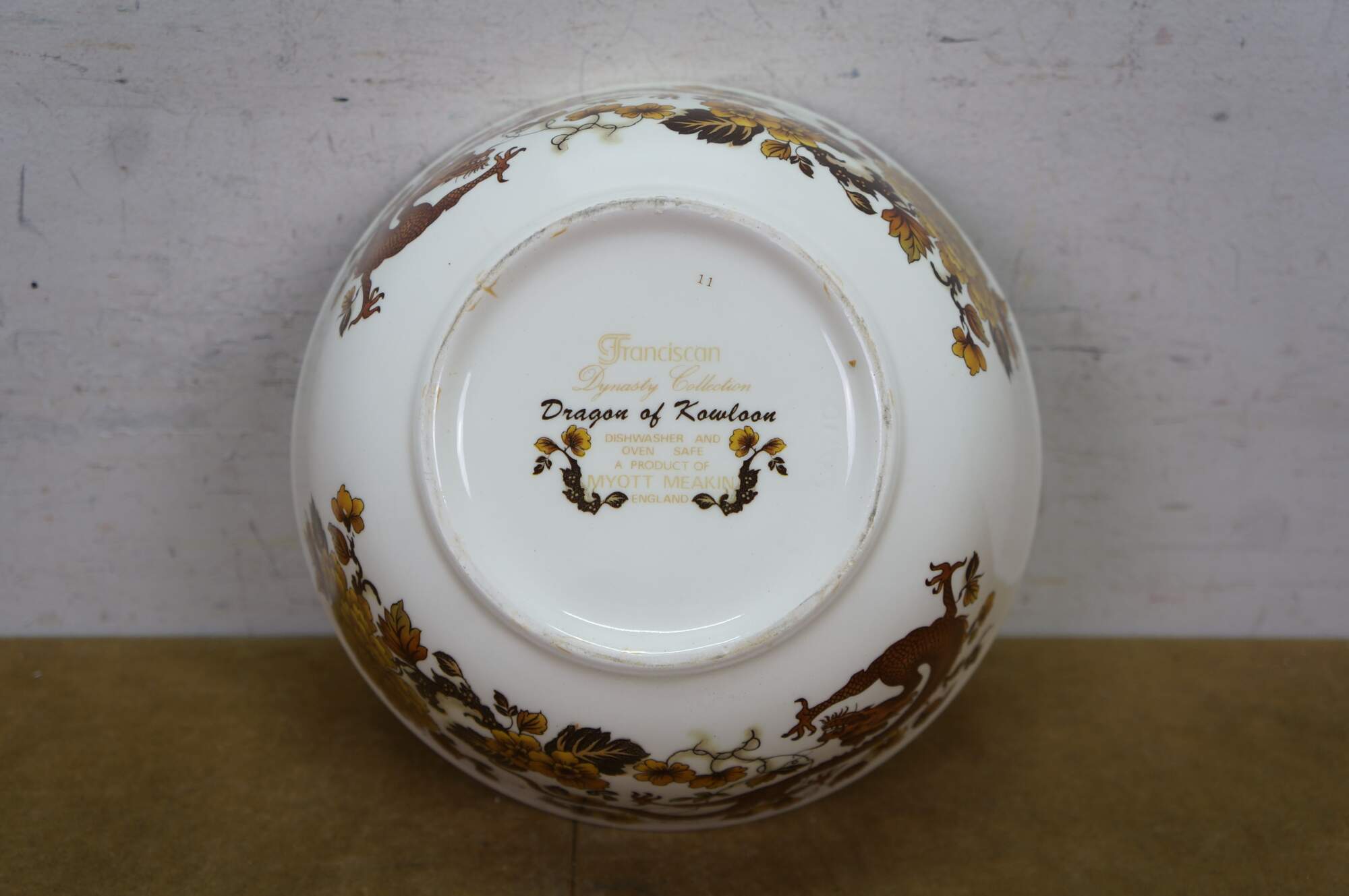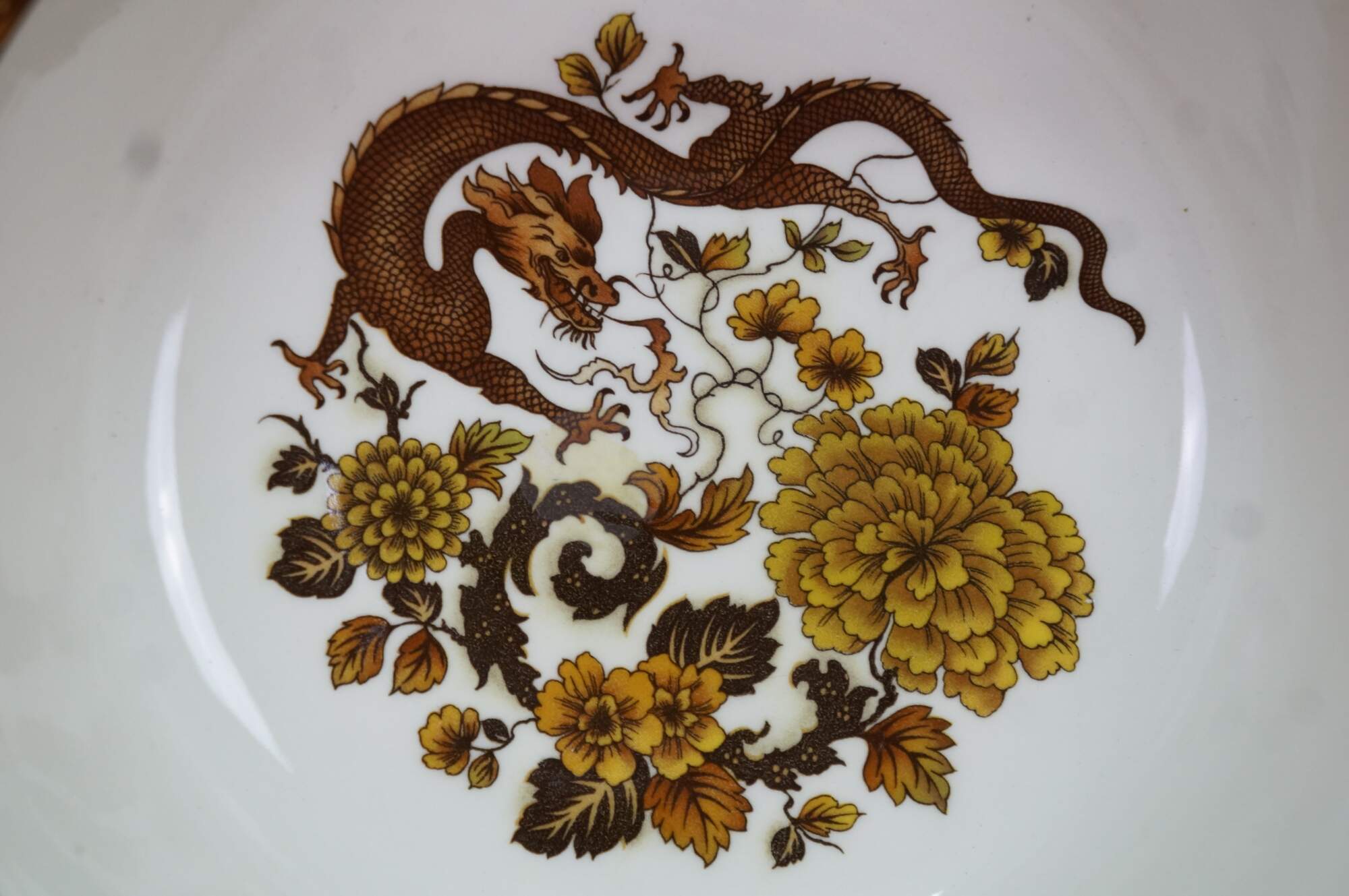 Vintage Franciscan Dynasty Collection Dragon of Kowloon Porcelain Bowl. Features a dragon design with leaves.