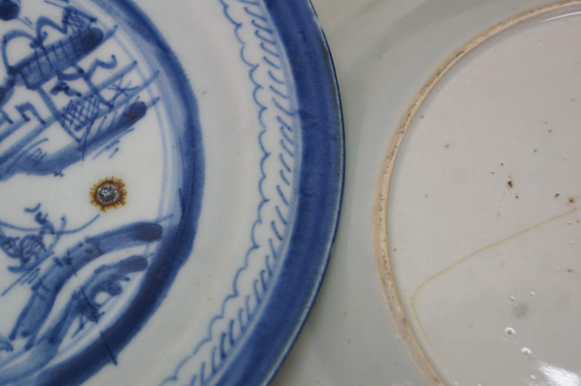 Good Antique Condition with some chips, discoloration, repair to one