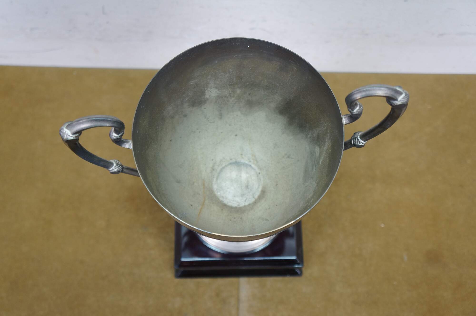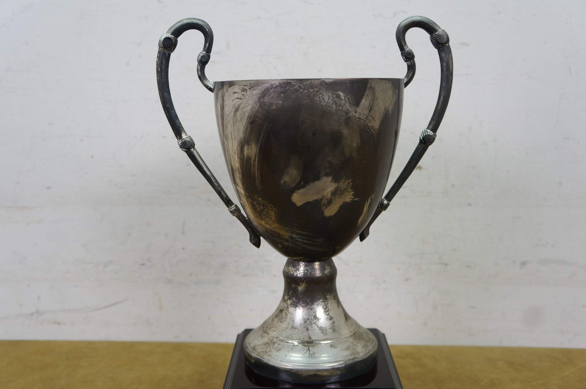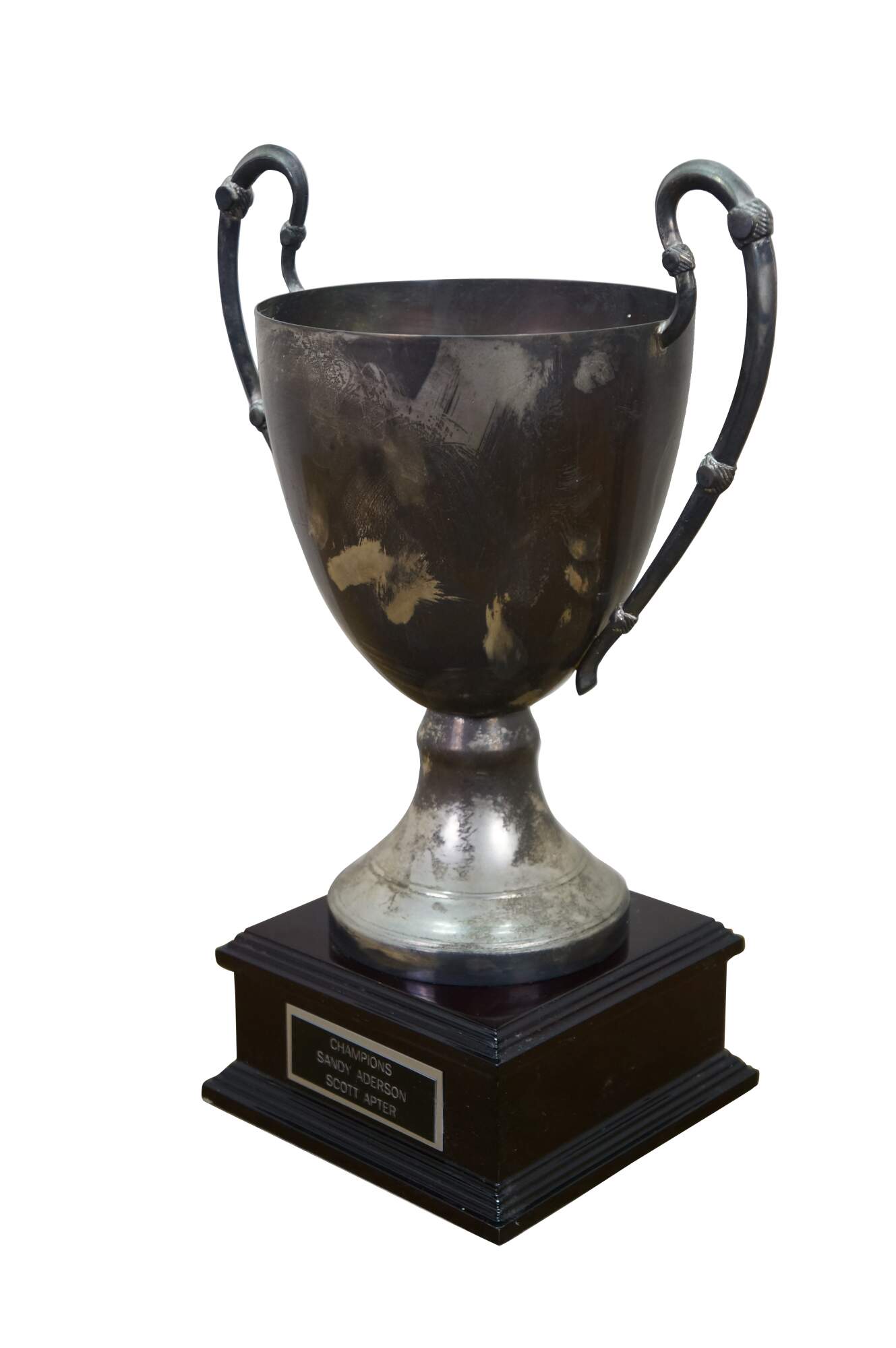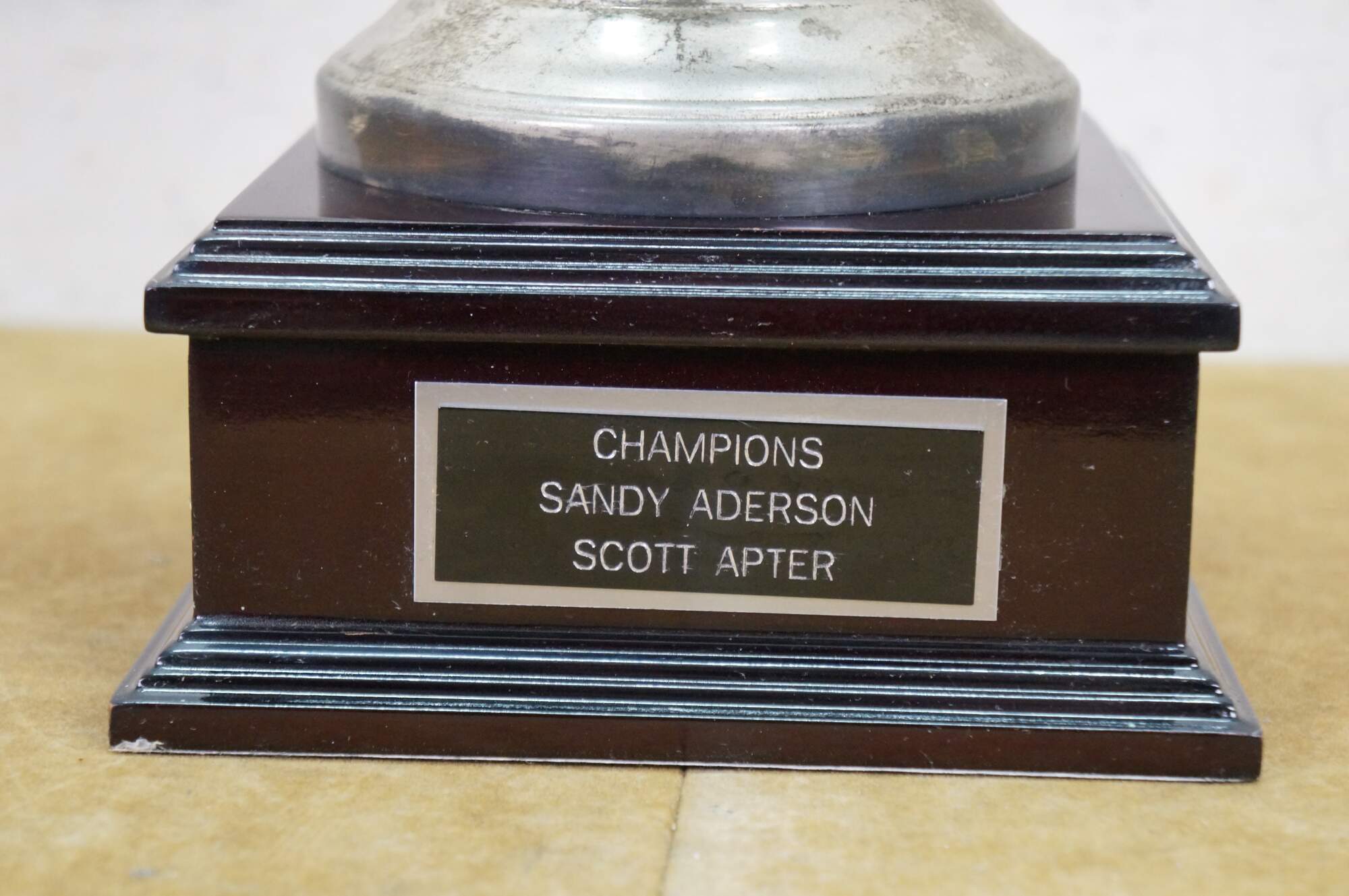 Vintage silver plated award trophy cup from winner of a golf tournament. Winners Sandy Aderson and Scott Apter.