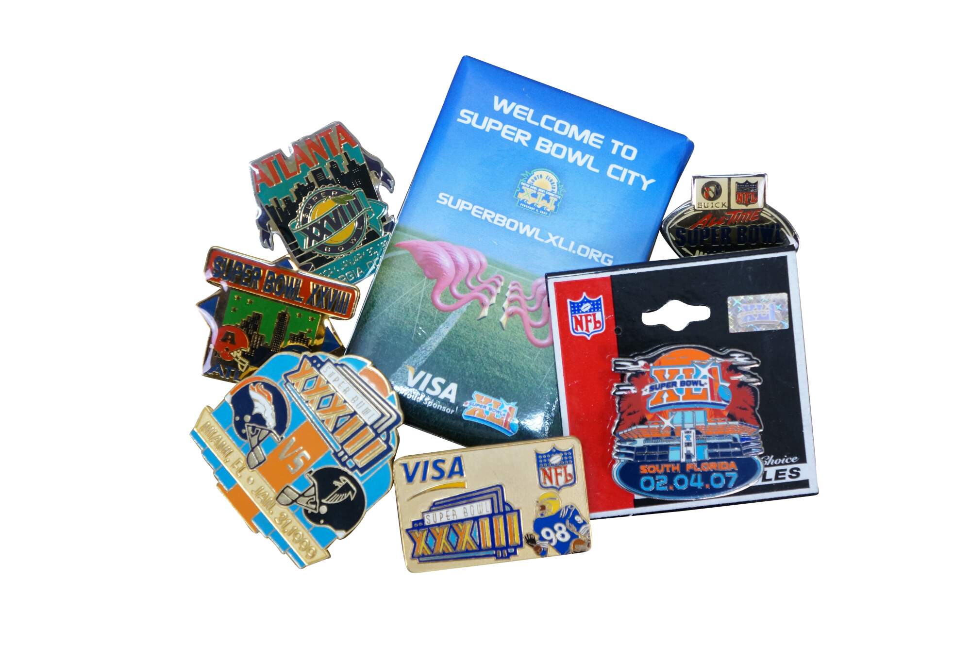 7 Vintage National Football League NFL Super Bowl Lapel Brooch Pins Badges