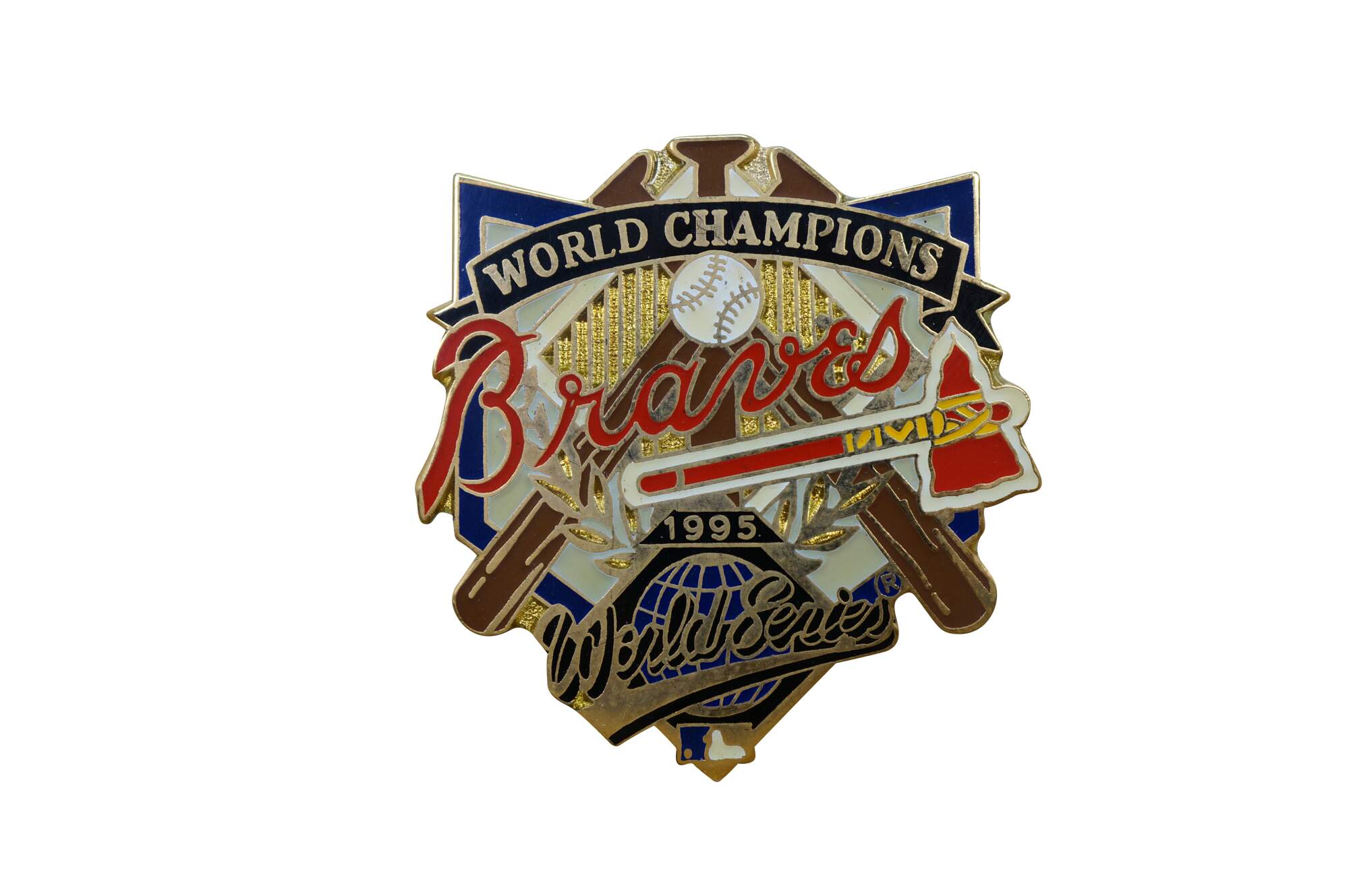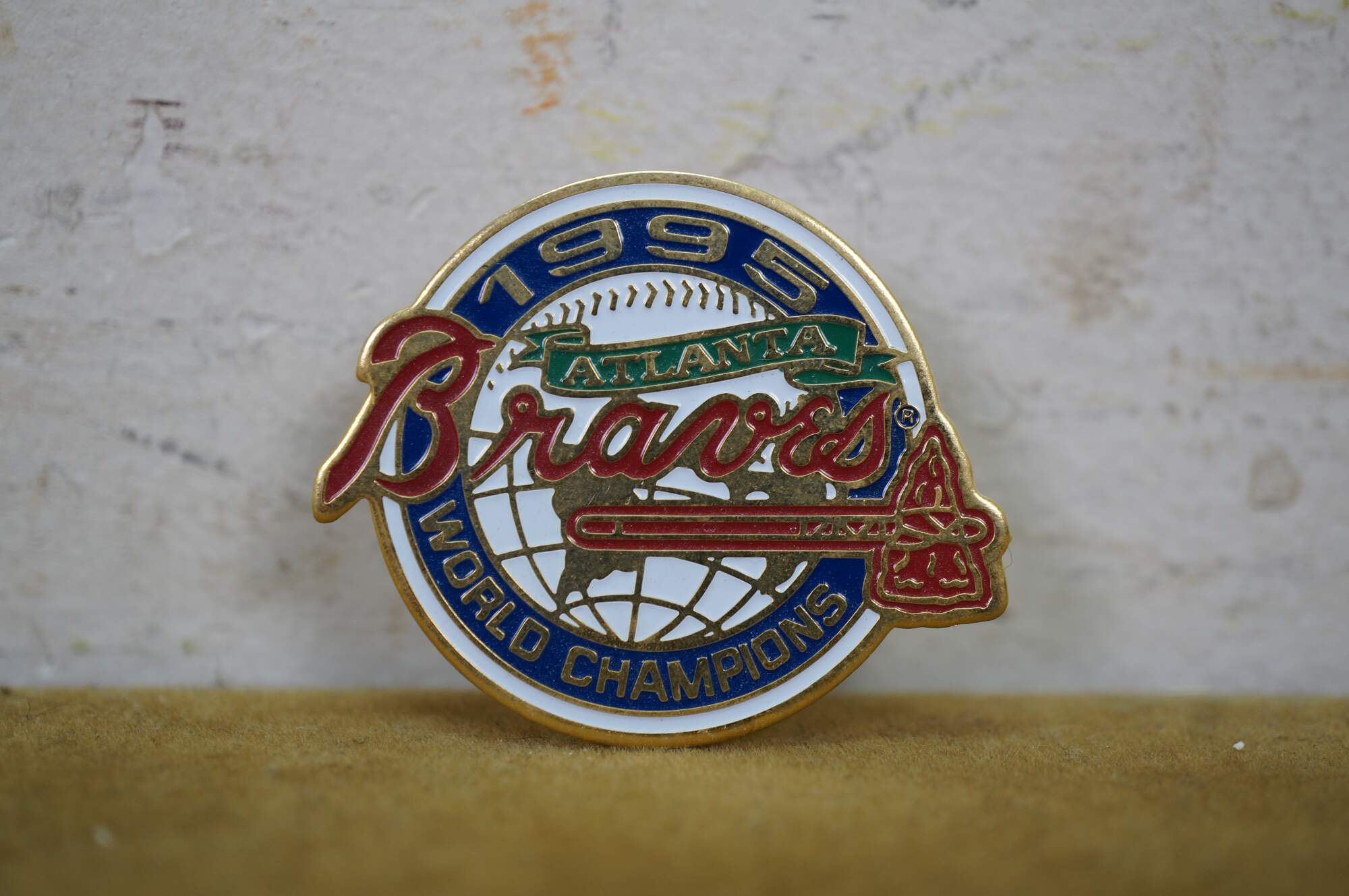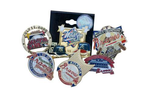 Six vintage Atlanta Braves MLB Baseball brooch pins / badges.