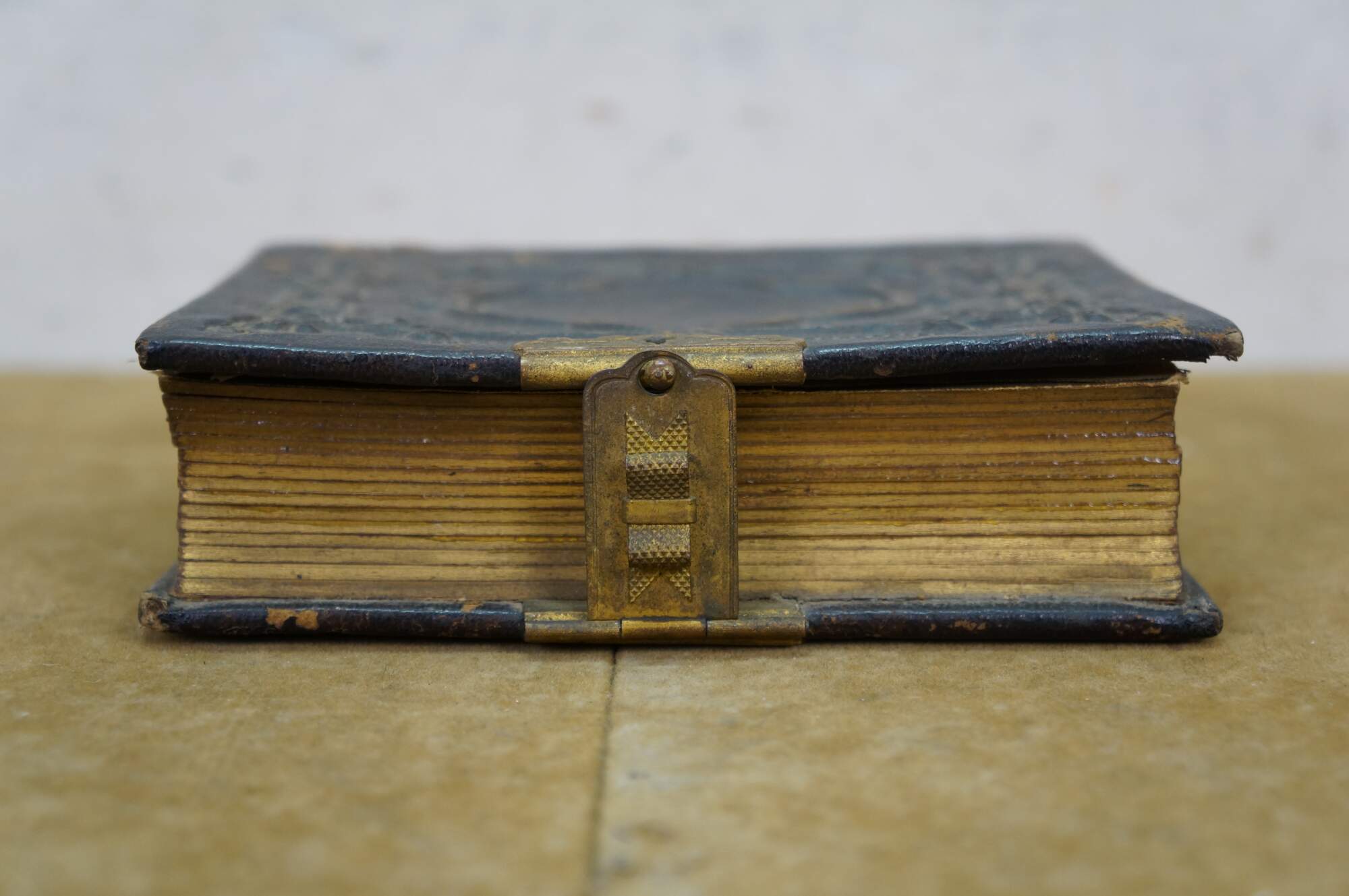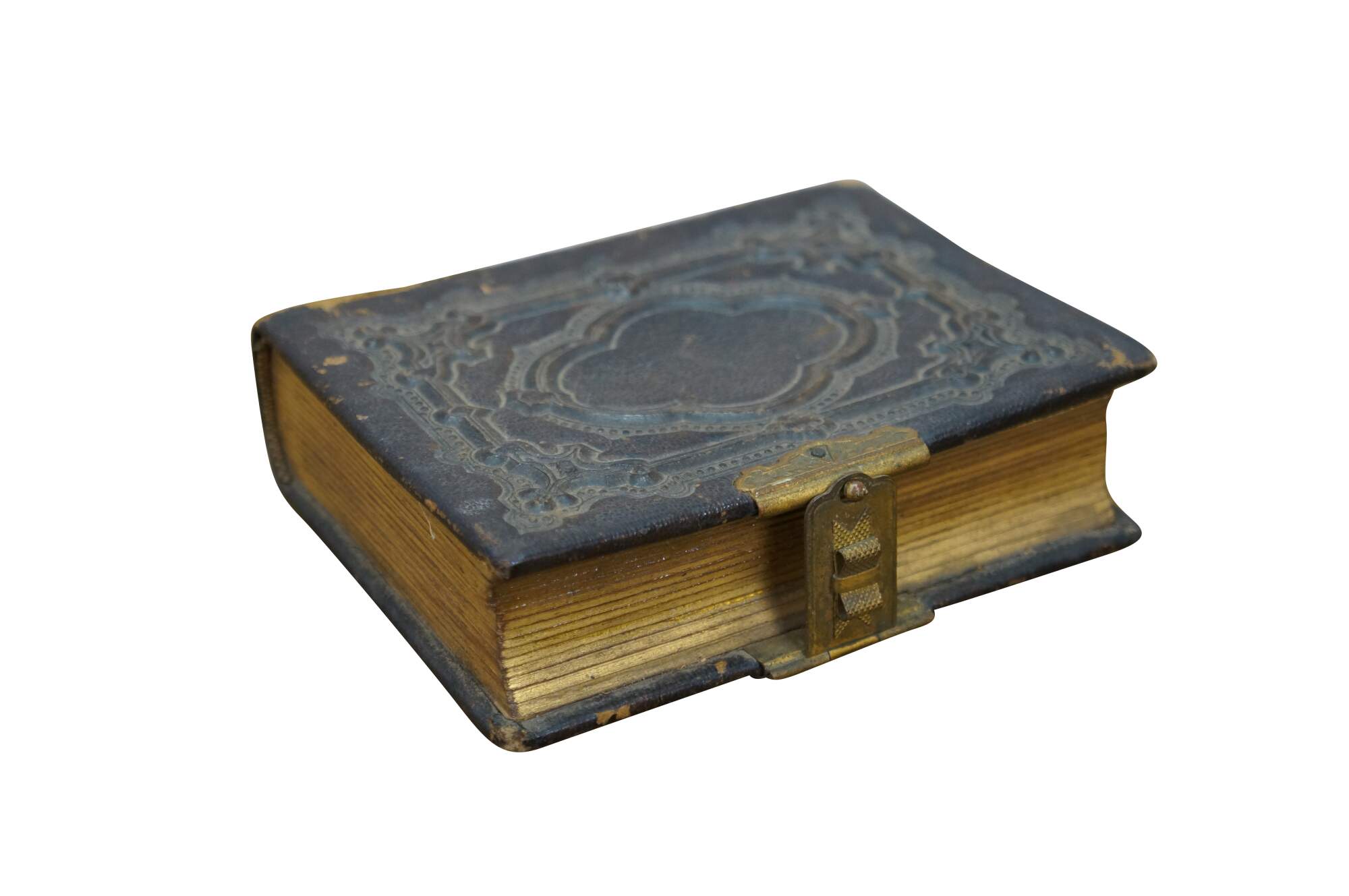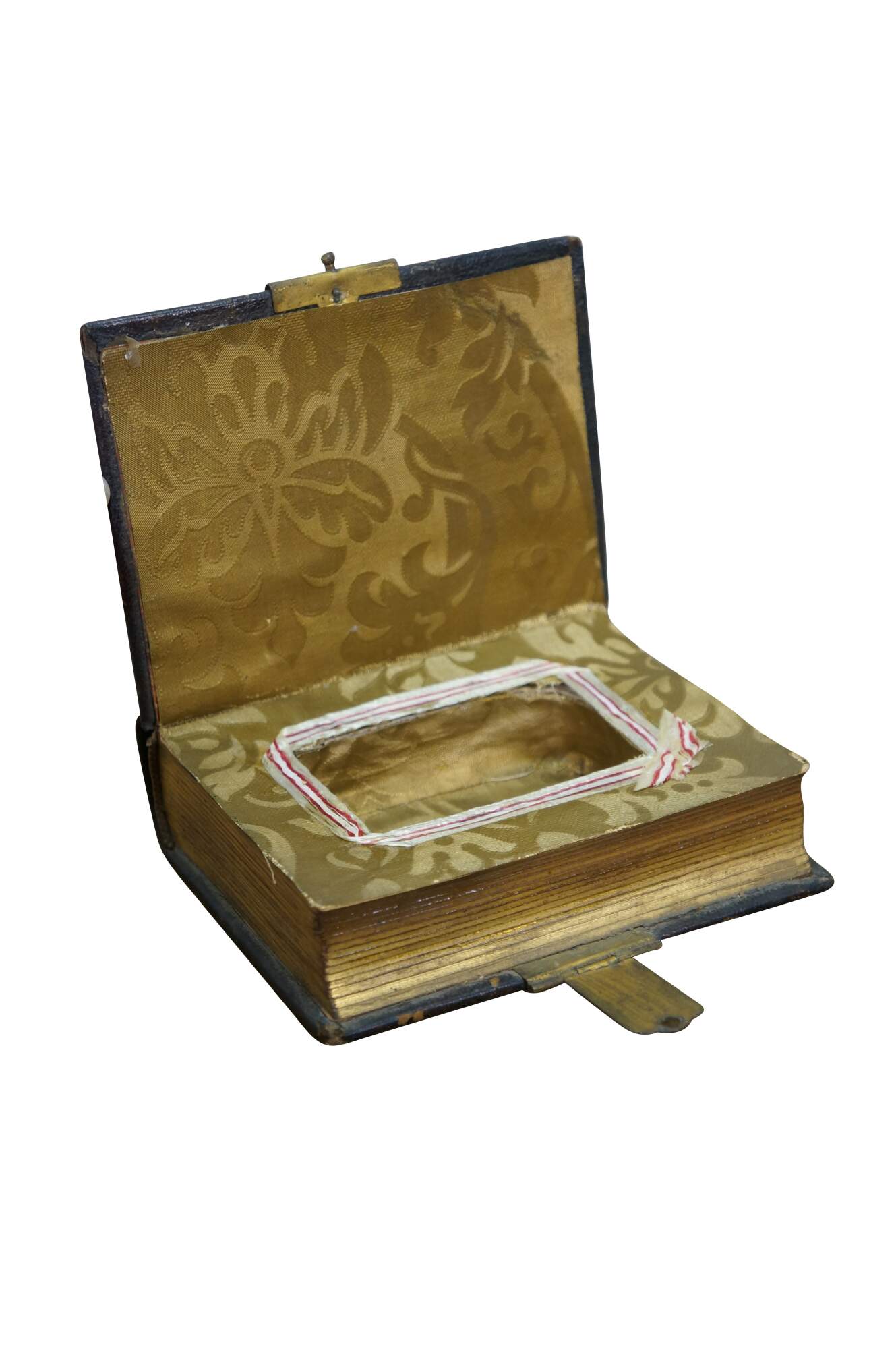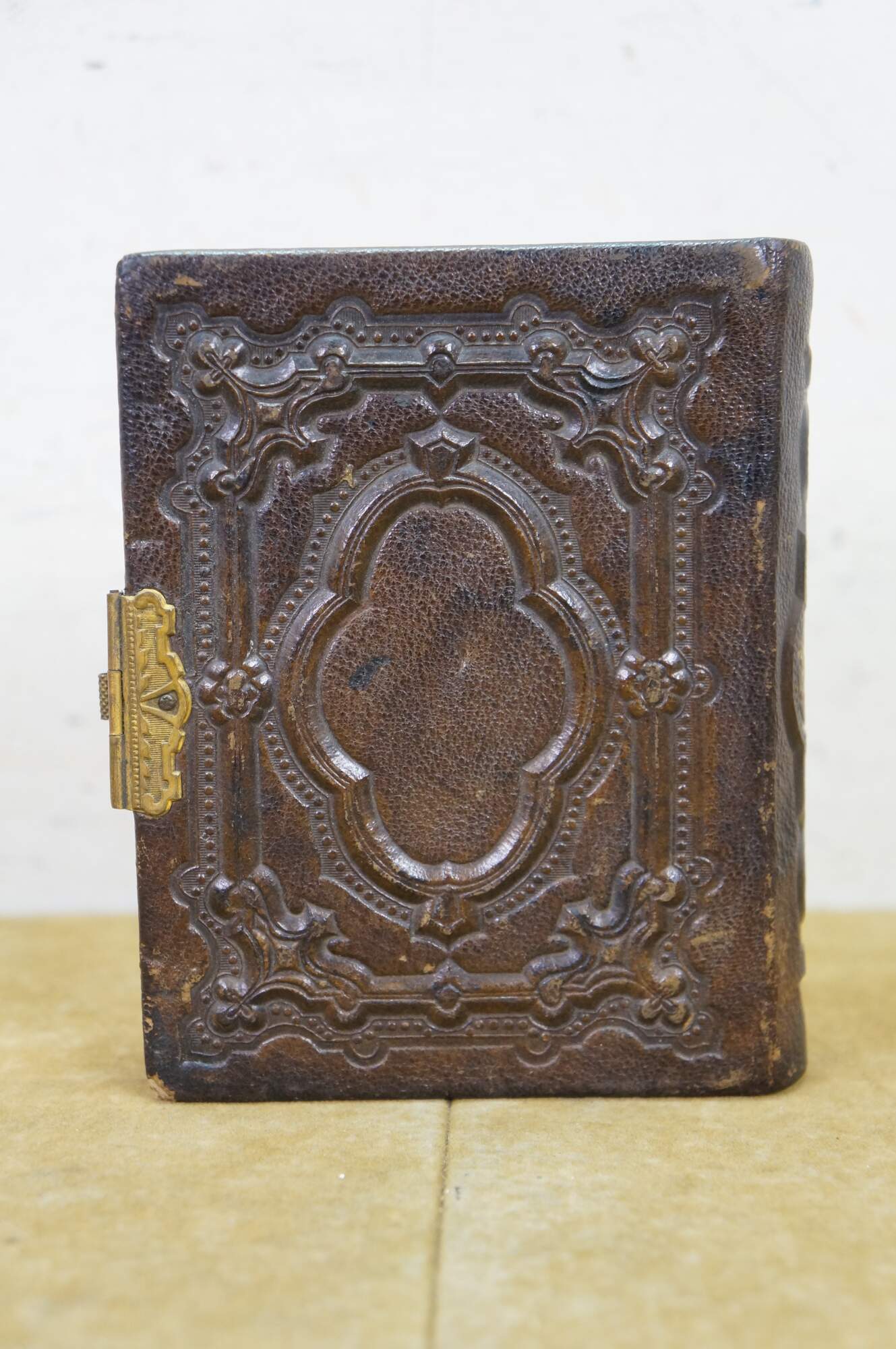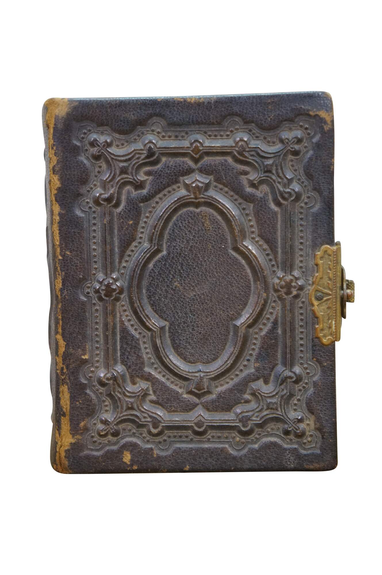 Antique embossed leather book album with a secret / hidden compartment, aka bookcase or stash box.