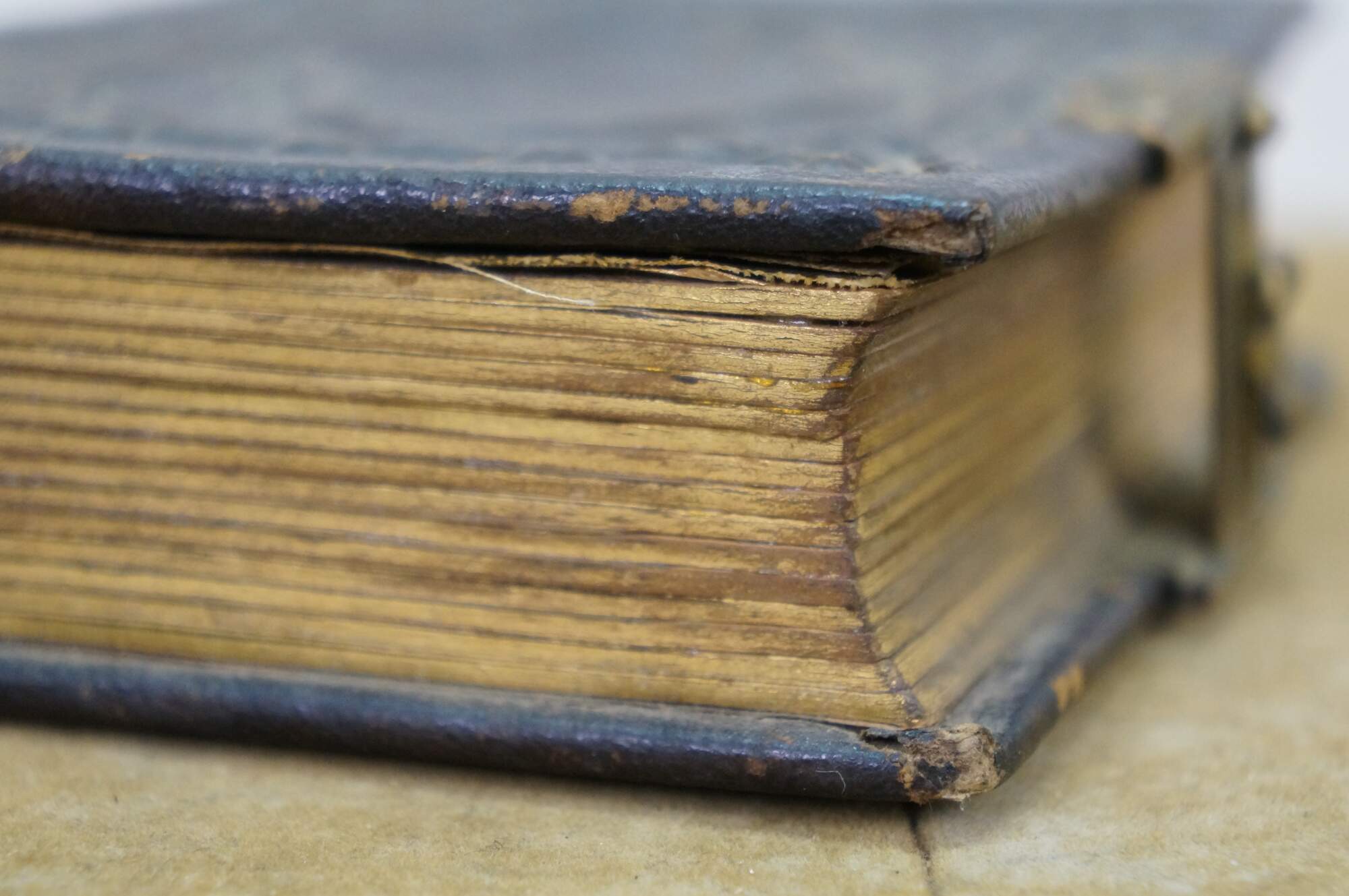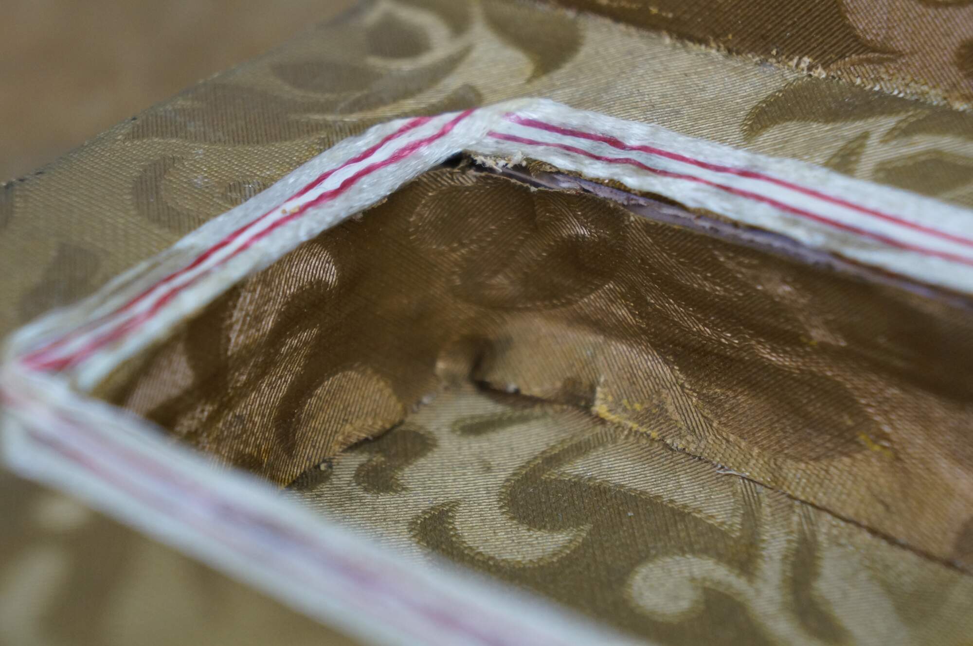 Wear to spine edges/cover; some discoloration; fraying to lining