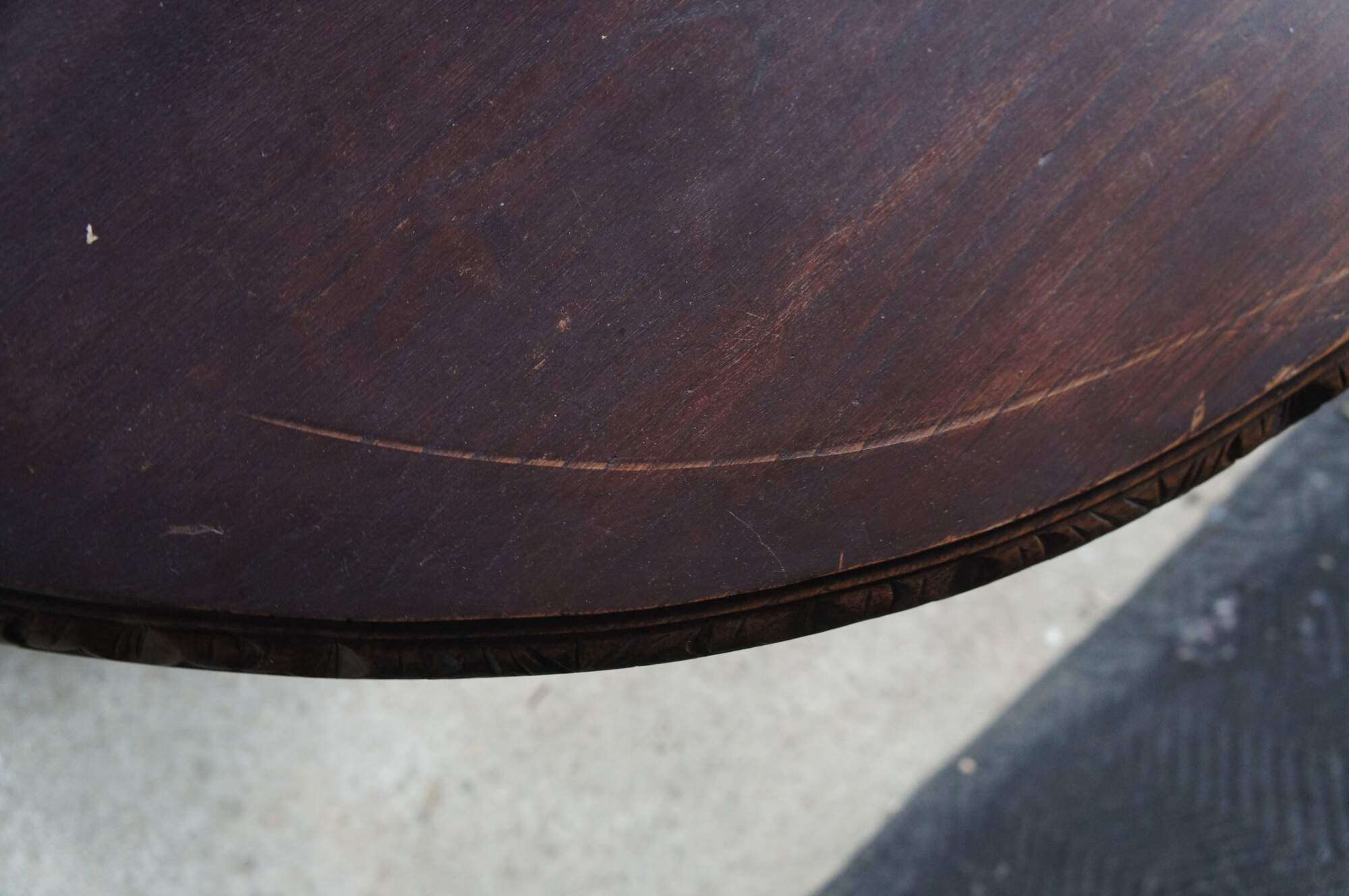 Wear and distressing from age and use, chipping / missing trim, finish loss, scuffing, warping, no leaves.