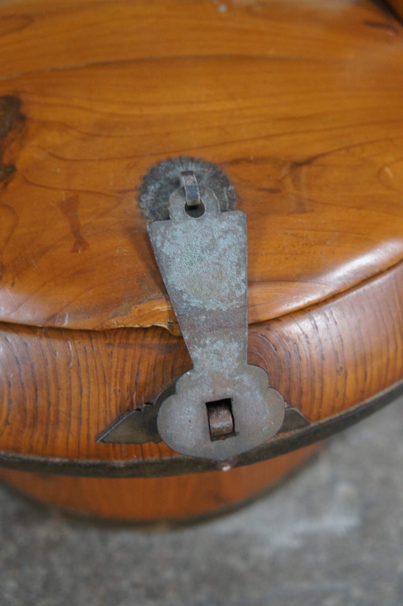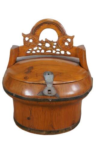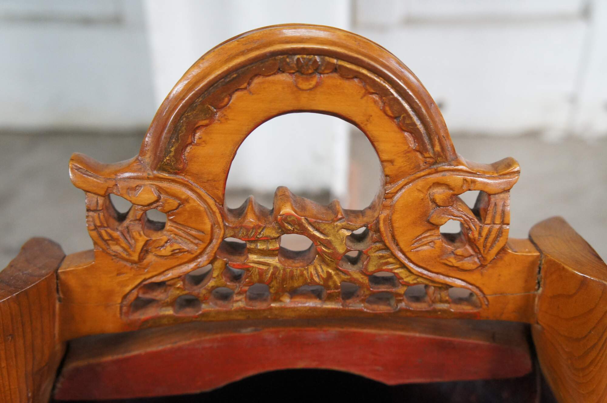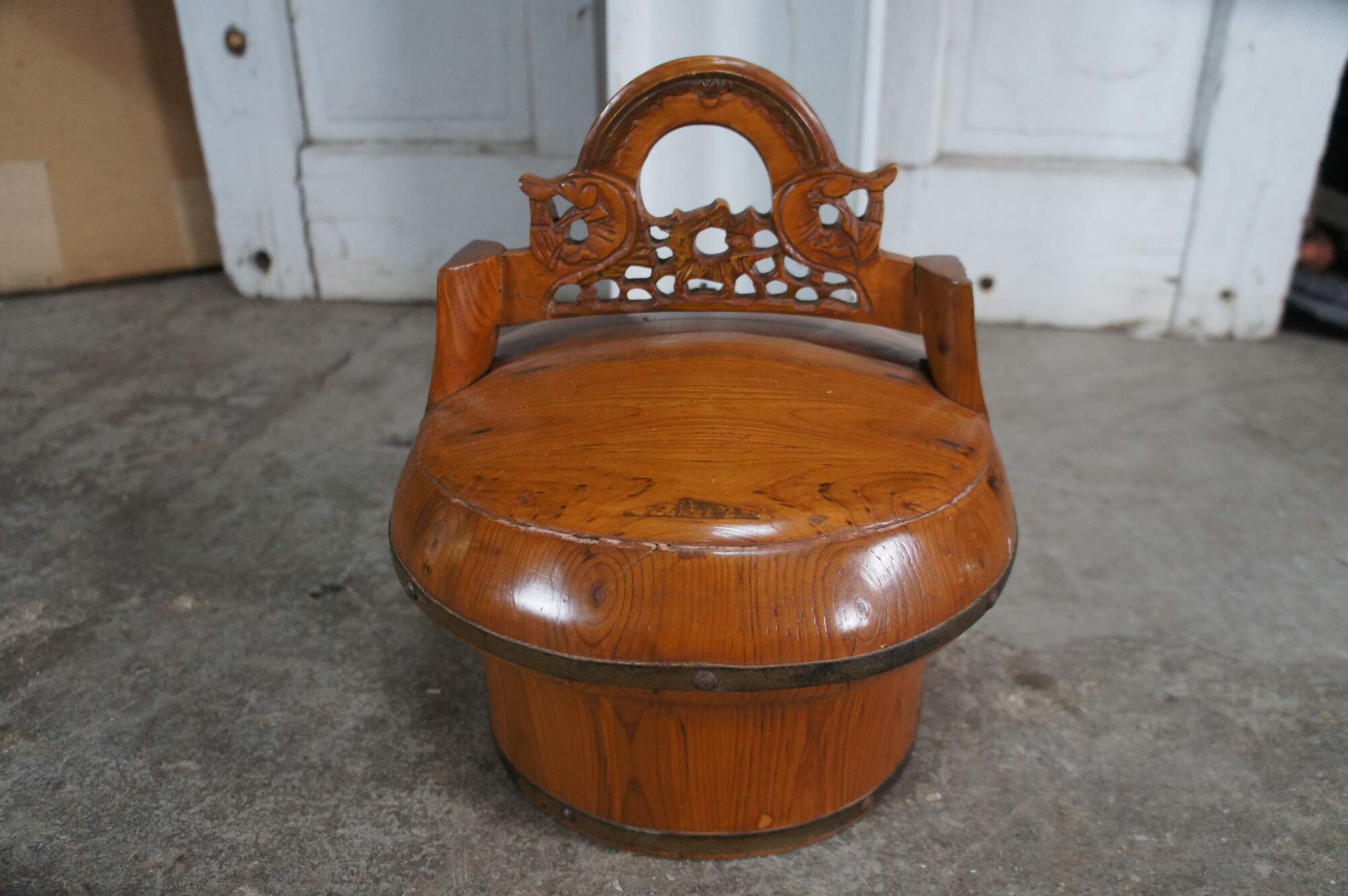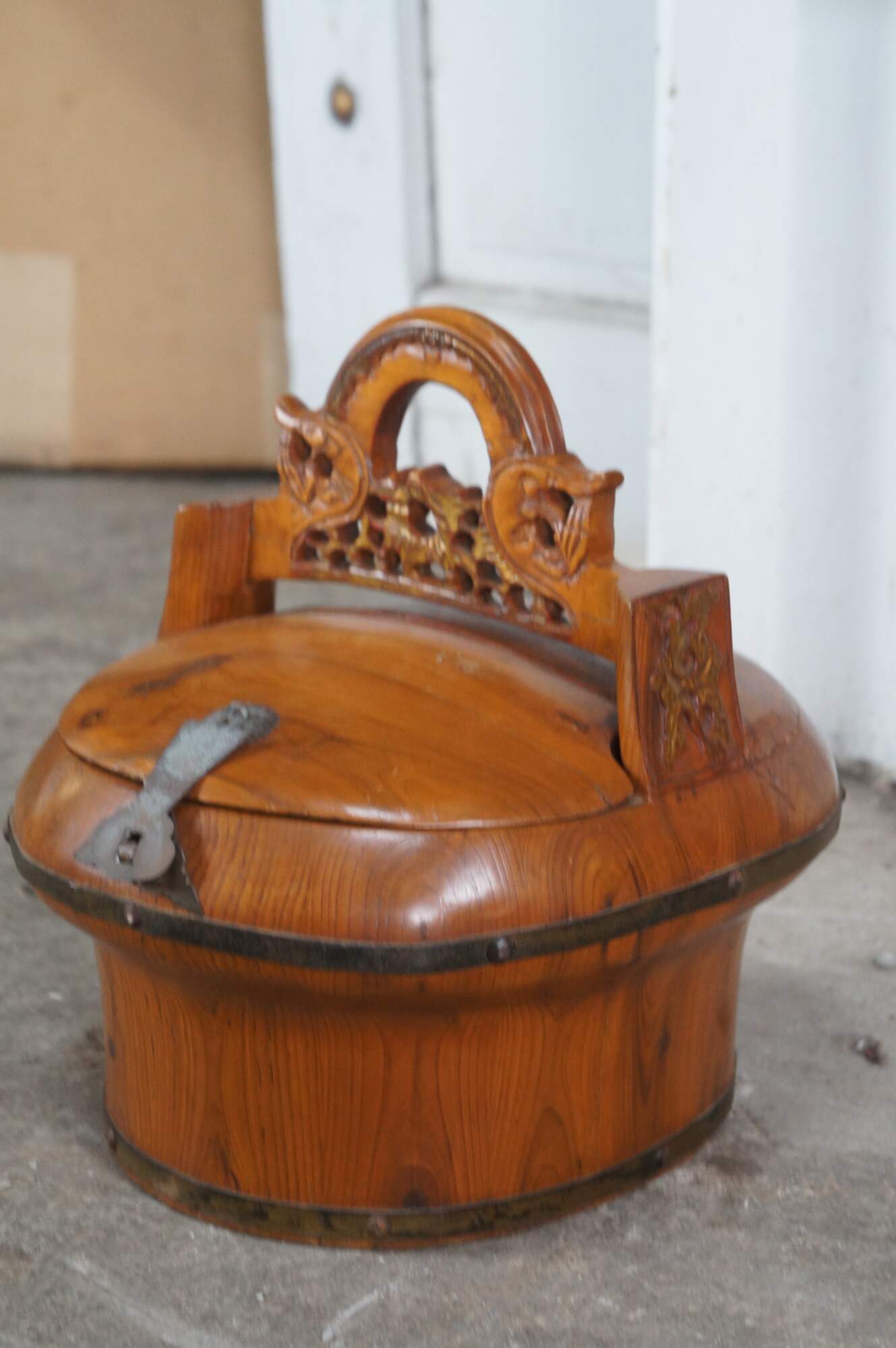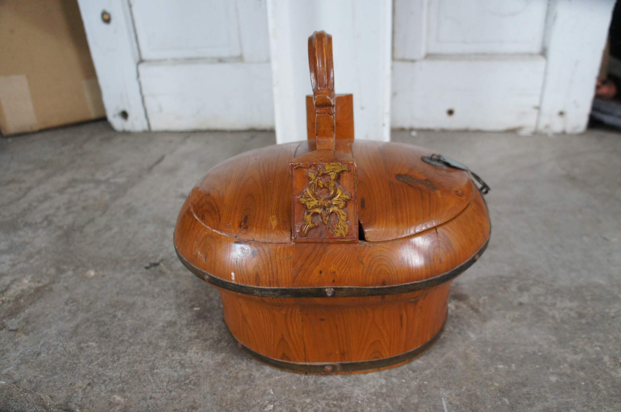 Antique Chinese Qing Dynasty Elm Carved Tea Caddy Holder Wedding Food Basket