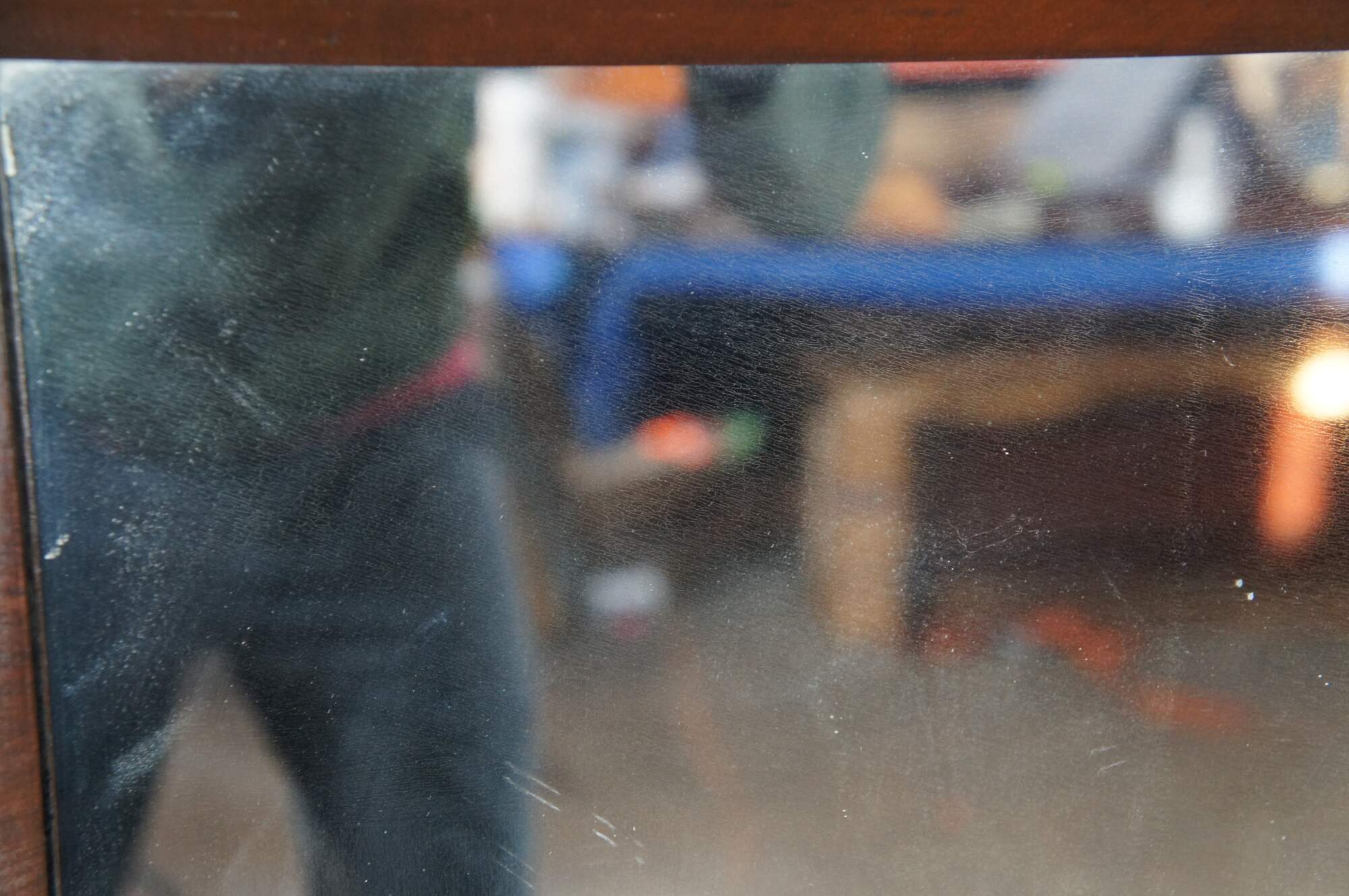 Wear and distressing from age and use, veneer loss, edge wear, hazing / streaking to mirror.