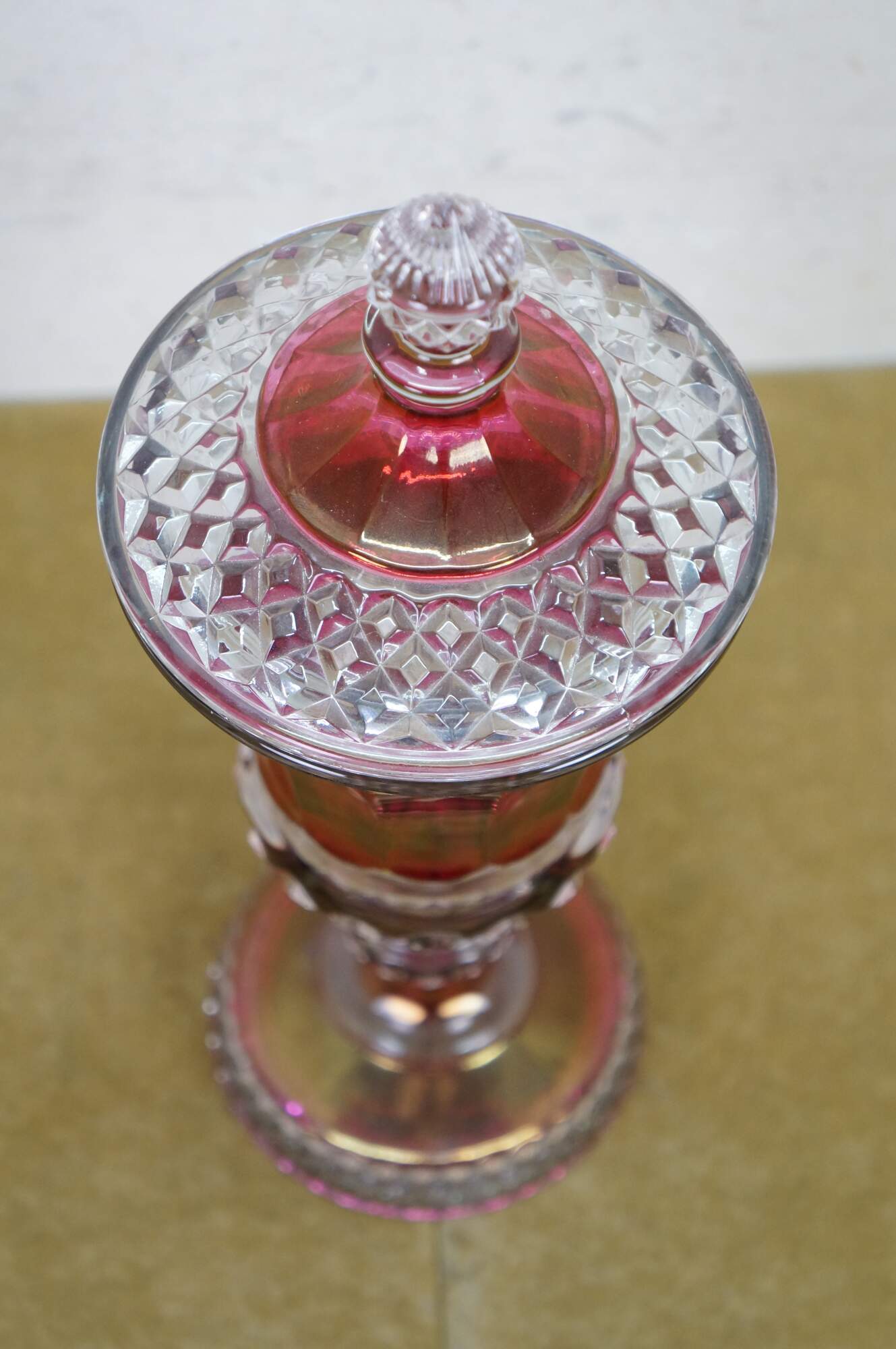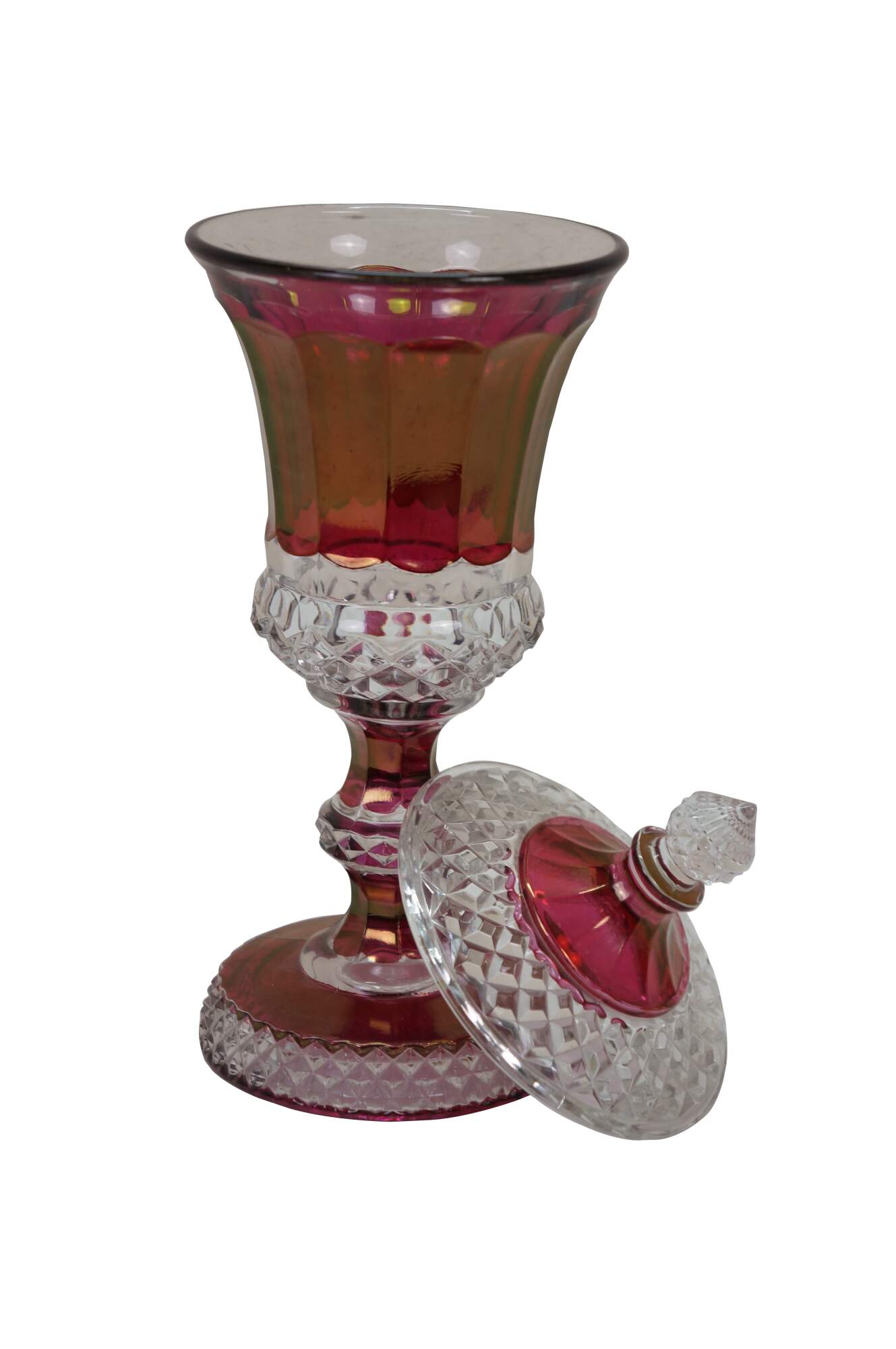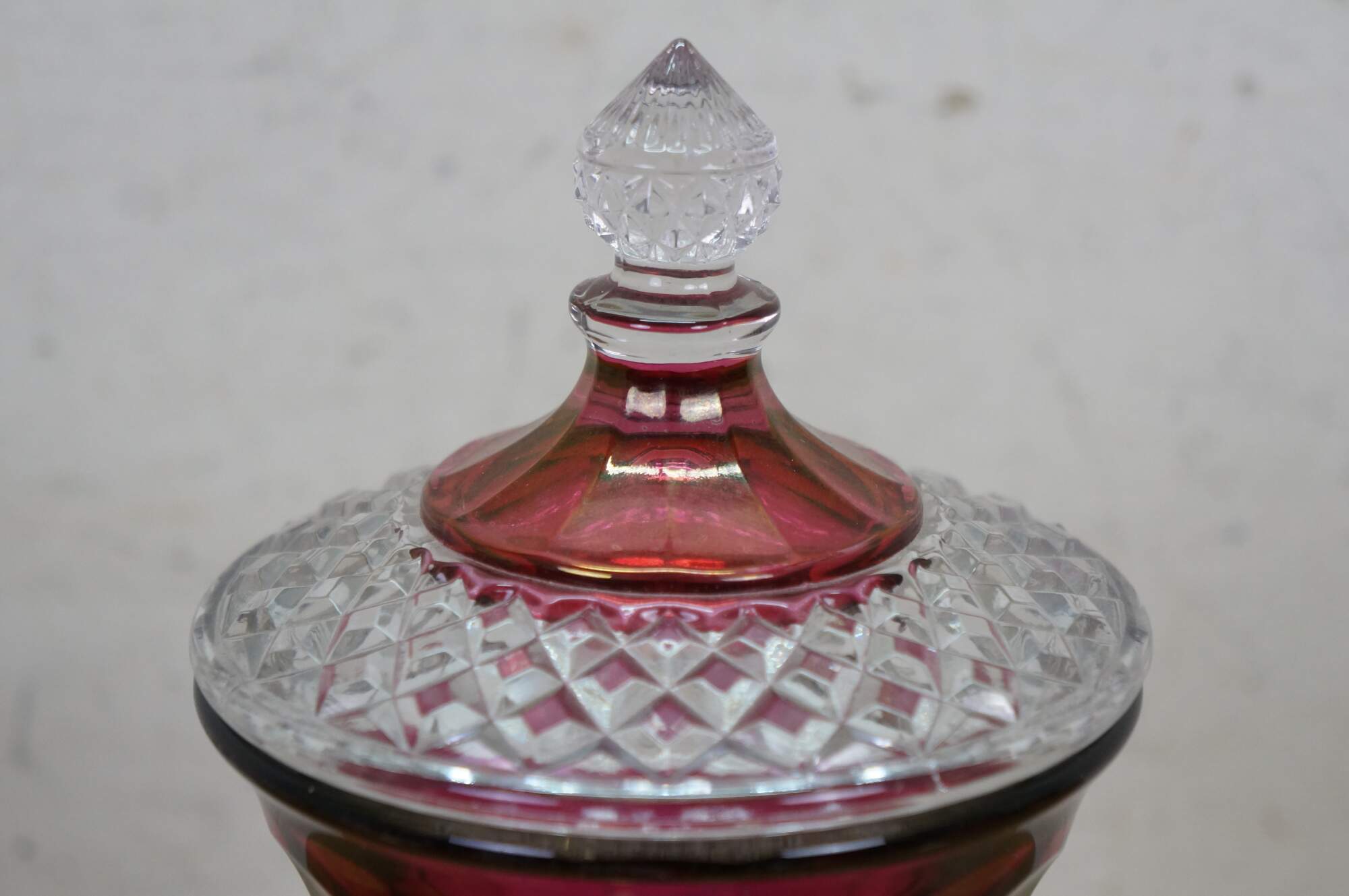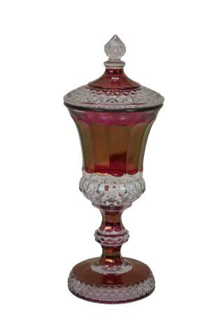 Westmoreland Cranberry Ruby Red Cut to Clear Lidded Mantel Urn Jar Compote.