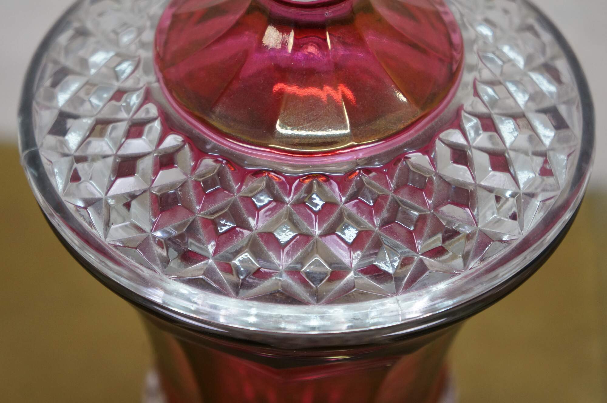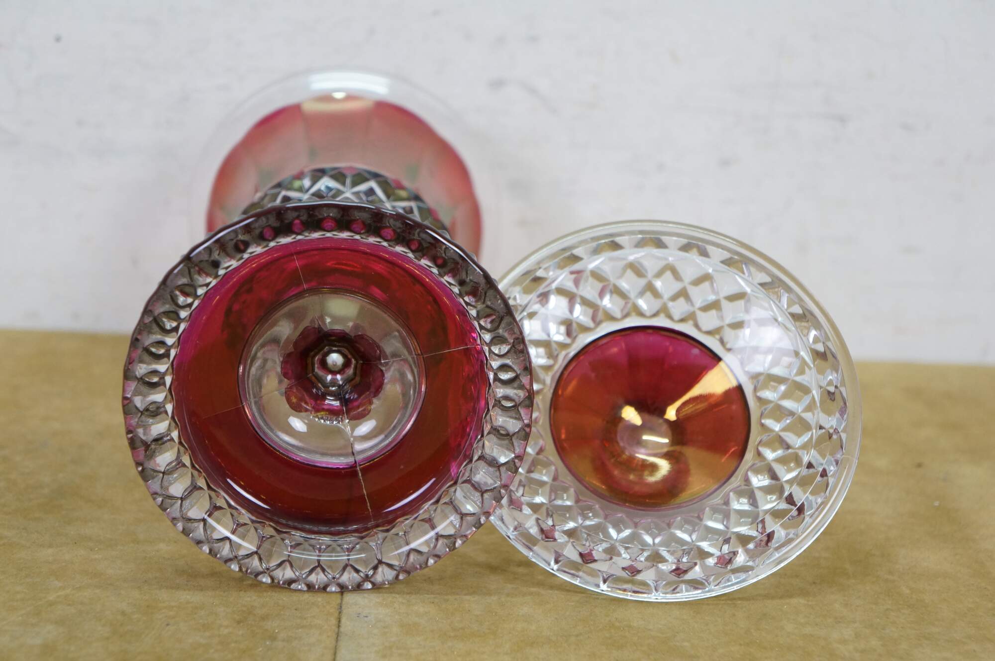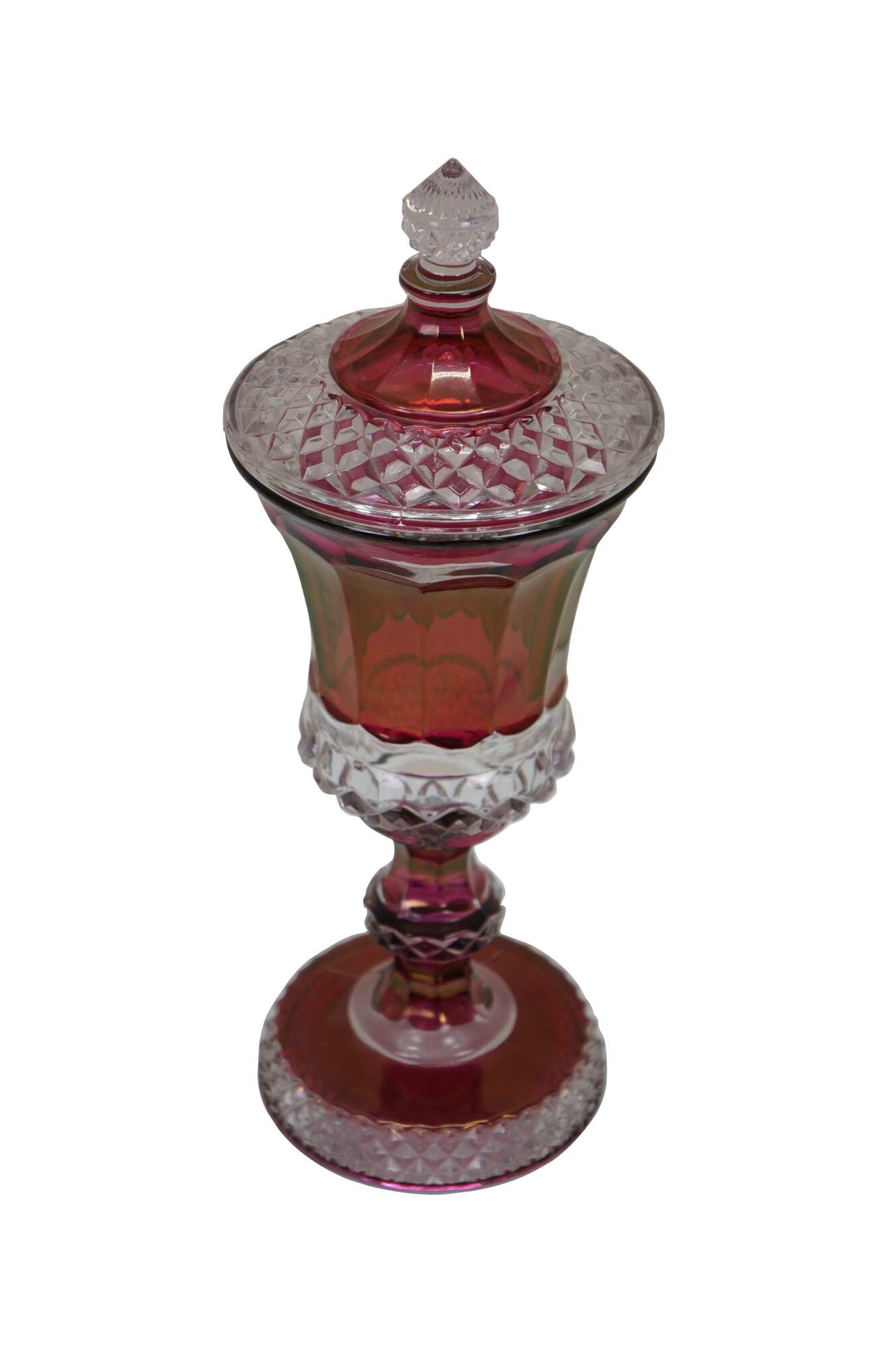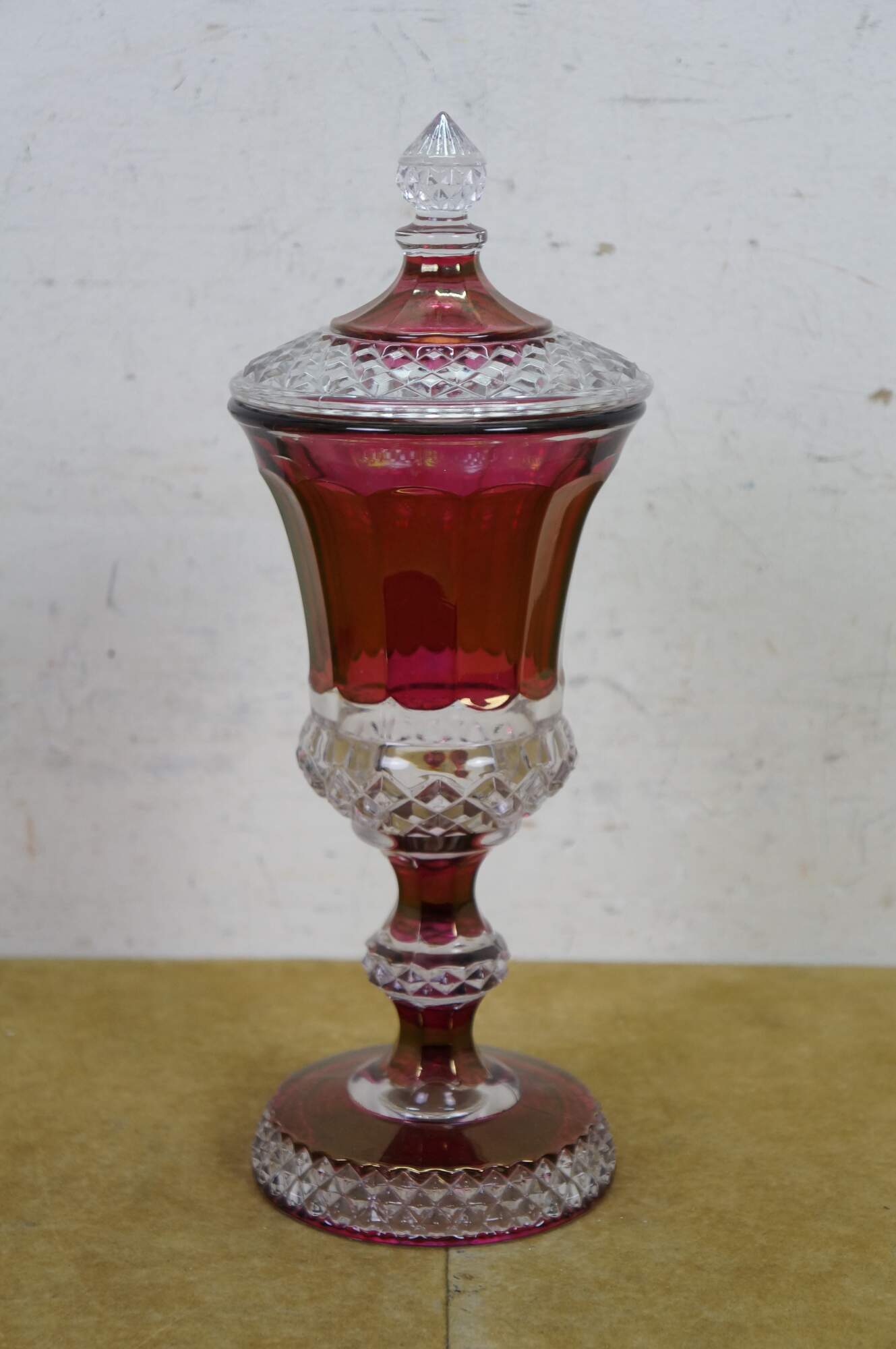 Westmoreland Cranberry Ruby Red Cut to Clear Lidded Mantel Urn Jar Compote.