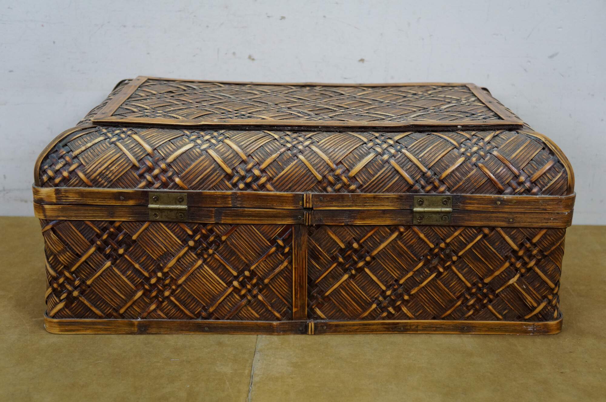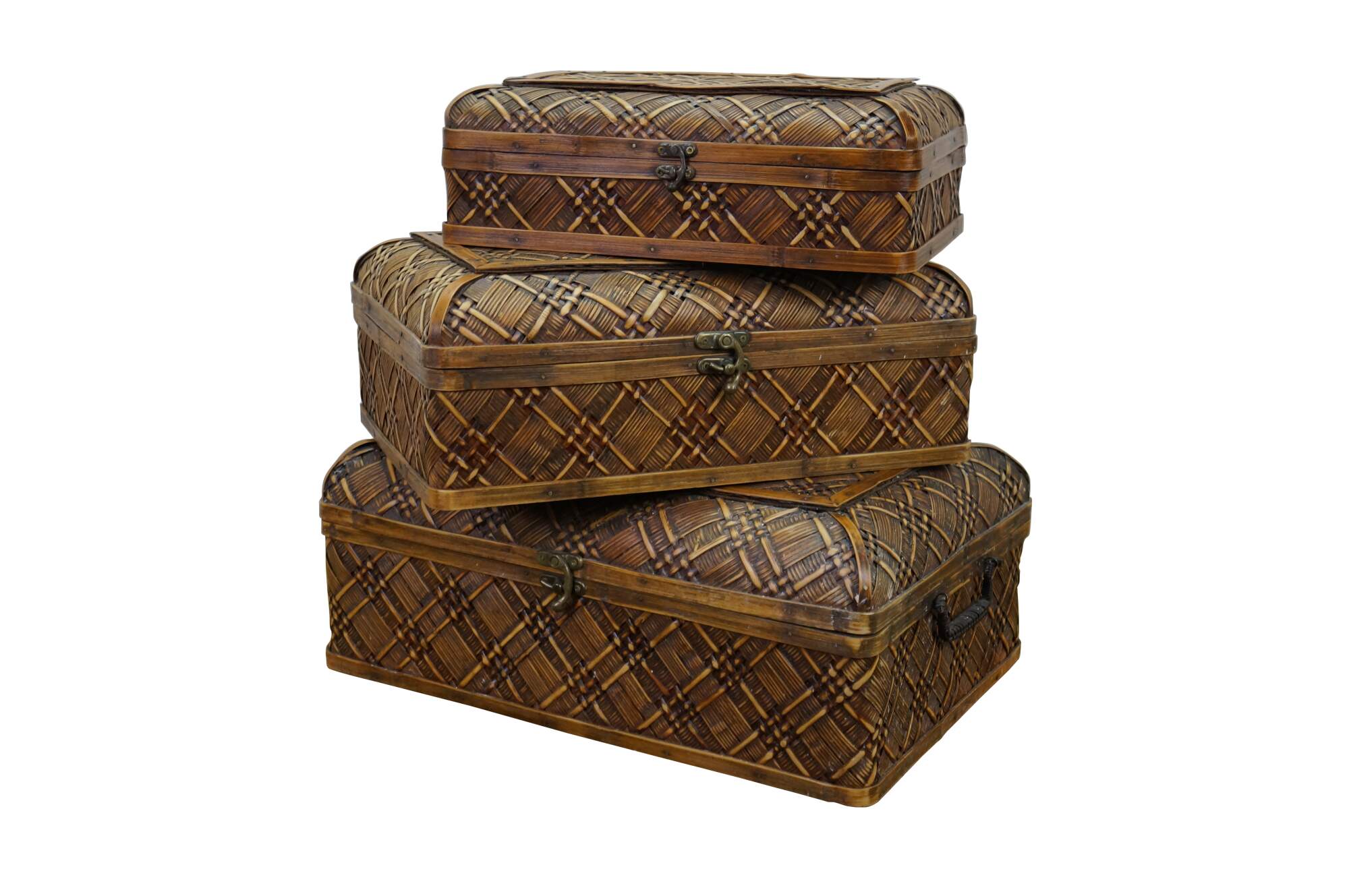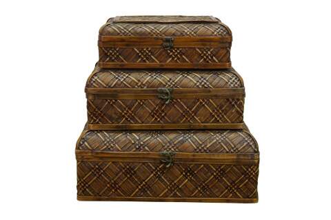 Set of three vintage Japanese woven wicker / rattan / koriyanagi nesting boxes.