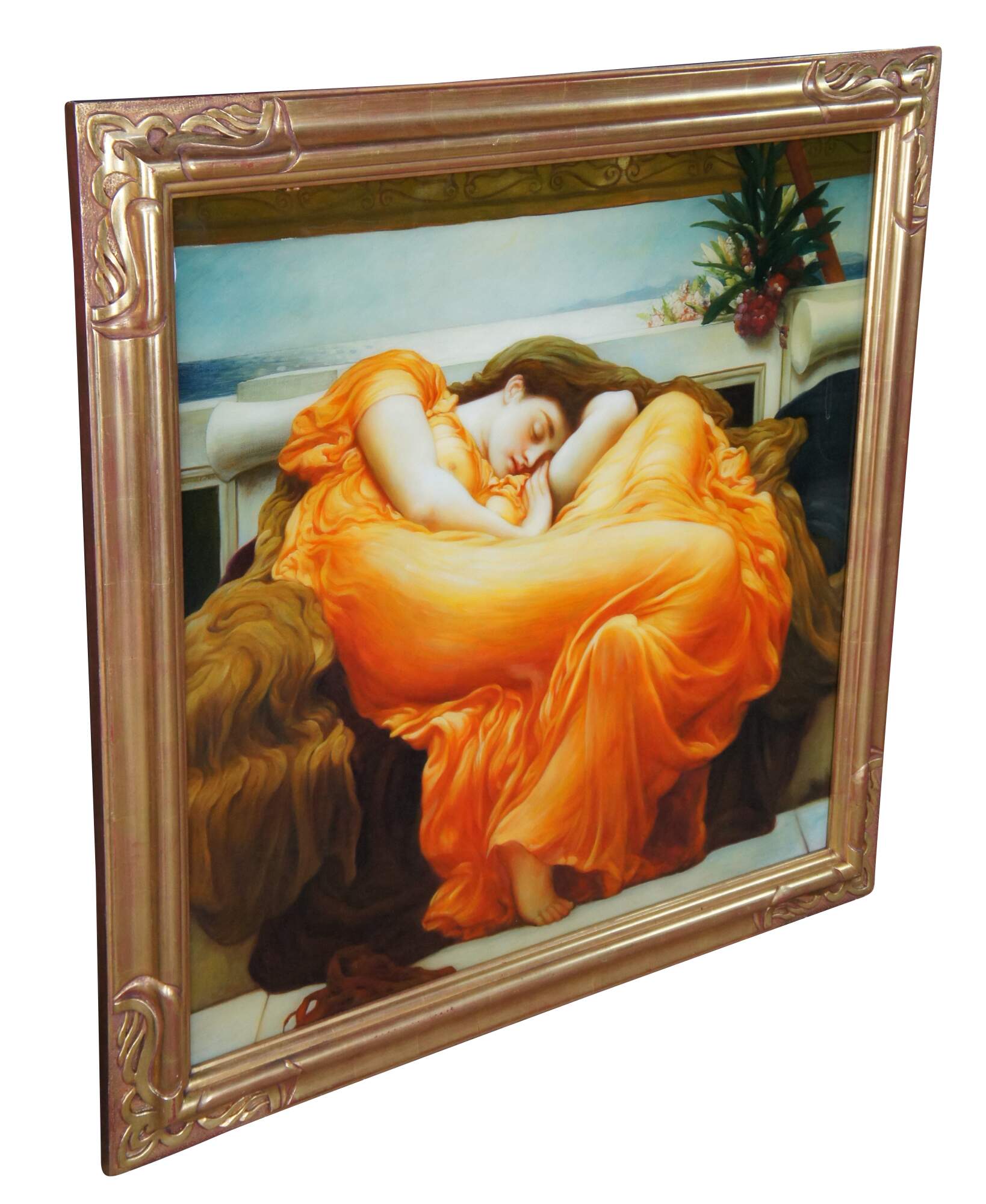 Vintage resin coated oil painting titled Flaming June, after Lord Frederic Leighton.