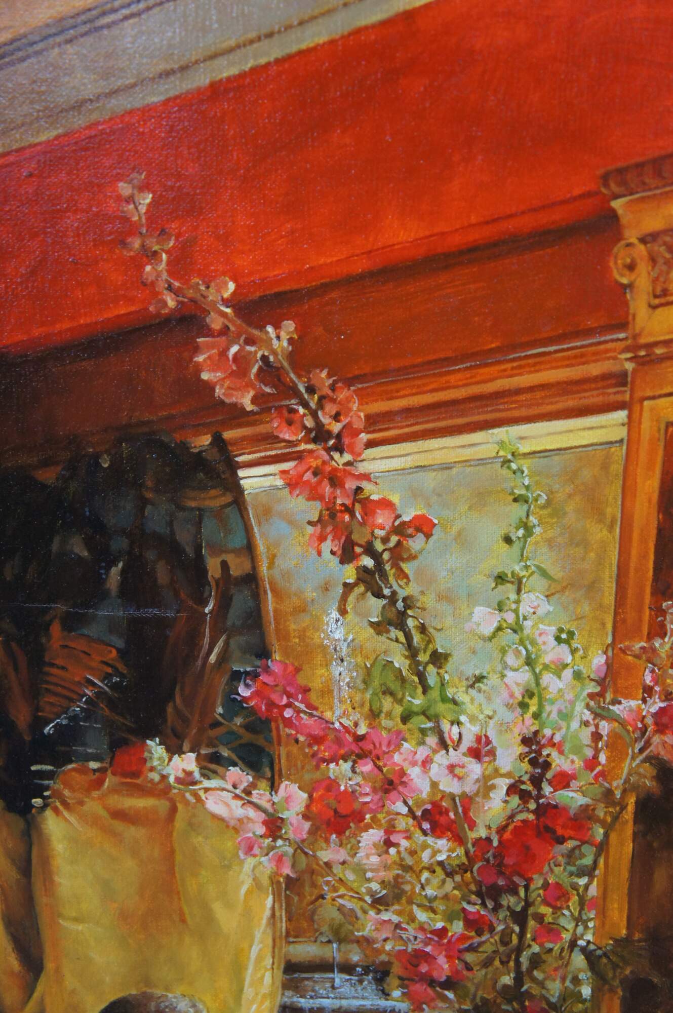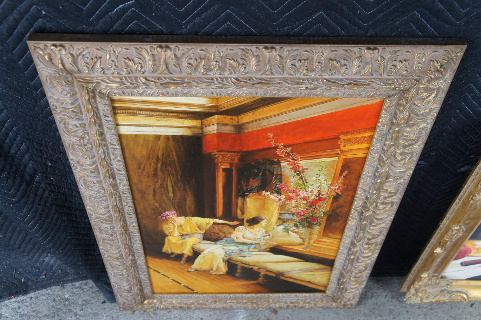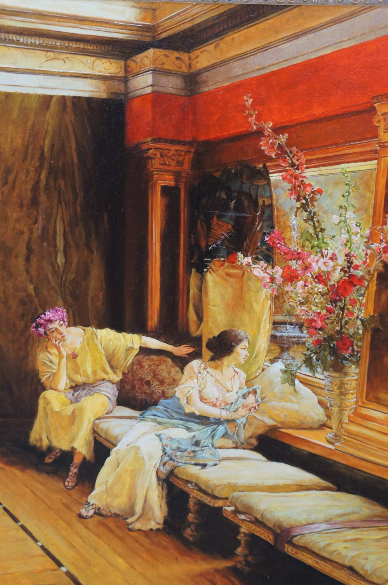 Vintage reproduction oil painting of Vain Courtship, a painting created in 1900 by the British-Dutch painter Sir Lawrence Alma-Tadema.