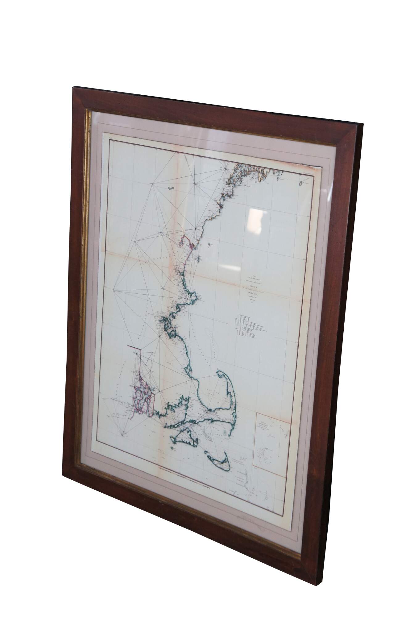 Vintage Soicher Marin navigational survey reproduction map of the eastern coast of the united states circa 1844-1854. It features Rhode Island, Massachusetts, New Hampshire, Buzzards Bay, Cape Cod, Nantucket Sound, Martha's Vineyard, etc.