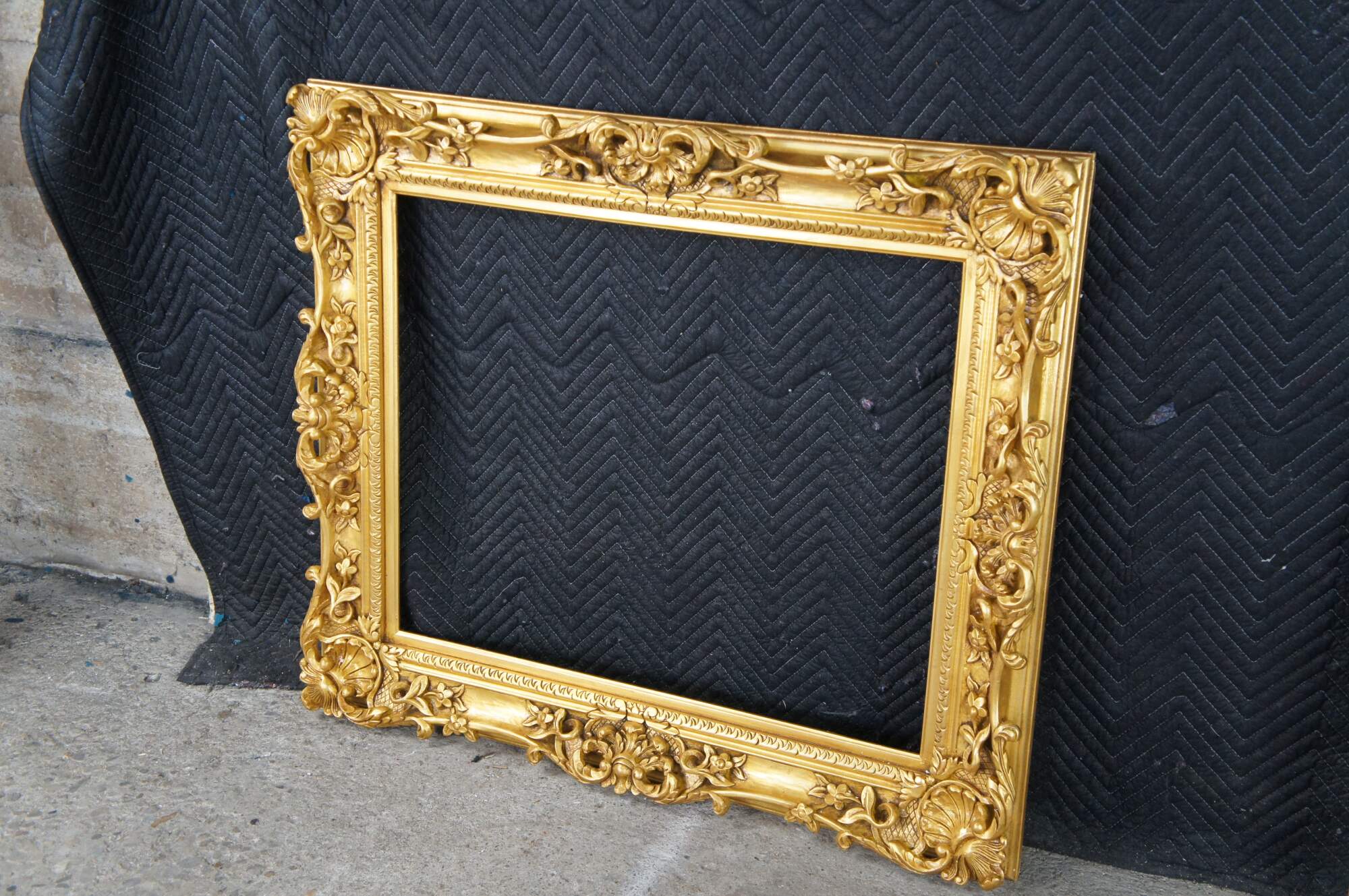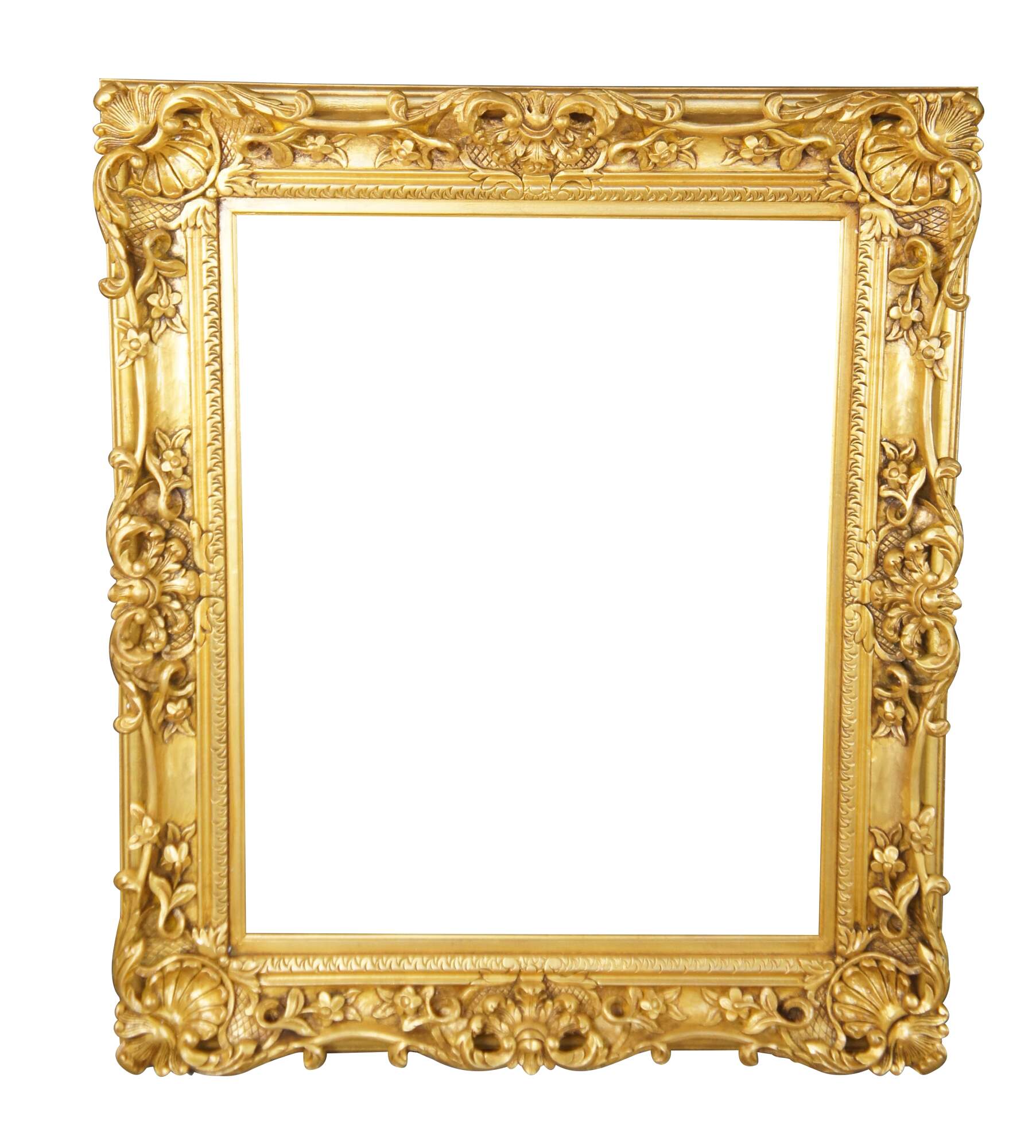 Large vintage ornate high relief gold gilded picture / oil painting / mirror frame featuring Baroque / Rococo styling with carved floral / acanthus and shell motifs. Fits 24 x 30.