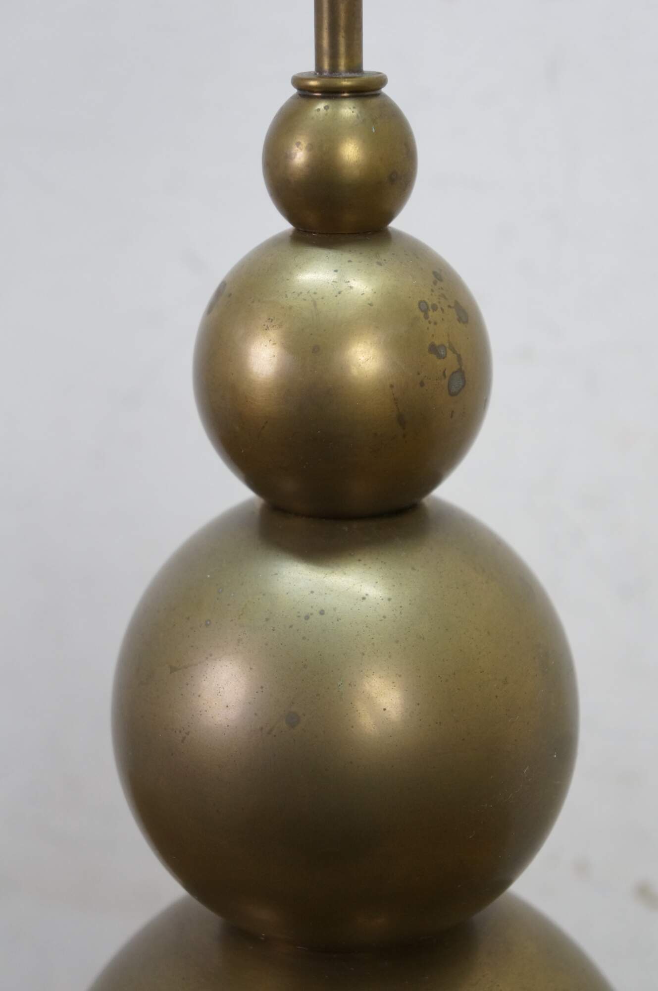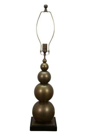 A very tall and elegant vintage Visual Comfort brass table lamp featuring a graduated / stacked ball / orb / sphere design.
