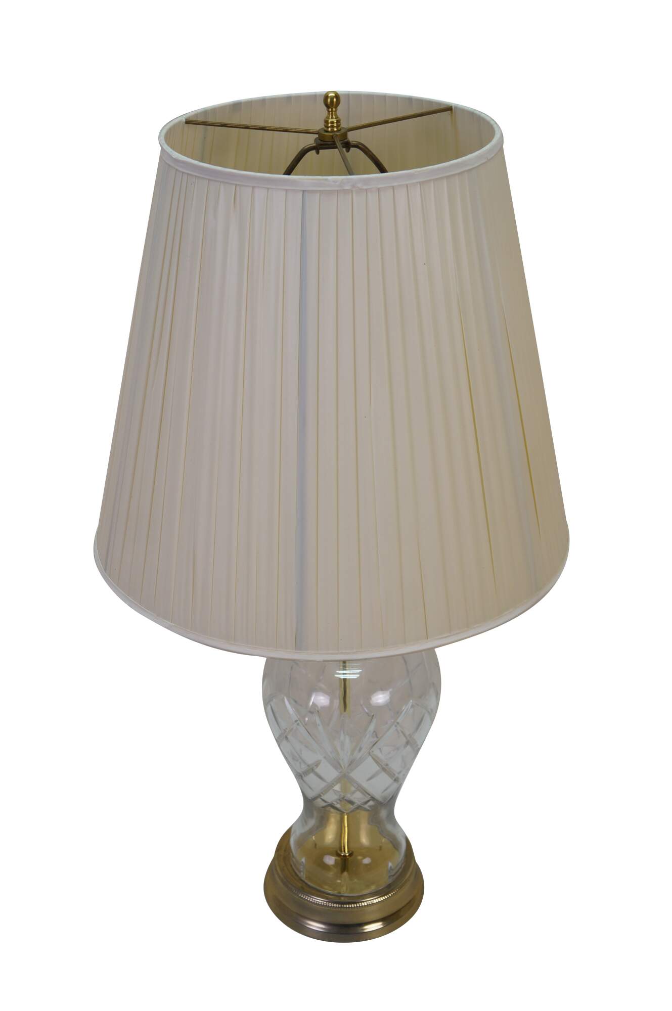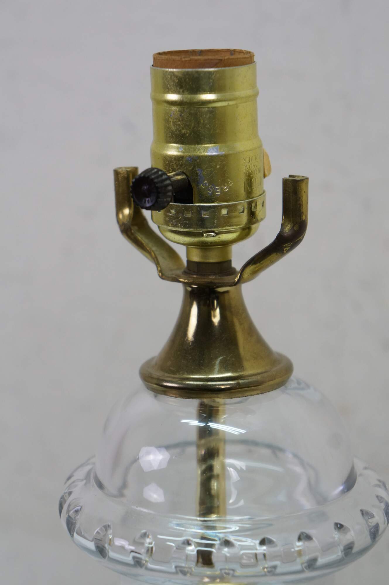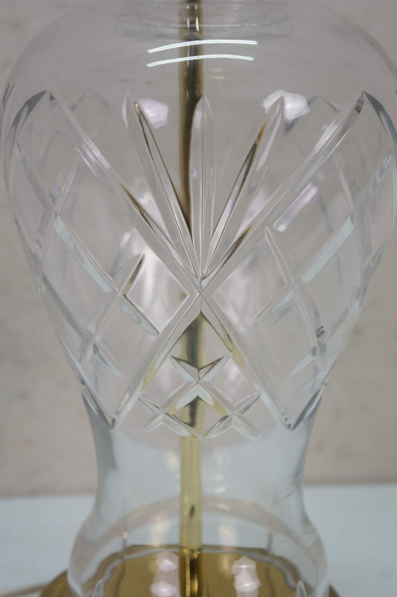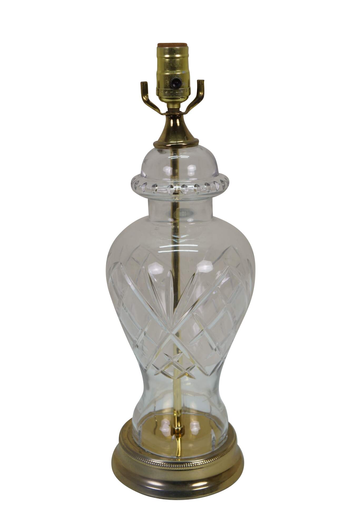 Vintage brass and cut crystal mantel vase urn table lamp.
