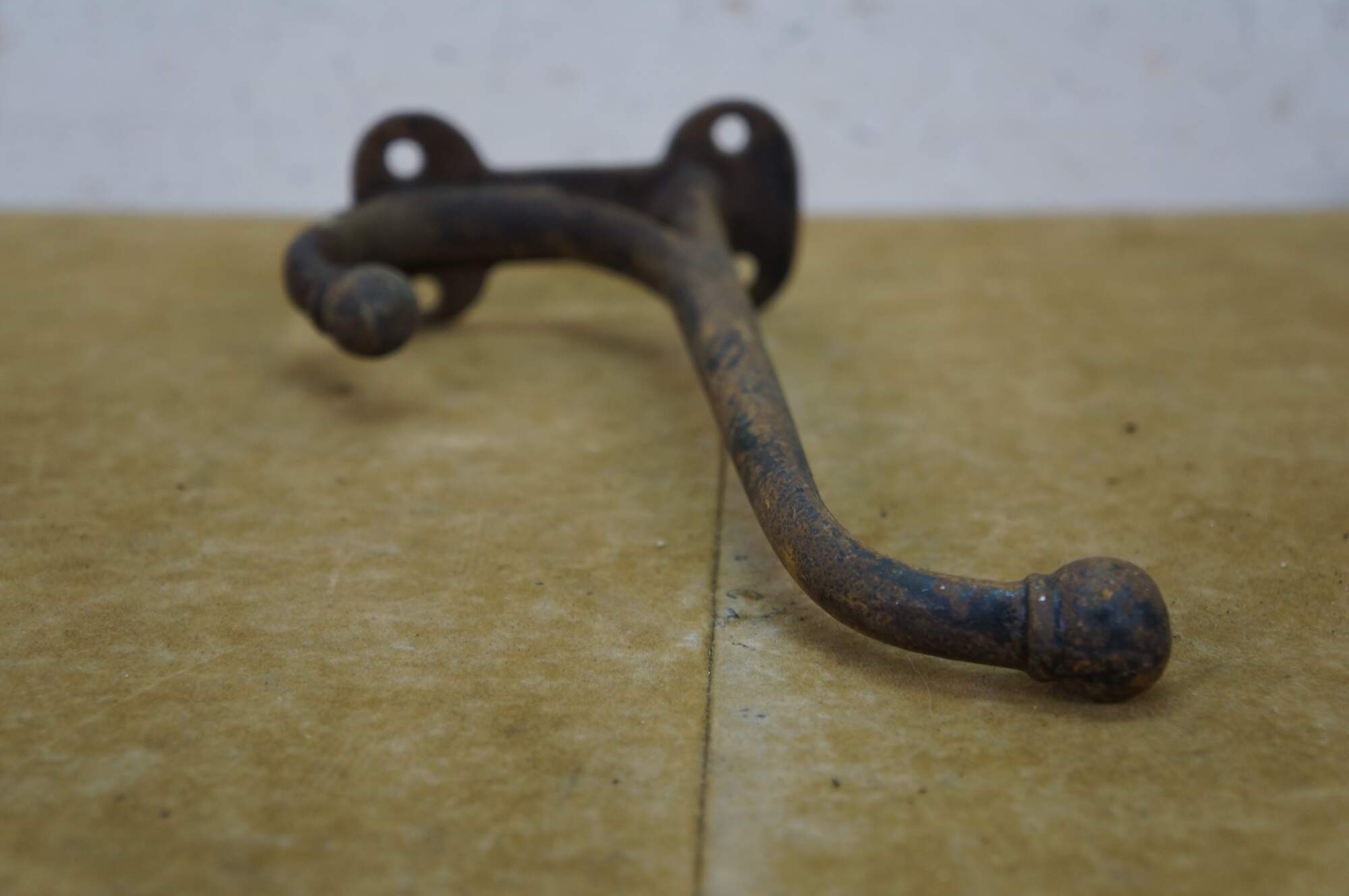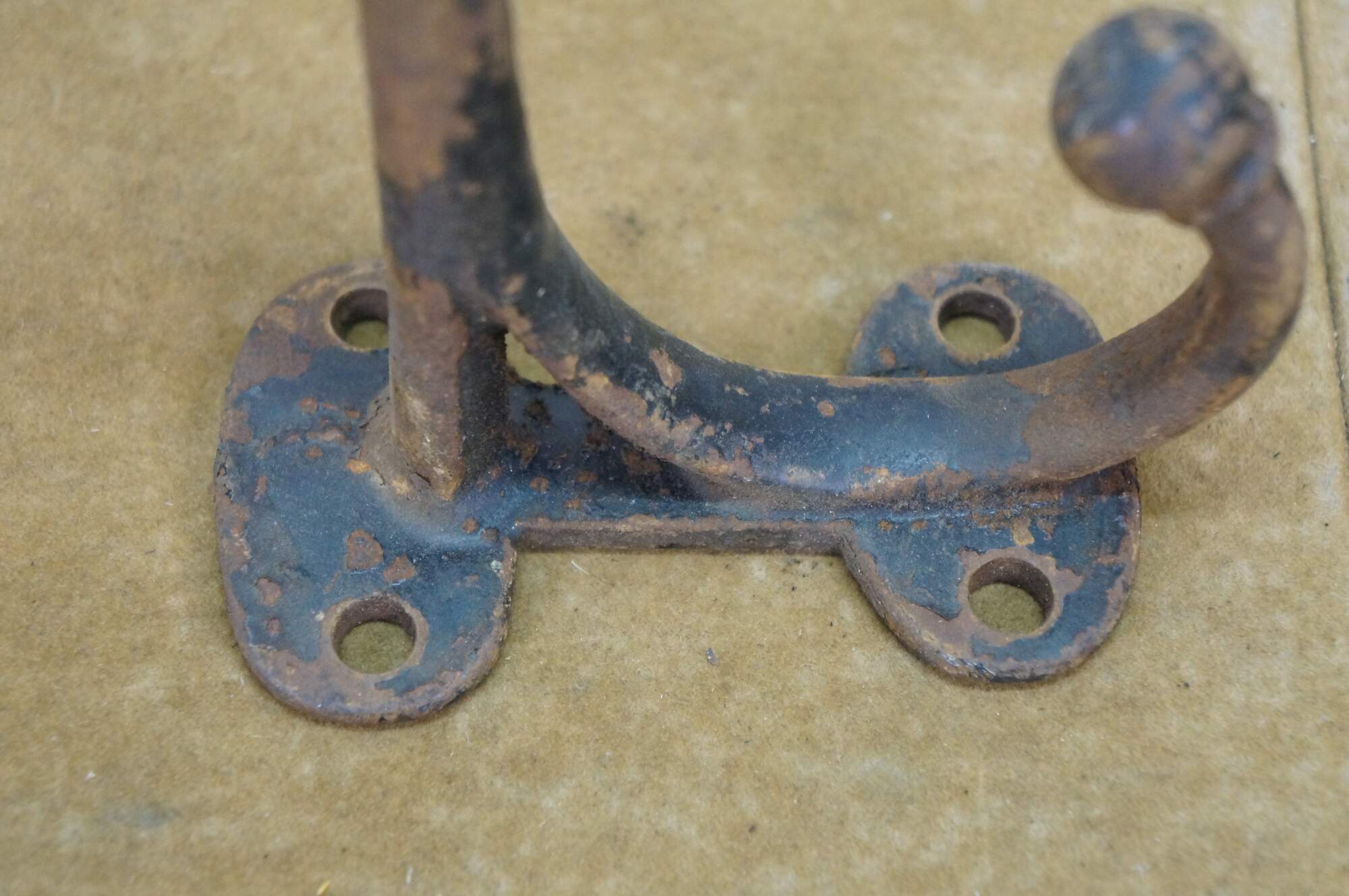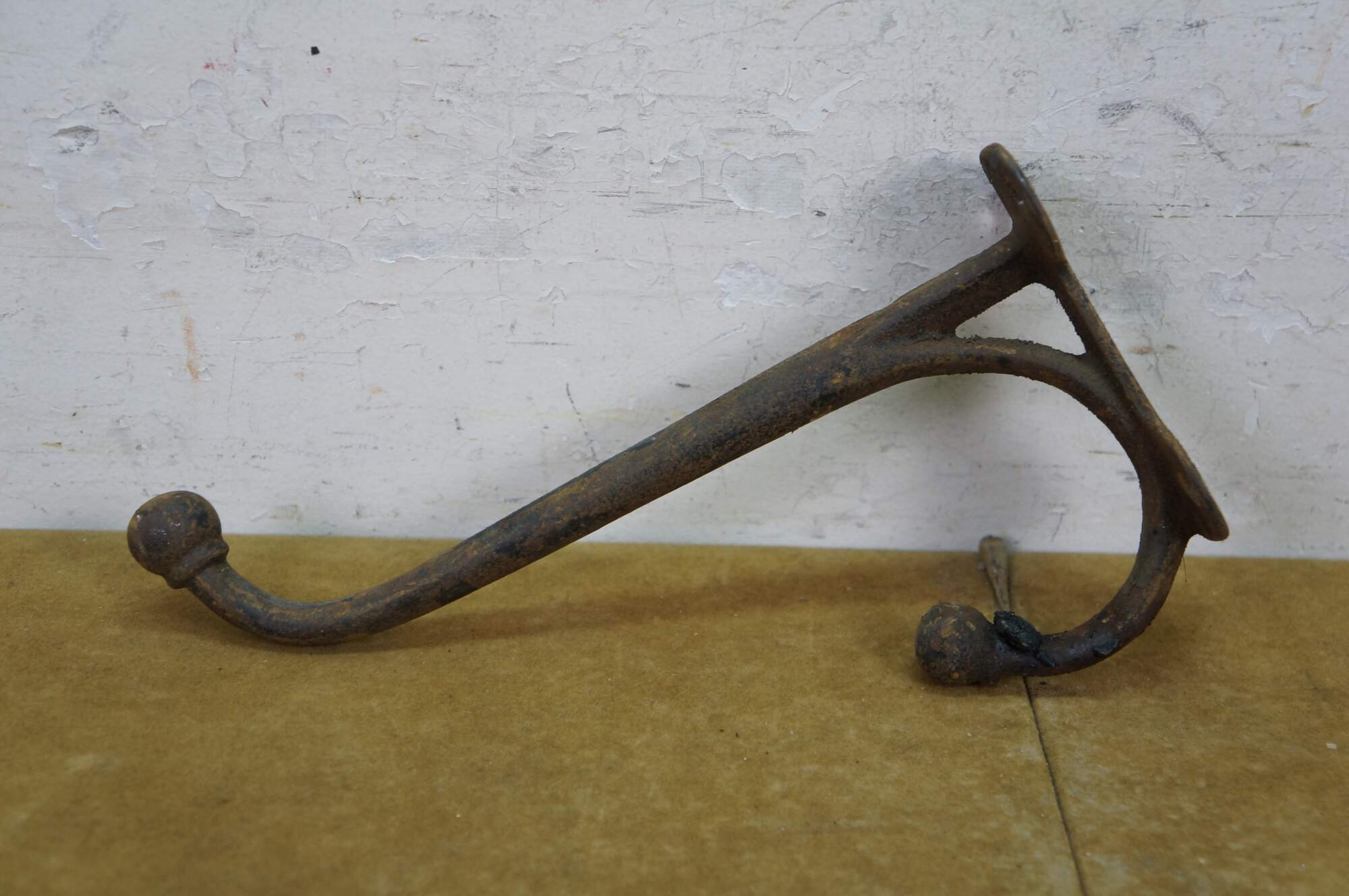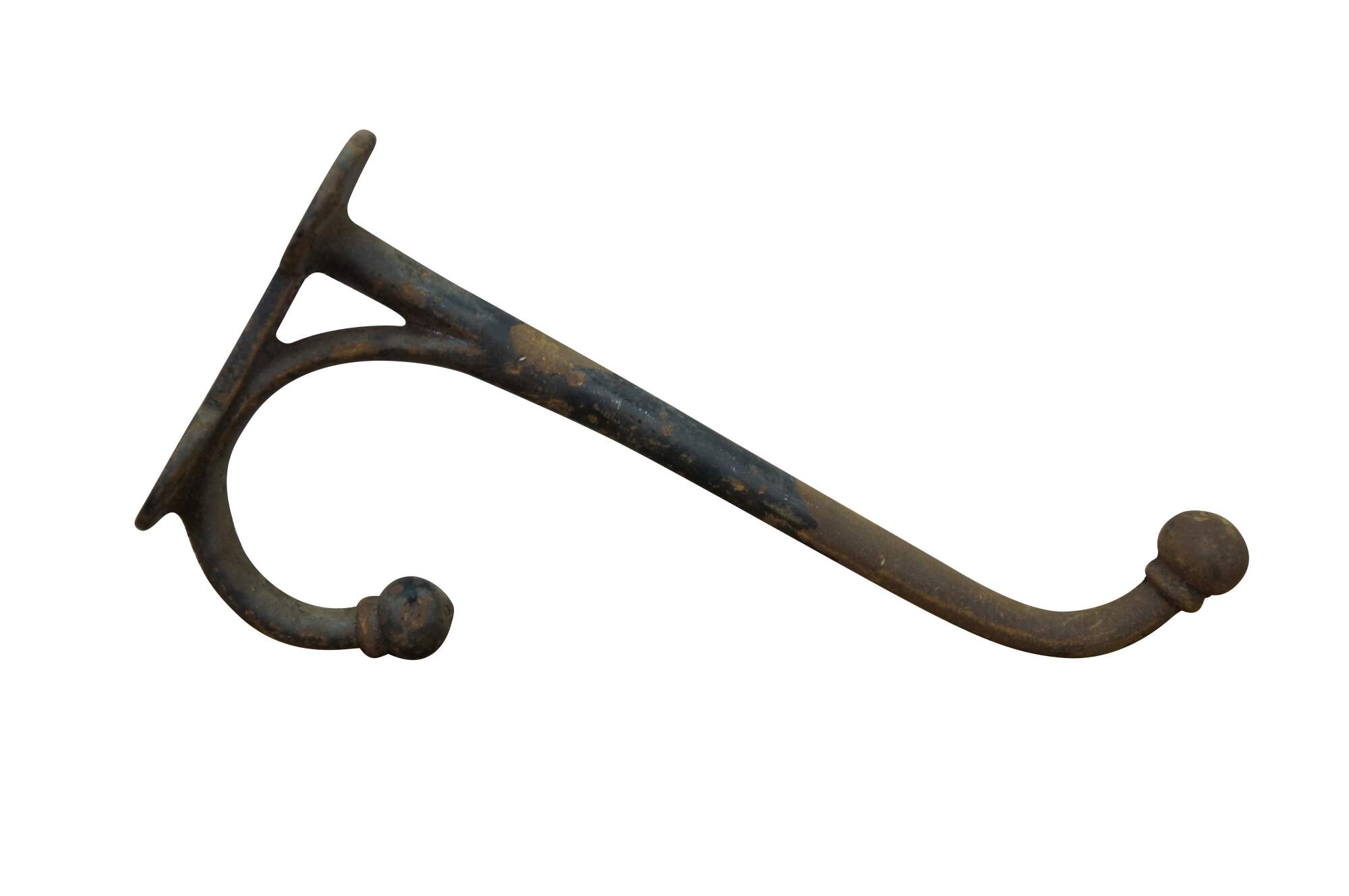 Six antique cast iron two prong barn harness / tack / coat / hat hooks, used in barns to hang saddles, bridles, or heavy coats.