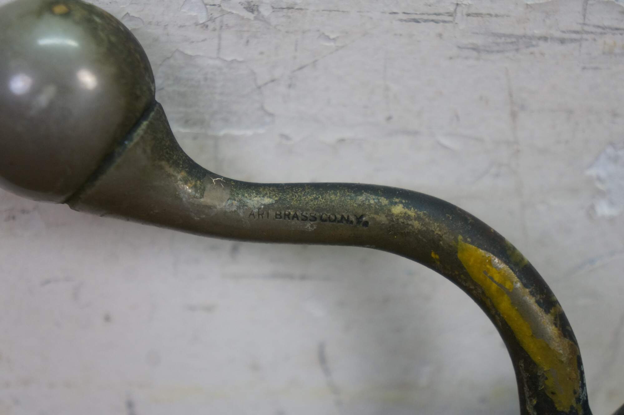 Antique Art Brass Co. NY bathroom double towel rack hardware.