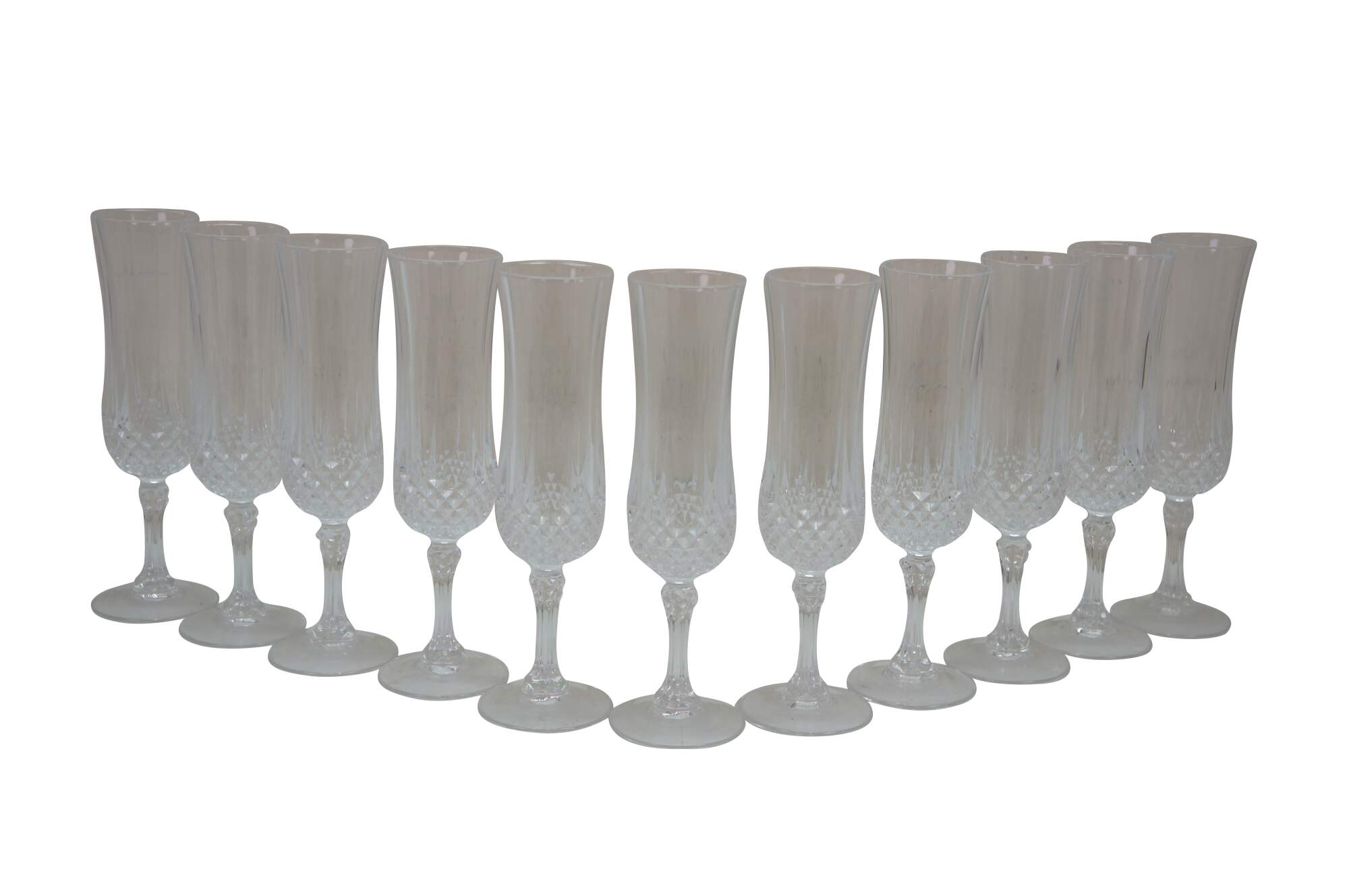 Eleven French Cristal d'Arques Longchamp champagne / wine toasting flutes 8