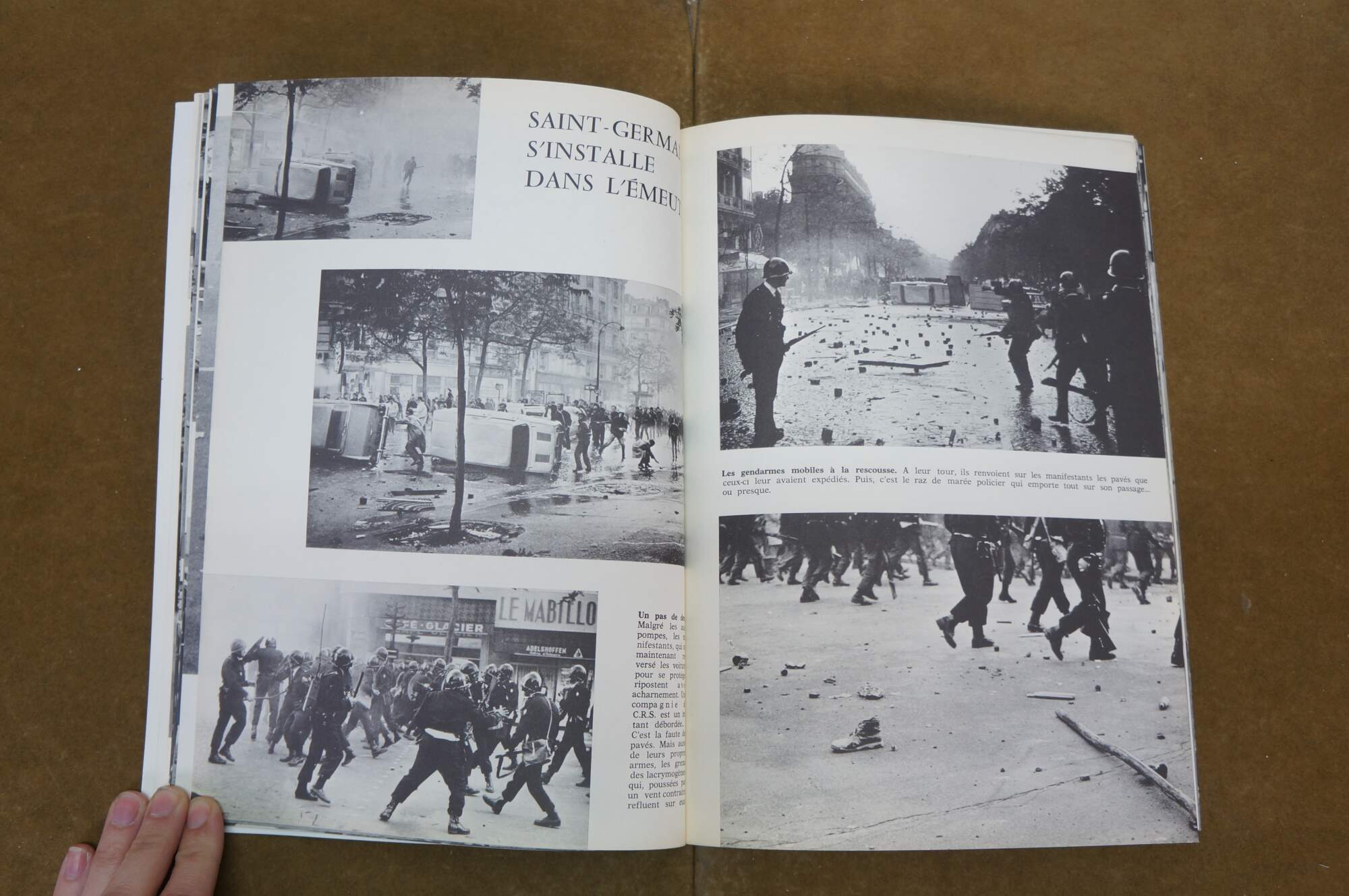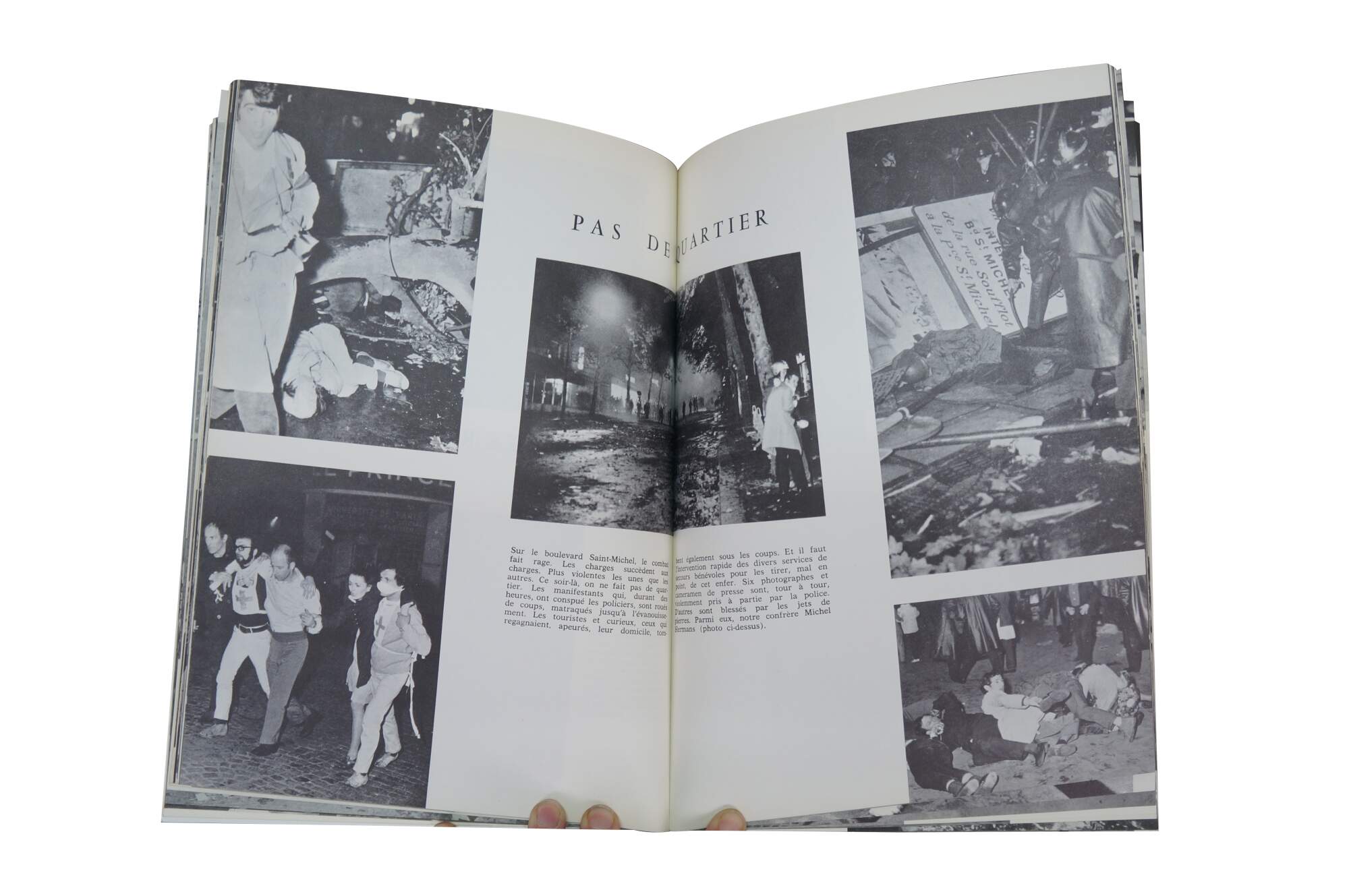 Mid century circa 1968 first edition photobook titled Paris a brûlé (Paris is Burning) published by Del Duca Paris-Jour, documenting the student revolts in Paris during May 1968.