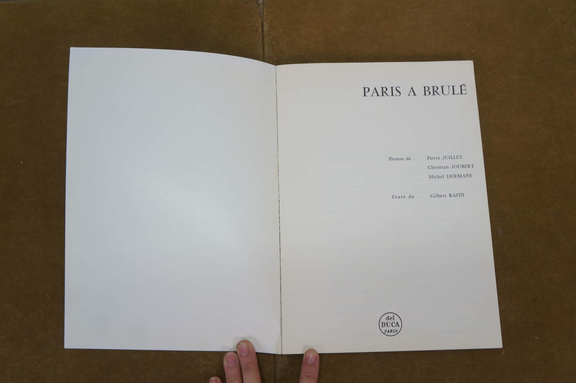 Paria a Brule - Photos by Pierre Juillet, Christian Joubert, Michel Hermans - Text by Gilbert Kahn. Del Duca, Paris. Copyright 1968 Editions Mondiales. Printed in France.