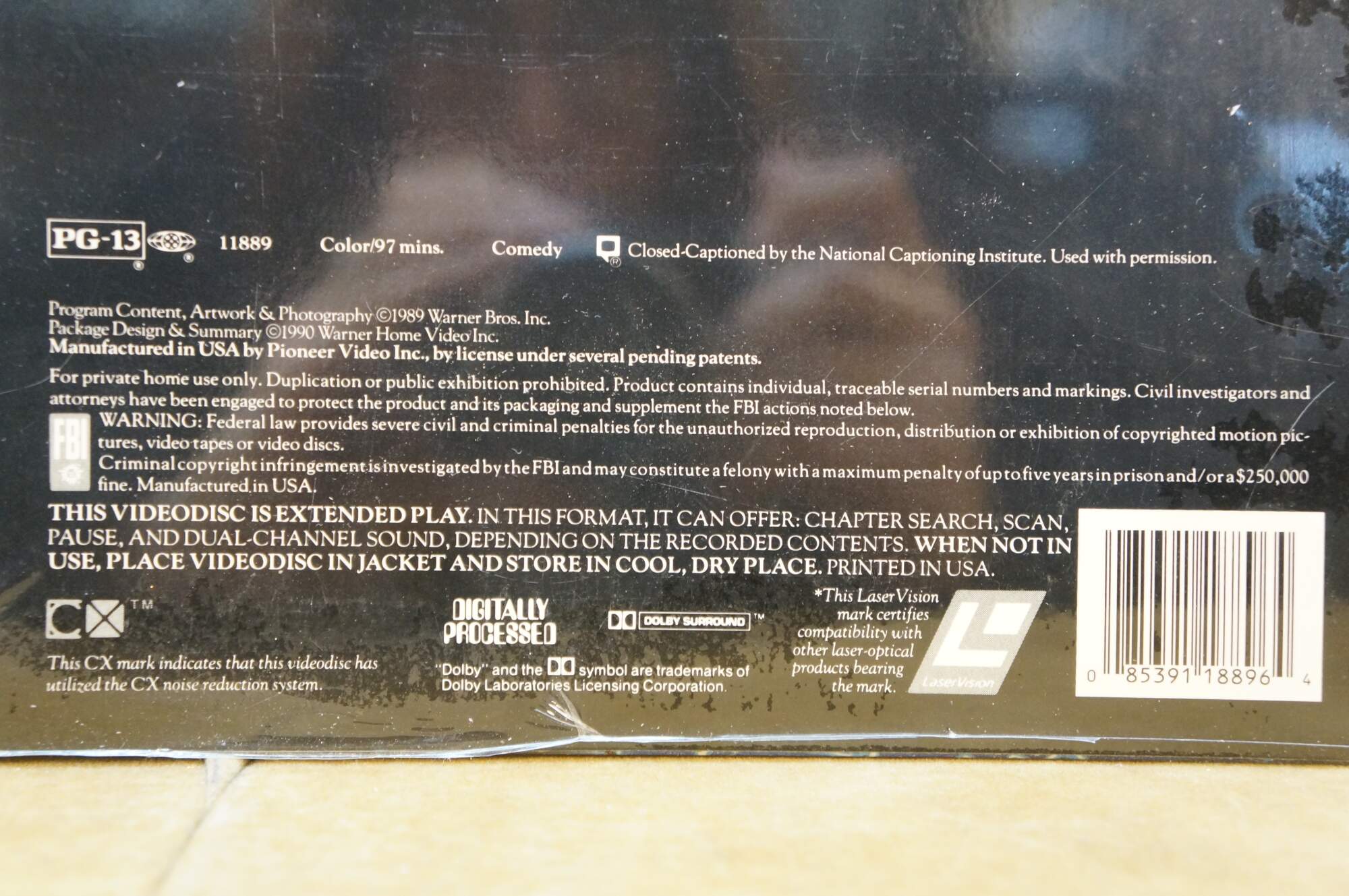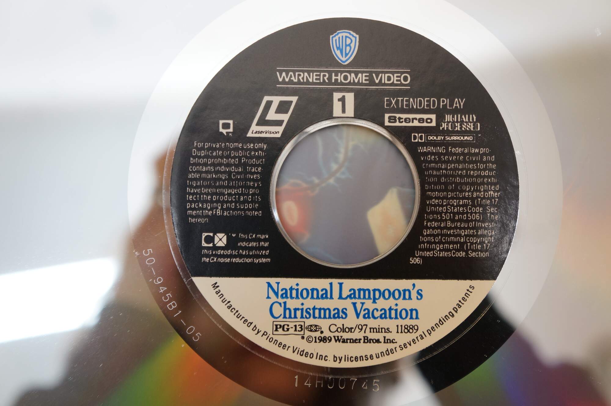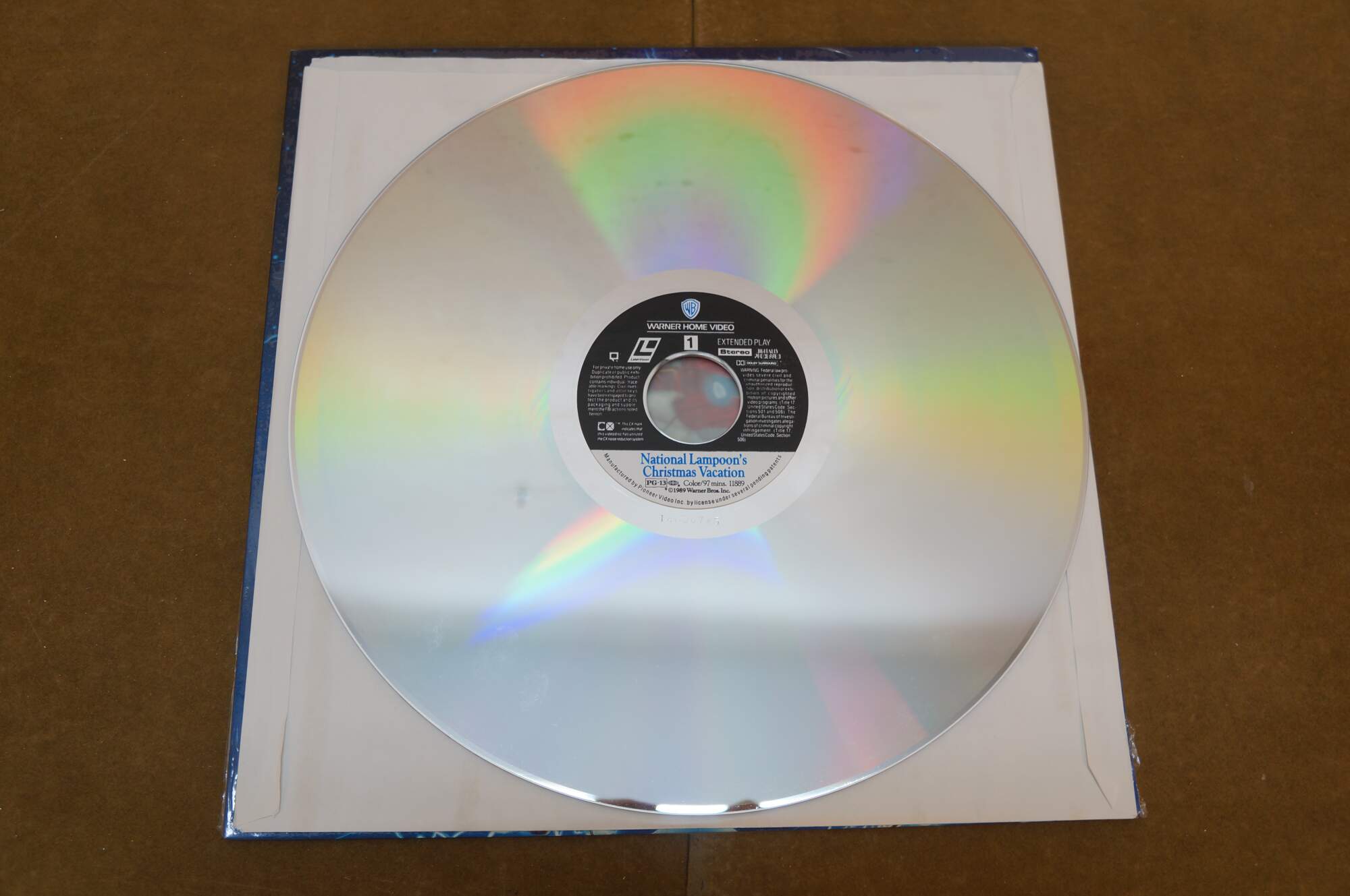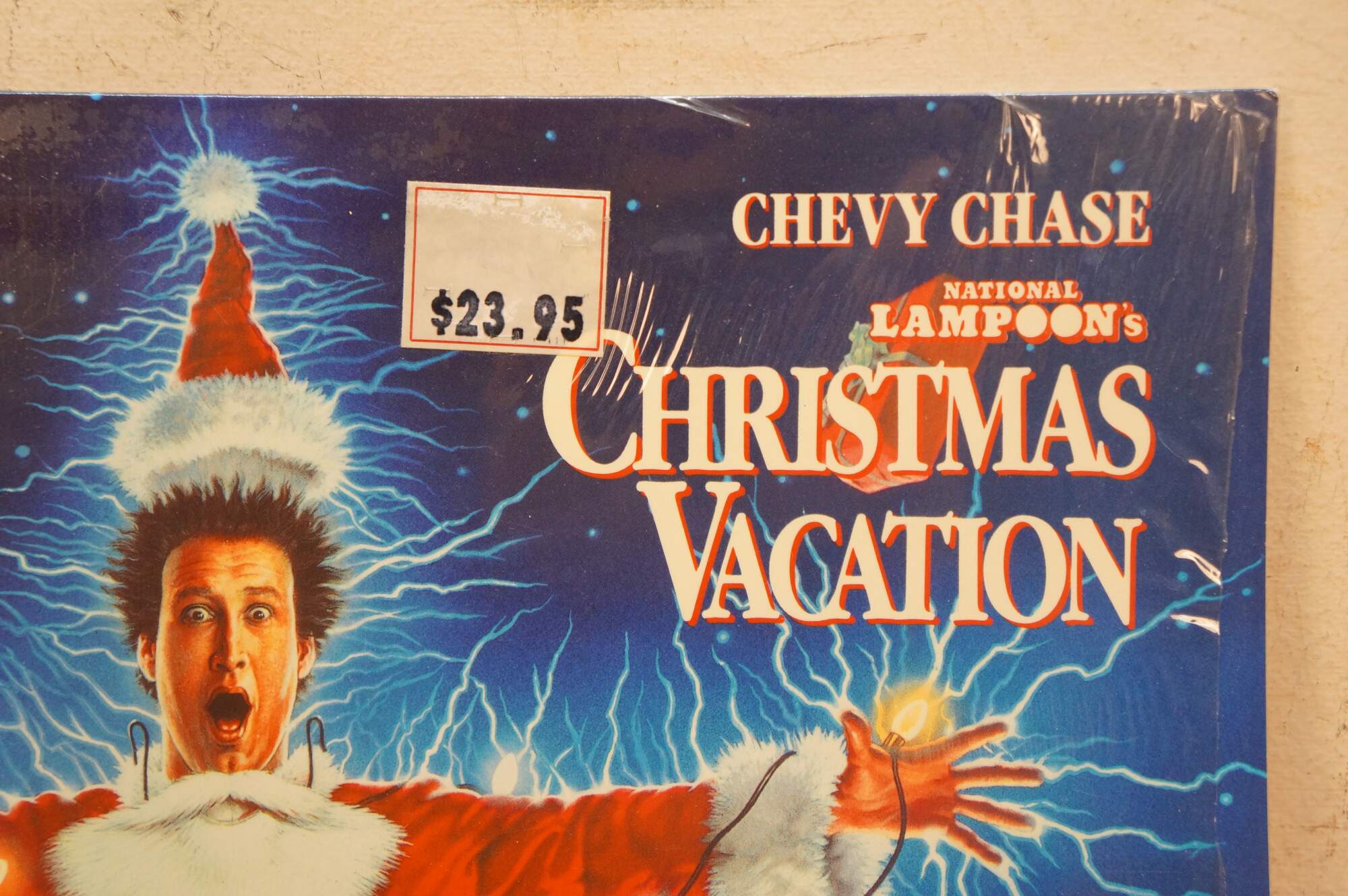 Vintage National Lampoon's Christmas Vacation Laserdisc. It features the iconic cover art of Clark Griswold (Chevy Chase) entangled in Christmas lights. Released circa 1989 by Warner Home Video.