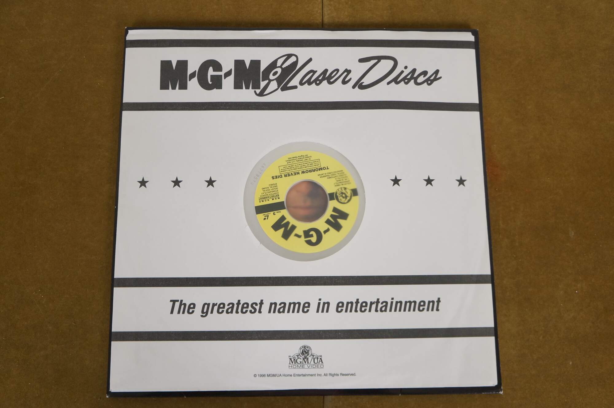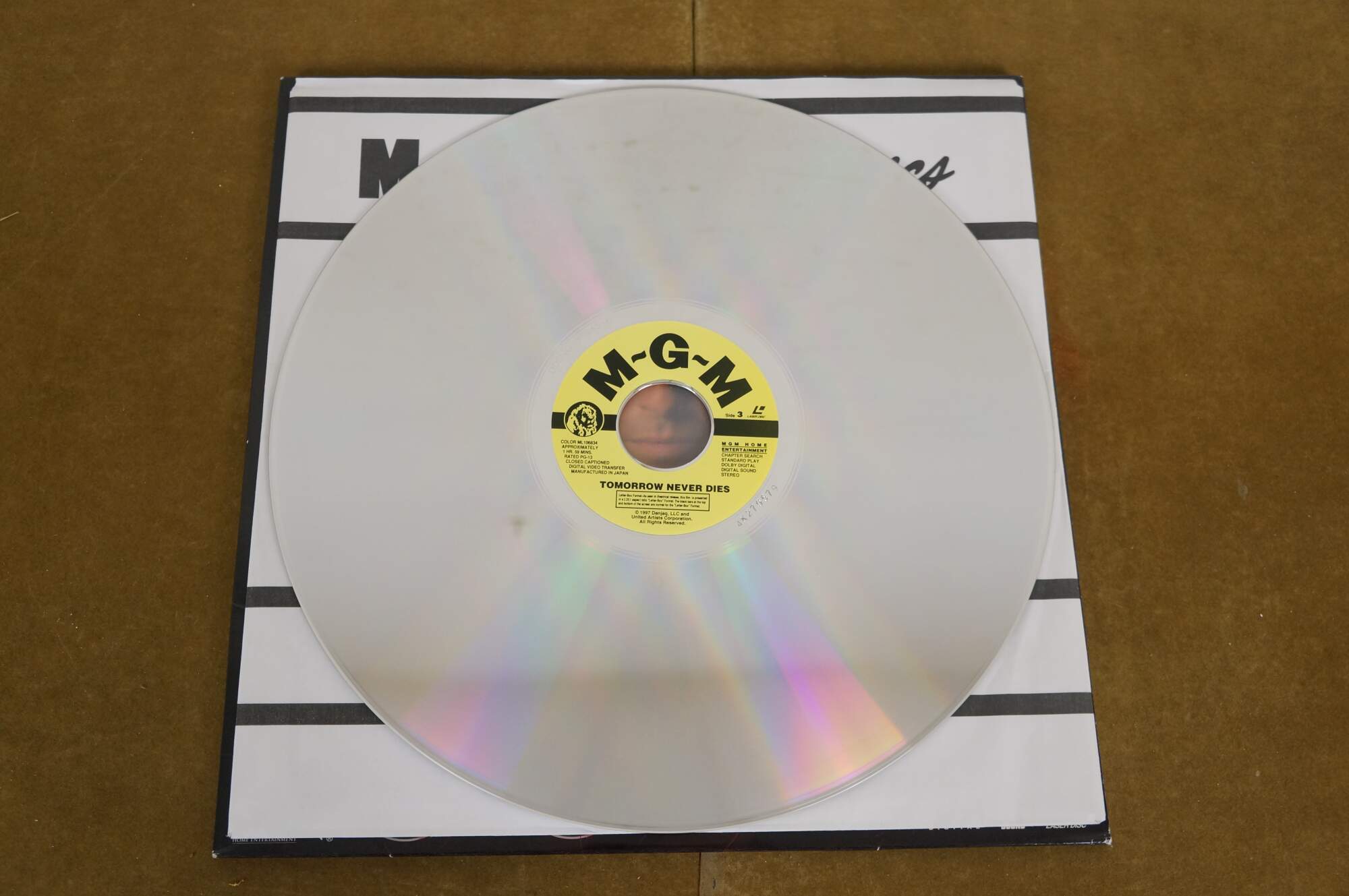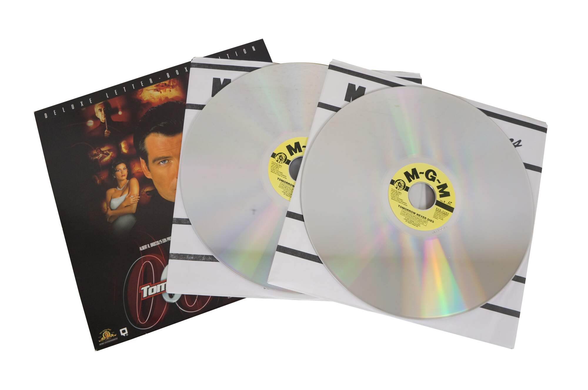 Vintage 1997 Deluxe Letterbox Edition LaserDisc for the James Bond 007 film Tomorrow Never Dies, starring Pierce Brosnan. MGM.