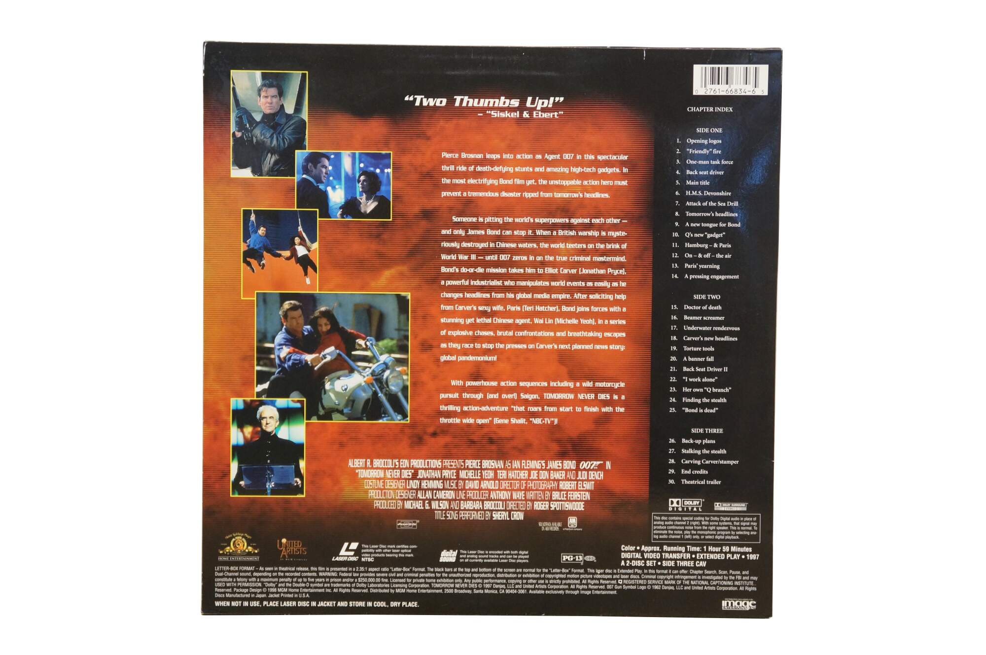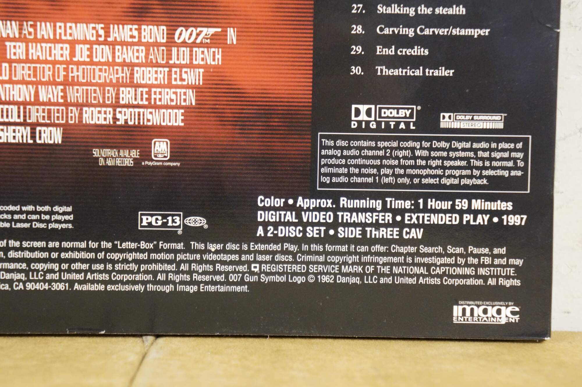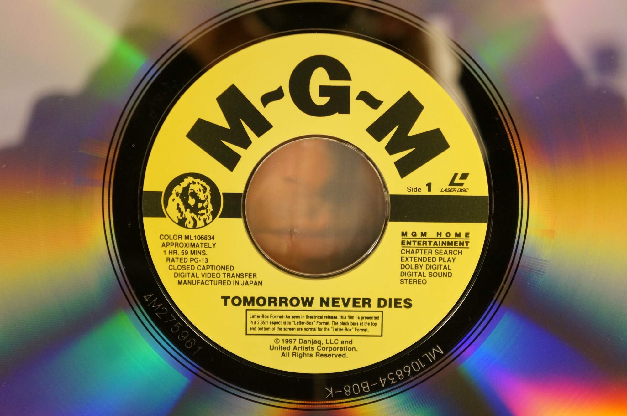 Vintage 1997 Deluxe Letterbox Edition LaserDisc for the James Bond 007 film Tomorrow Never Dies, starring Pierce Brosnan. MGM.