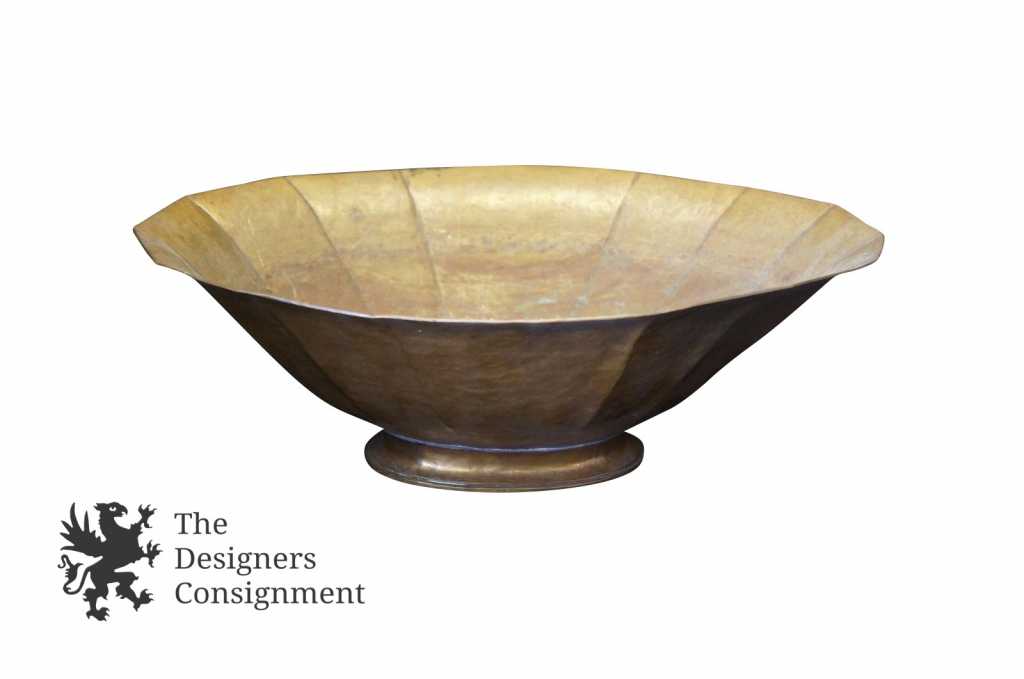 This is a gorgeous piece of fine Brass. It is a vintage hammered brass Jardiniere that has a pedestal base and it is scalloped around the edge.The bottom appears to be etched with "AN" on the bottom. This is an absolutely beautiful piece and it would make a wonderful addition to your home or collection.