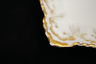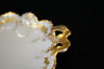 This is a beautiful piece from Moritz Zdekauer. It is a leaf shaped candy/nut dish with a gold handle and decorations. we are able to tell that it was made between 1884 - 1909 by the marking on it. This is an absolutely gorgeous piece and it would make a wonderful addition to your home or collection.