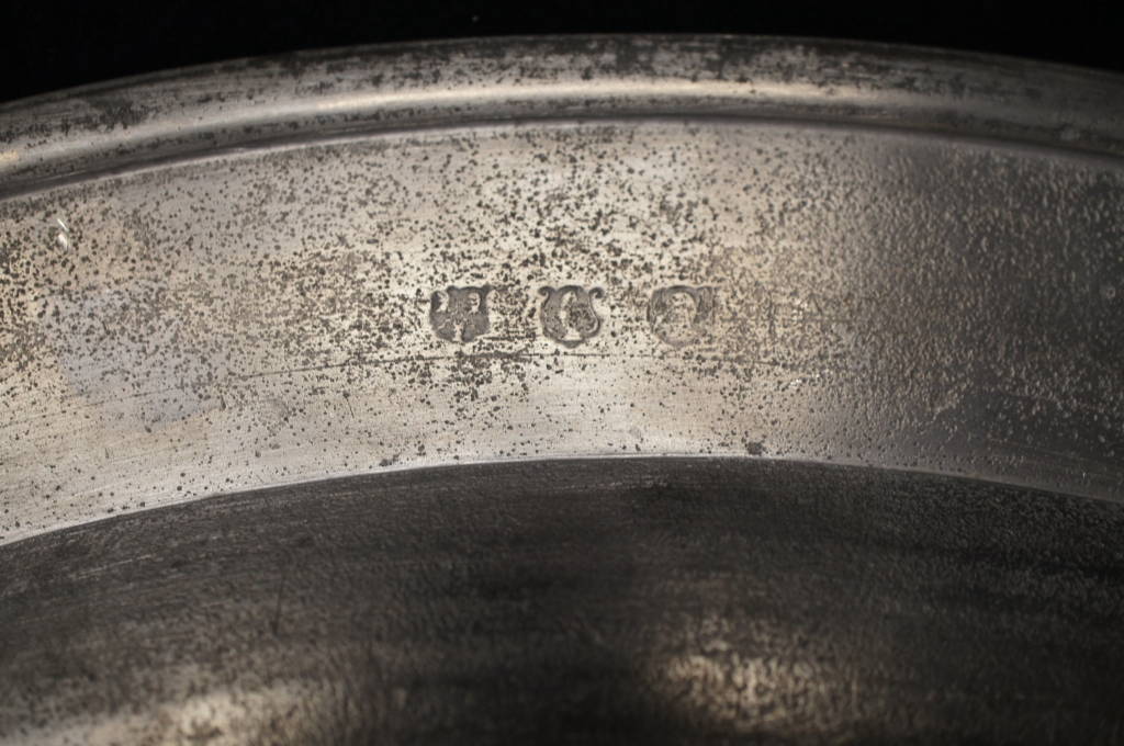 2 Large Rare Unique Round & Oval London Pewter Serving Decorative Display Tray