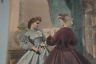 These are gorgeous piece of fine art. They are 2 petersen's magazine Les Modes Parisienne cut outs from September and October 1864 and they depict women dressed in period clothing in lovely gold frames and they were restored and colored later on. These are absolutely beautiful pieces and they would make wonderful additions to your home or collection.